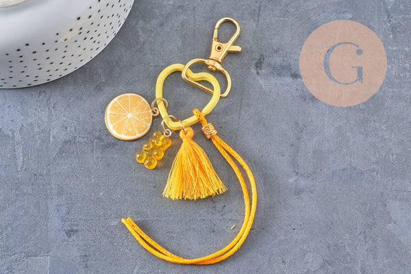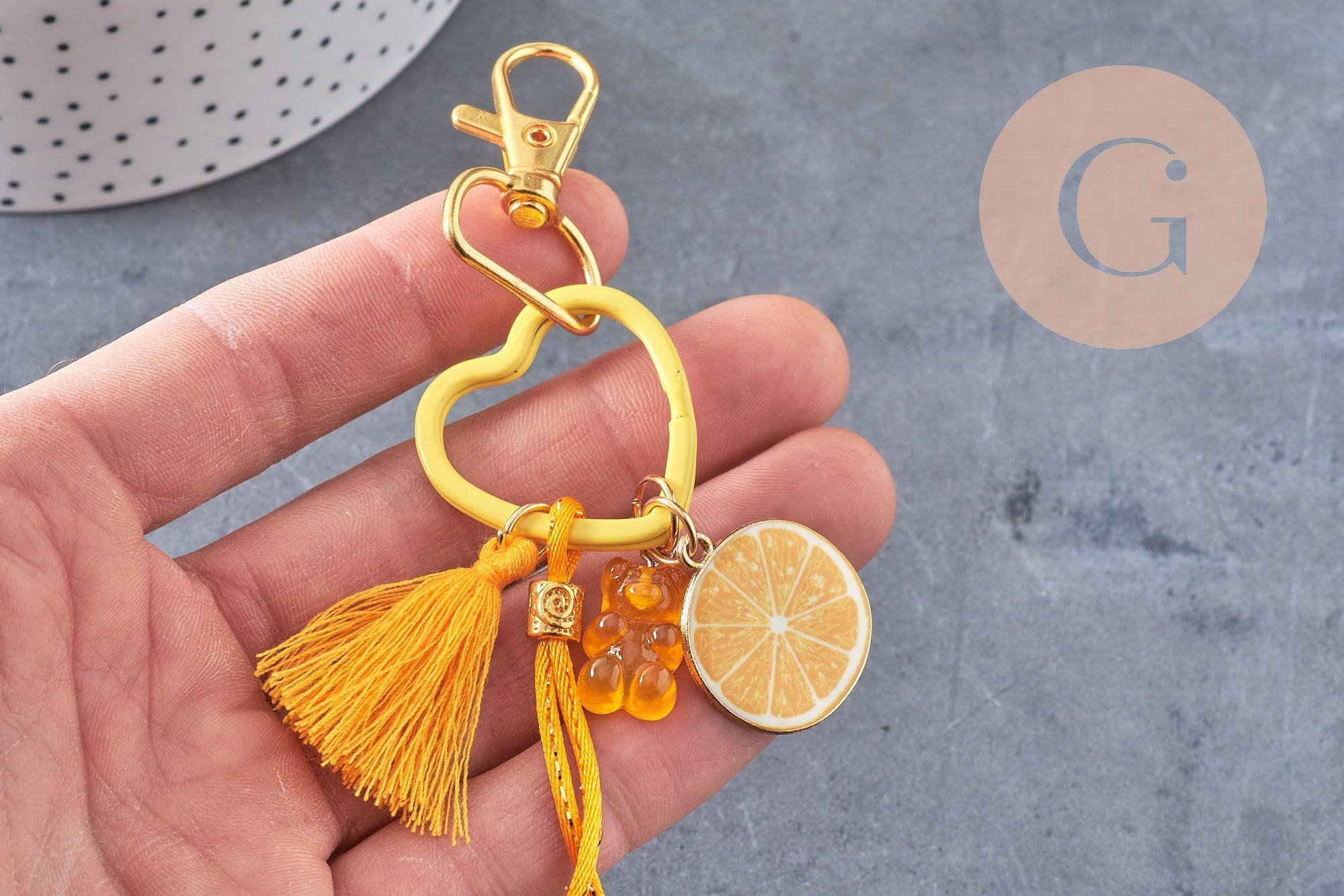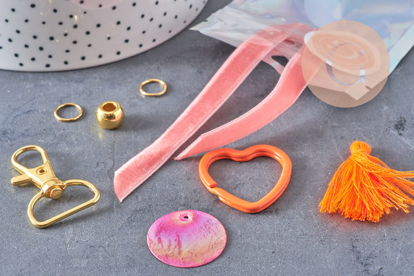 • Contents: 1 colored heart key ring, 1 golden carabiner, ribbons, cords, spacer beads, charms and pendants, stainless steel rings