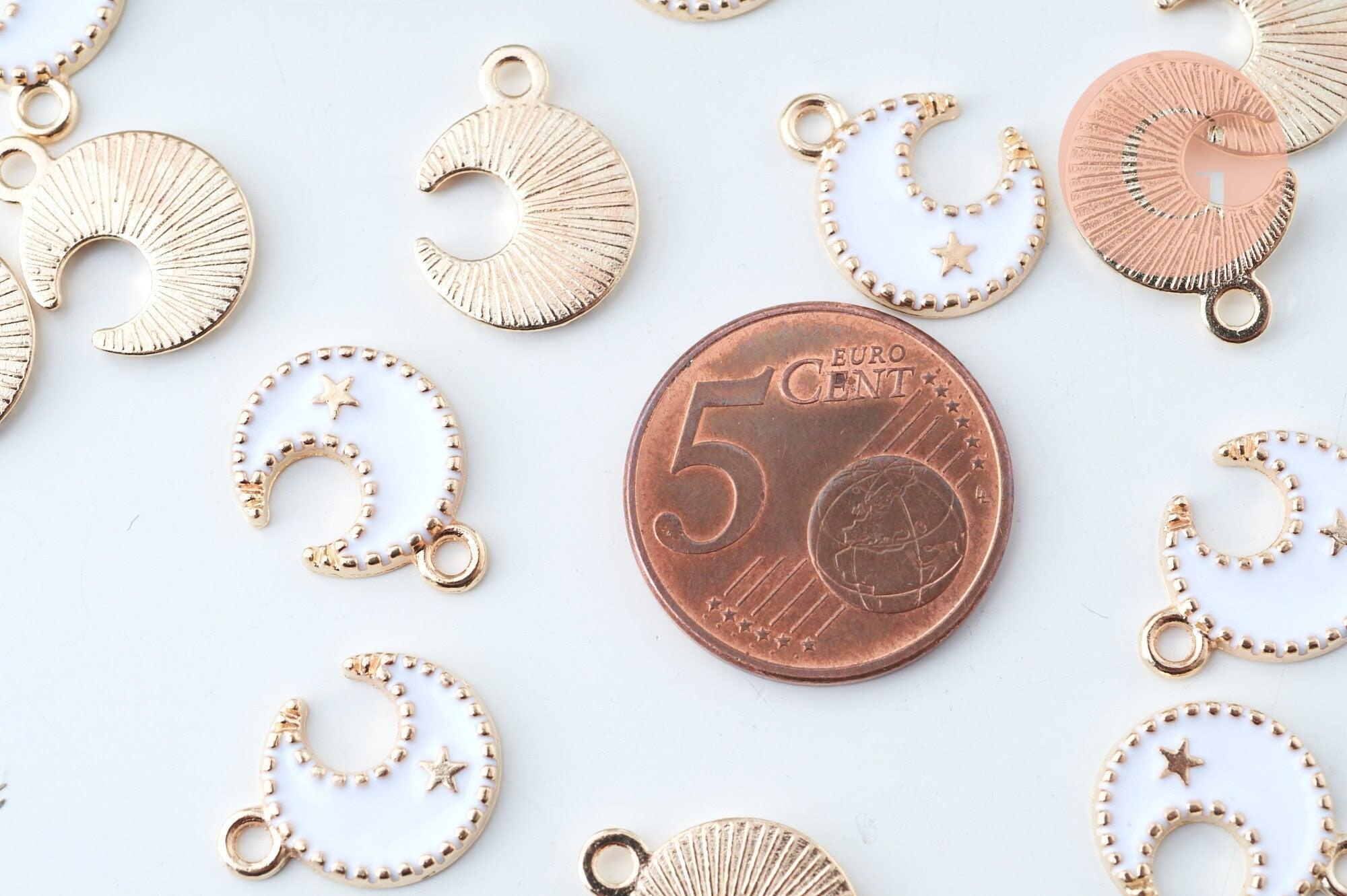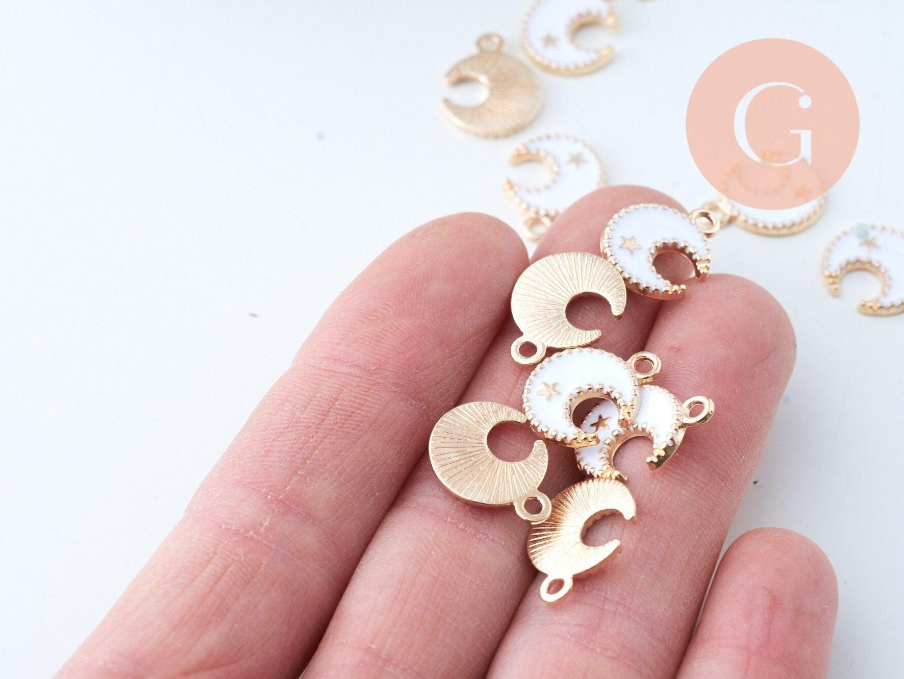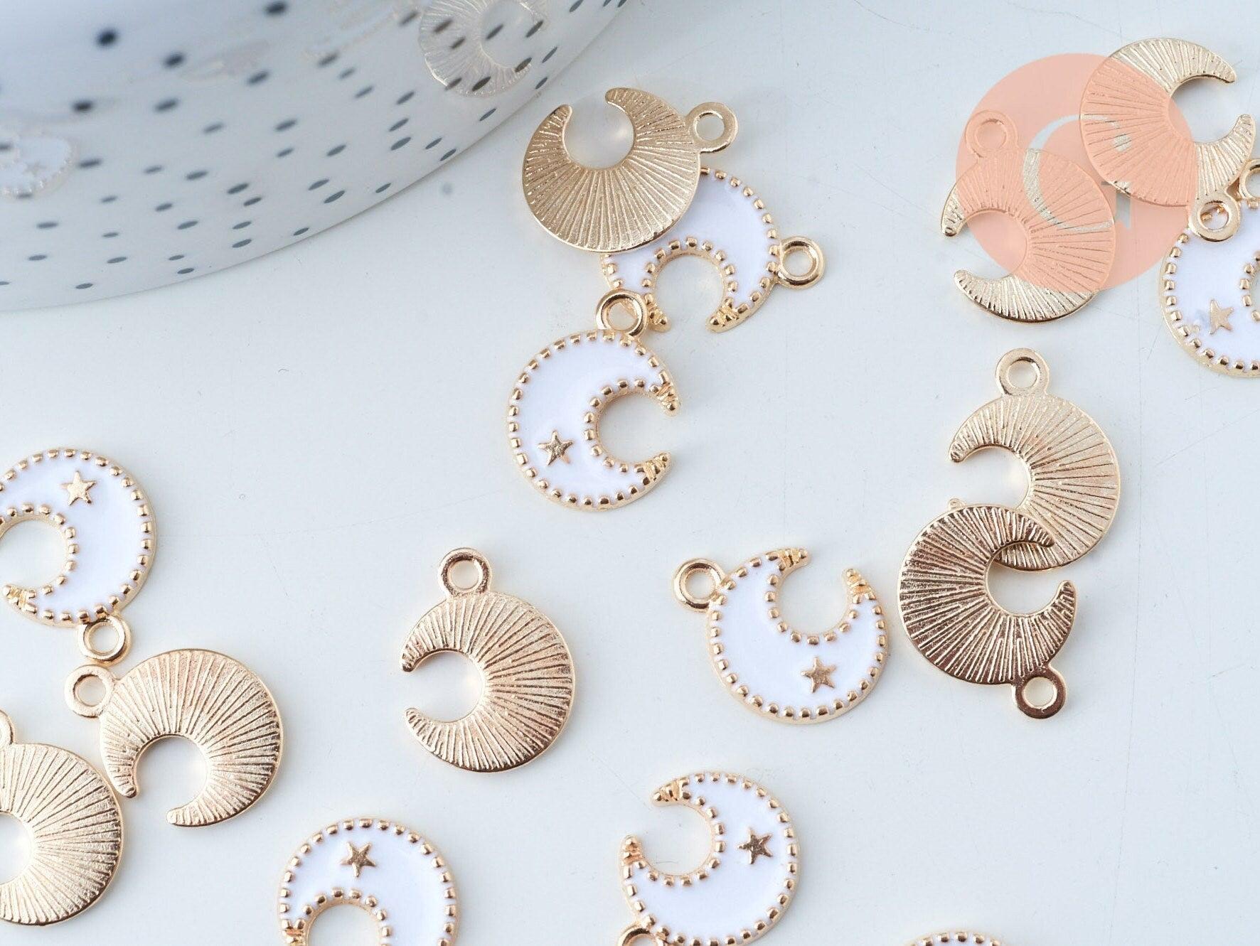 A moon pendant in gold zamac and white resin for your DIY jewelry creations. This pretty pendant is decorated with a mini star.