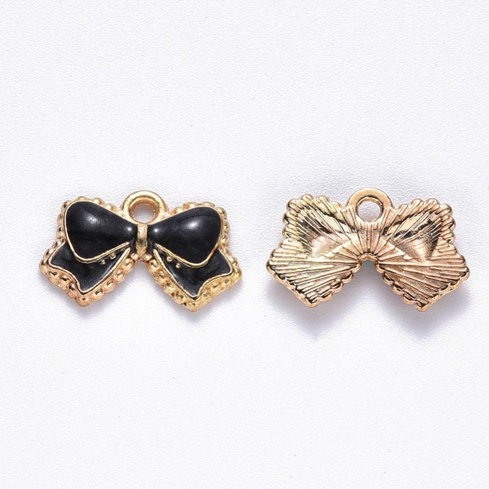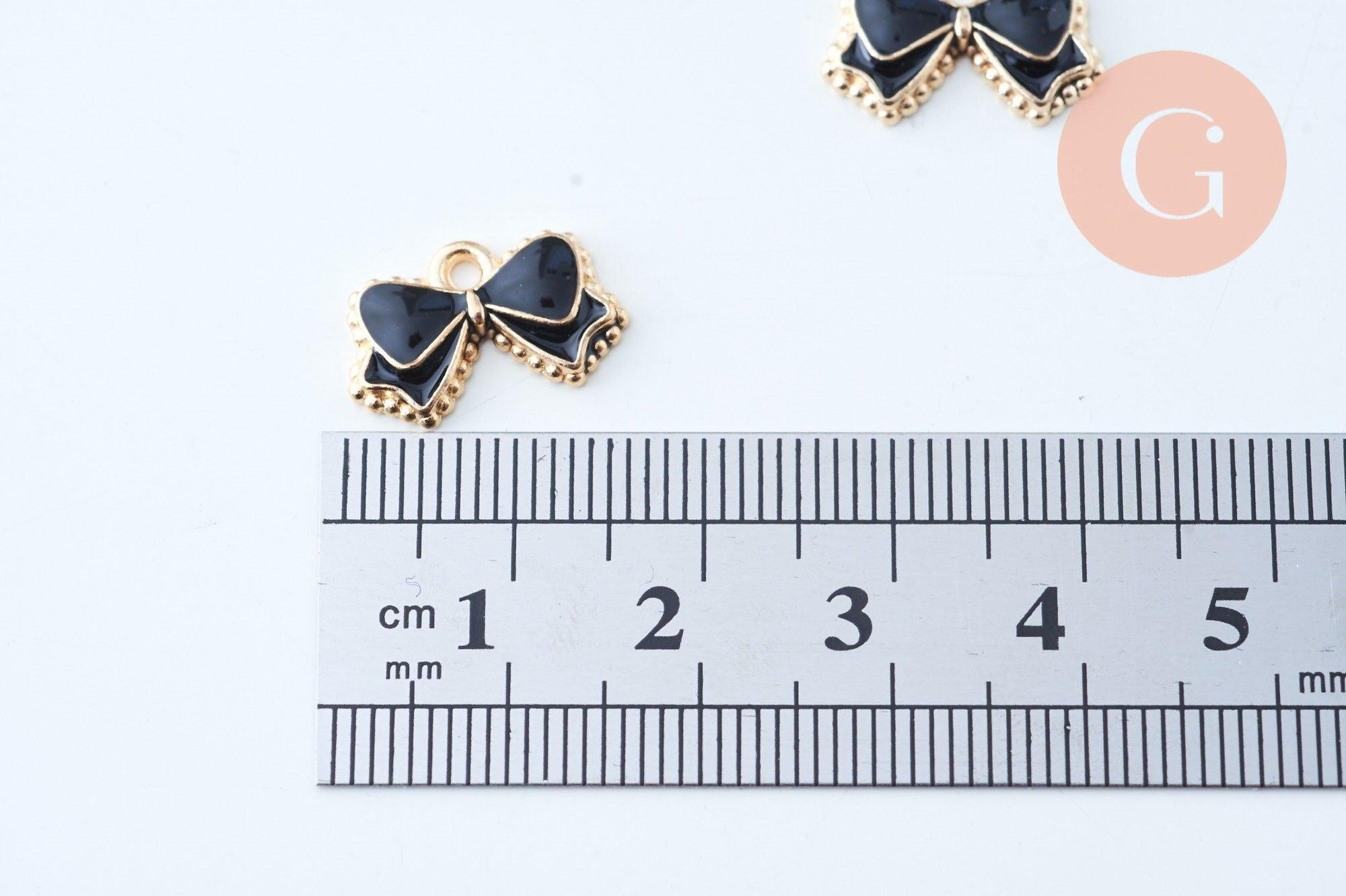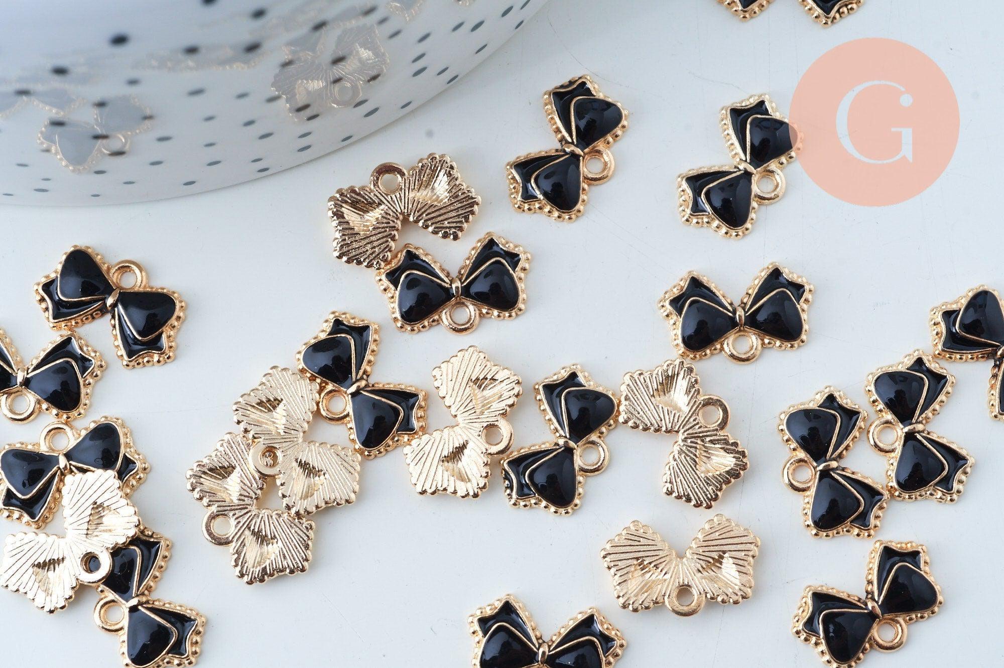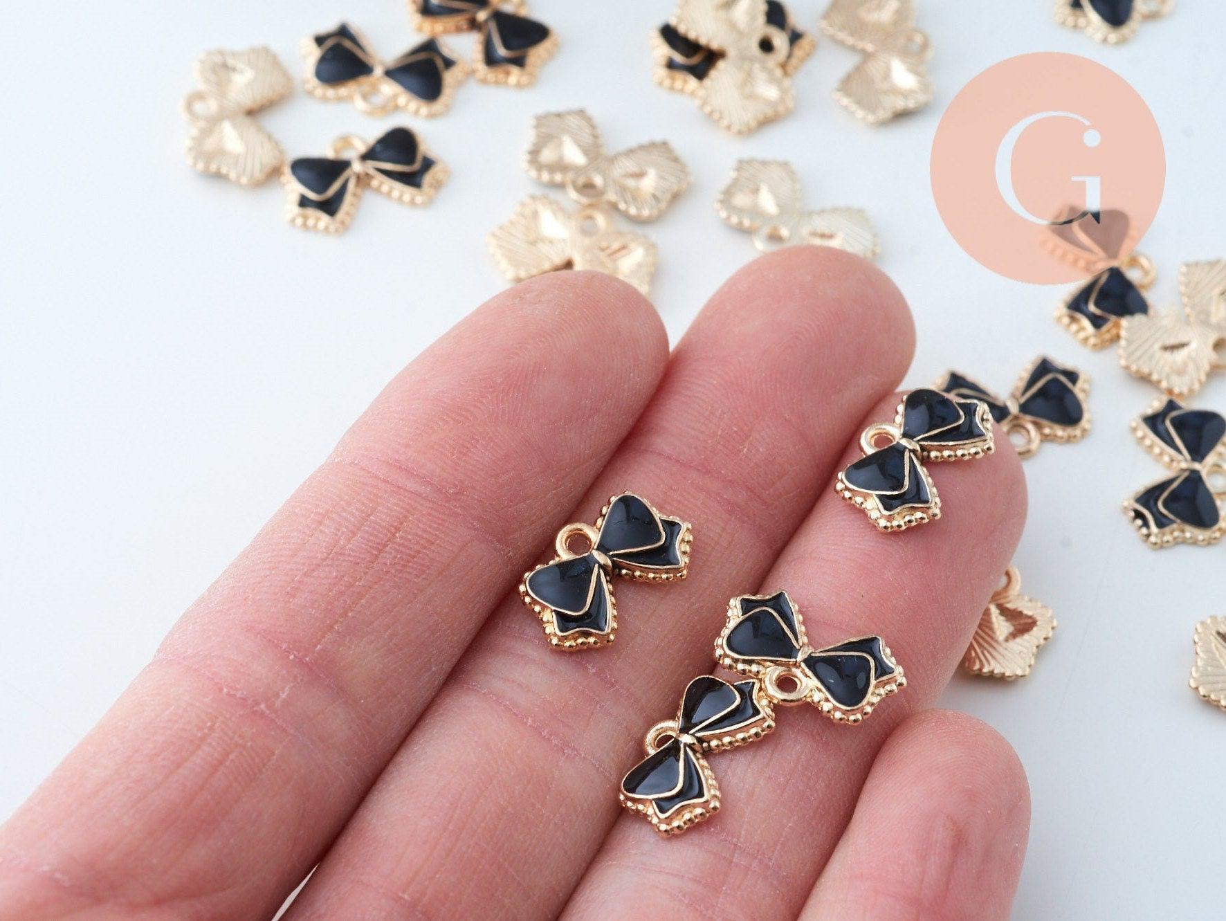 Pendentif noeud doré émail noir 10mm,pendentif doré pour création de bijoux, x5 (G6102)