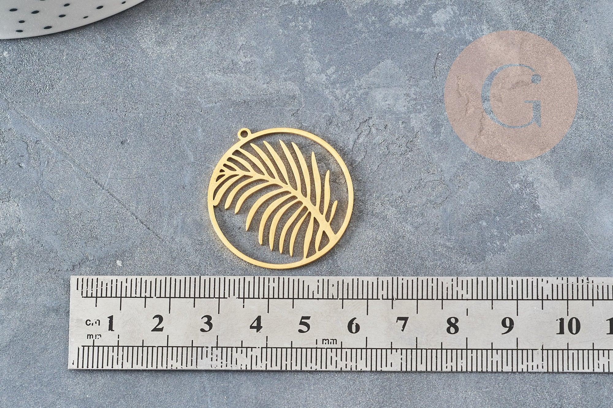 A gold-plated stainless steel pendant in the shape of a palm leaf , a perfect supply for making your DIY costume jewelry.