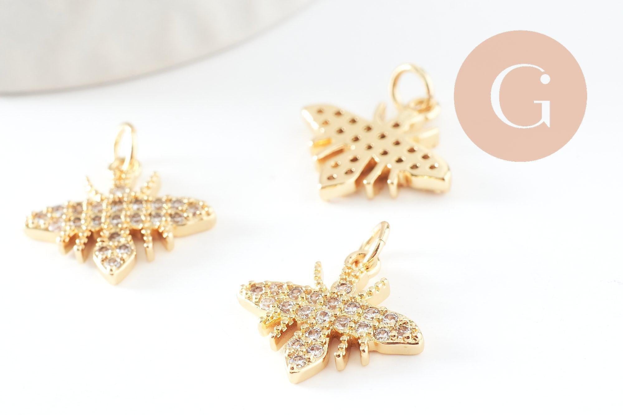 To make magnificent necklaces, earrings and bracelets, adopt these 18K gold-plated brass bees decorated with white zircons