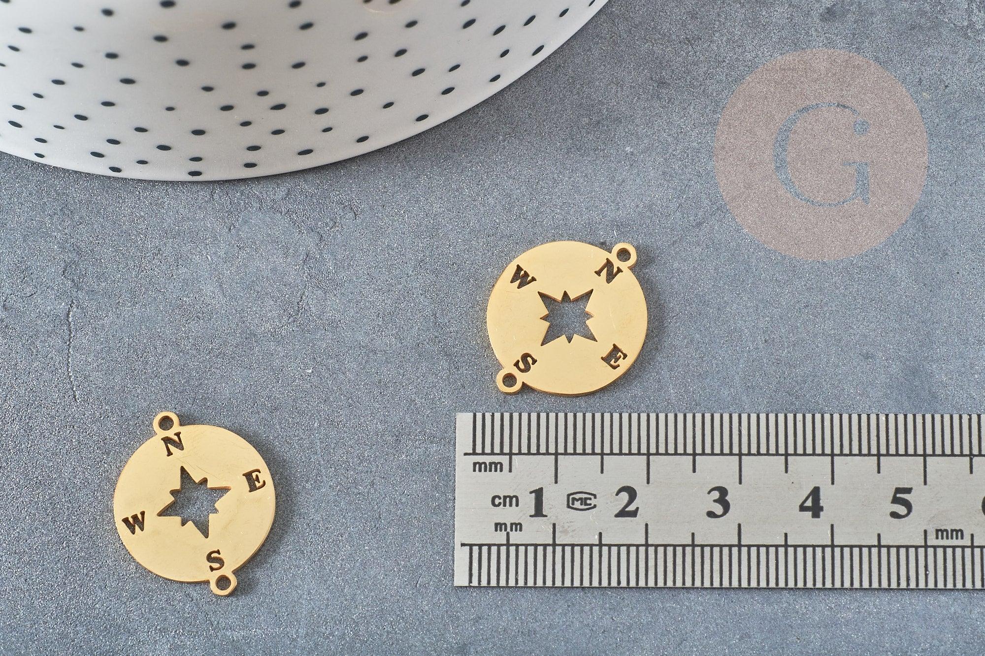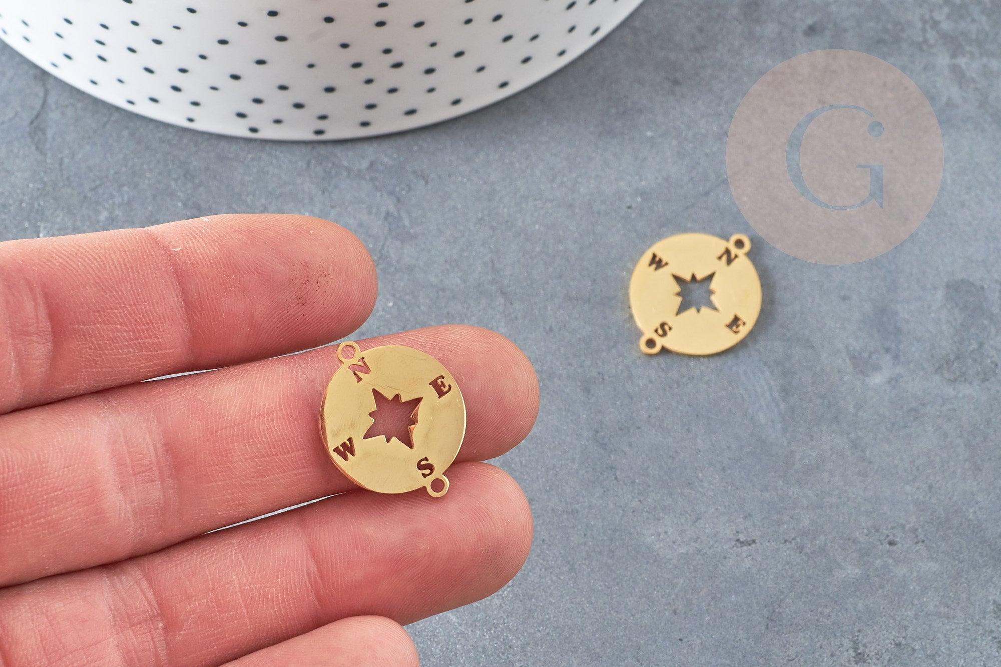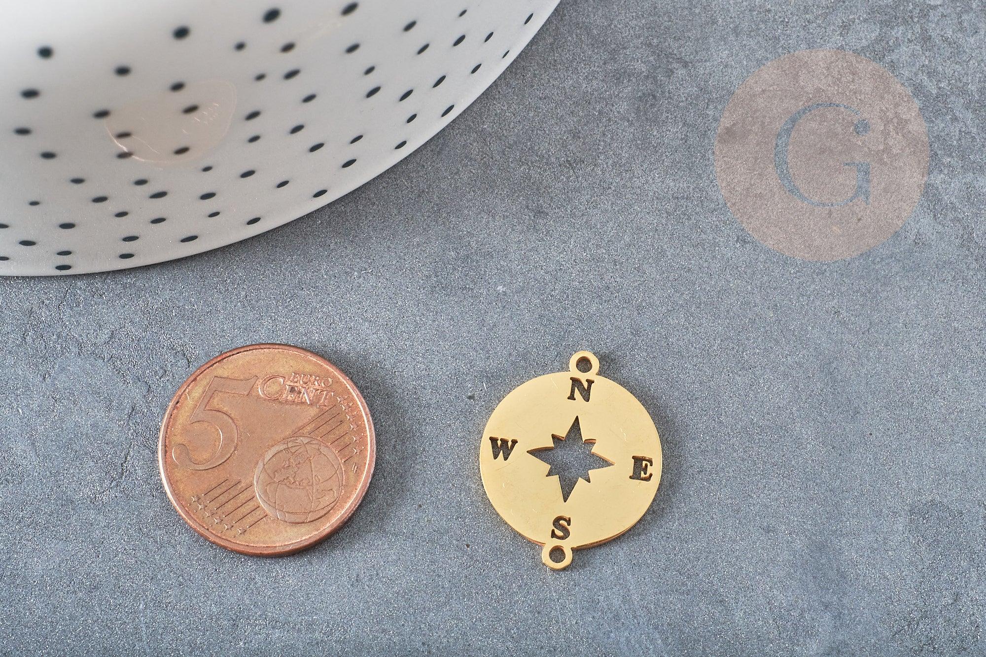 Gold-plated steel pendant compass rose for sale, gold-plated charm, gold-plated stainless steel, nickel-free pendant, jewelry creation, 23mm, unit