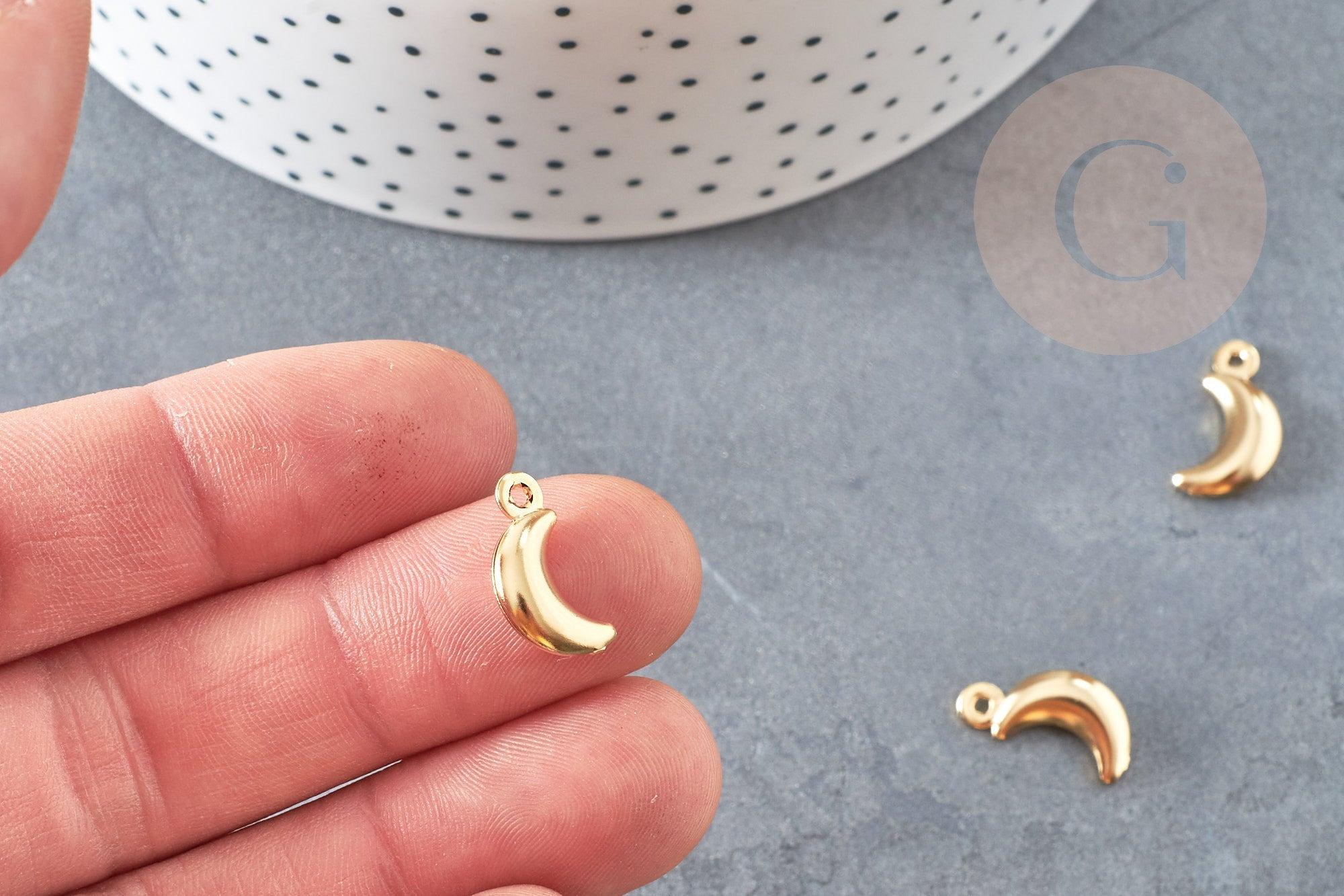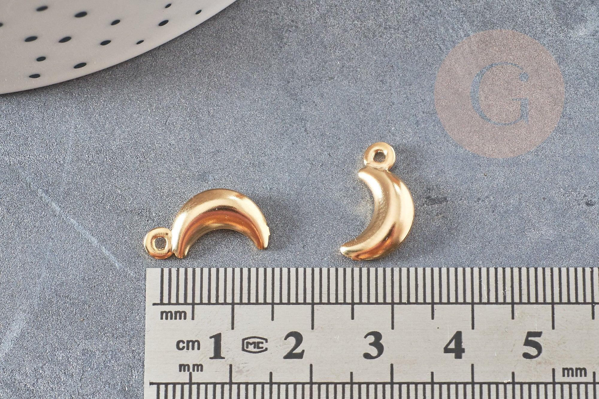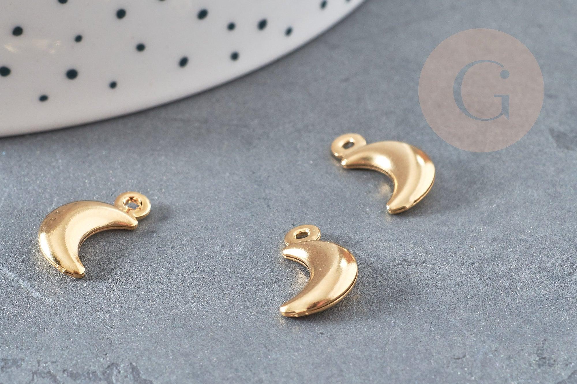 A set of 5 gold-plated steel moon pendants in the shape of a small domed crescent moon.
