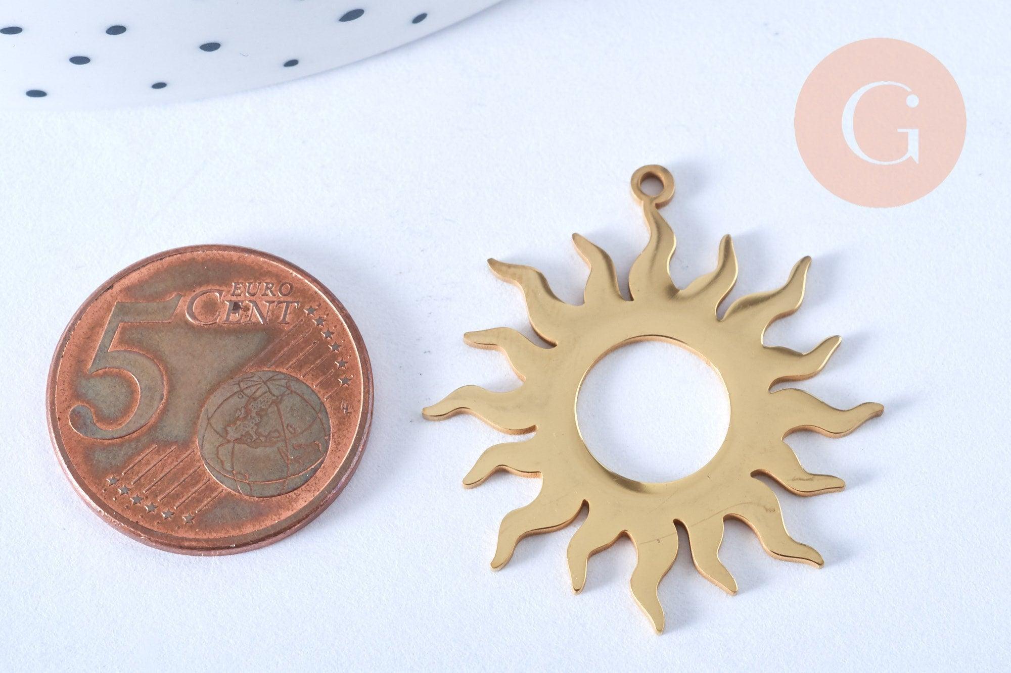 A sun pendant in gold-plated stainless steel . An adorable gold-plated pendant to use in all your DIY jewelry creations.