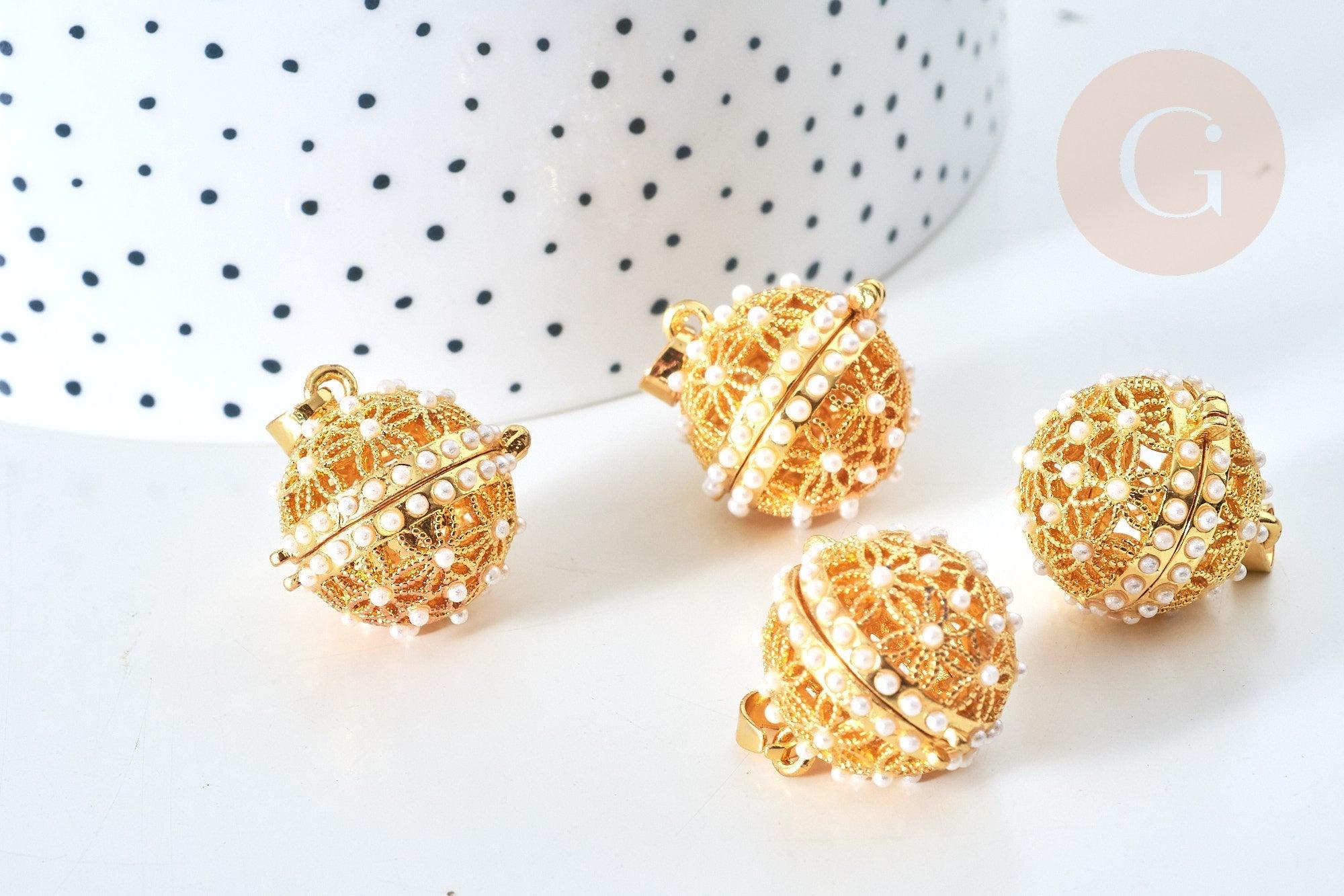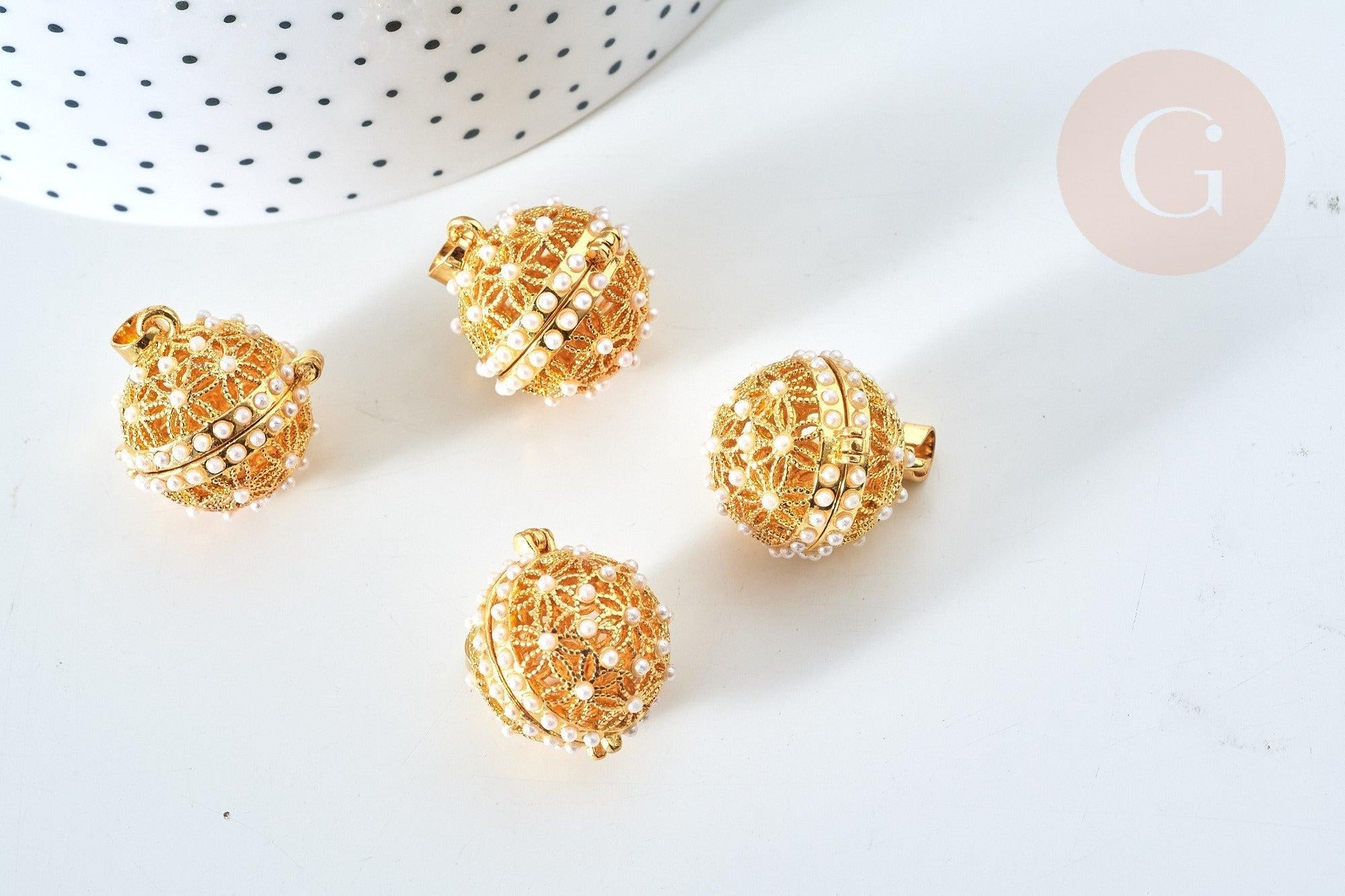 To create a bola jewel , gingerlily offers you this gold-colored cage pendant with a decoration of small pearly white pearls