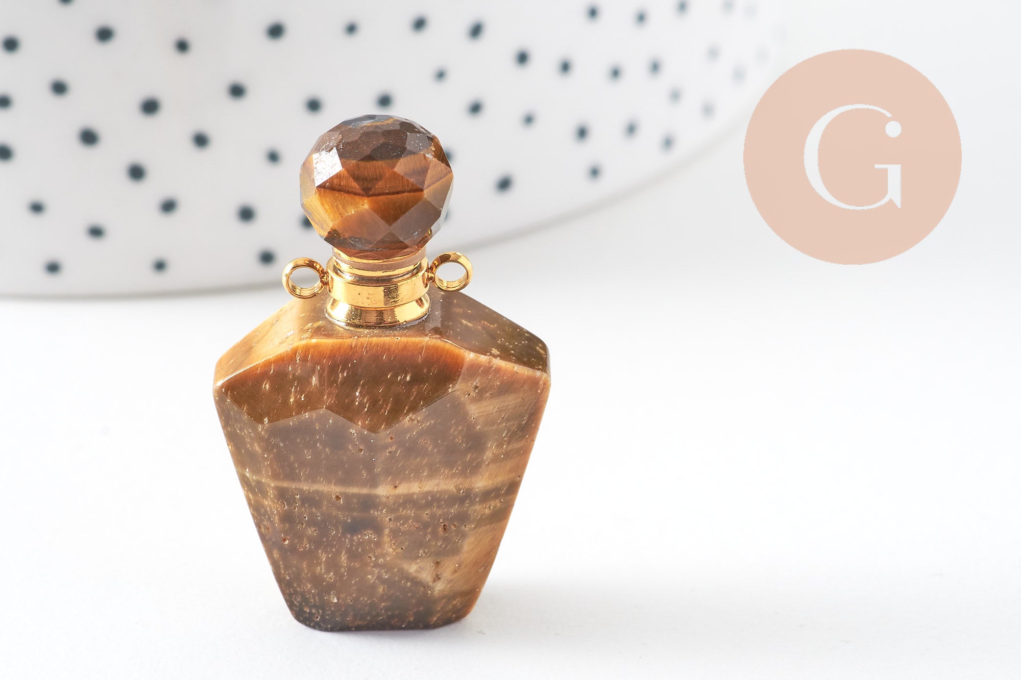 Natural Tiger Eye Perfume Bottle Pendant, Natural Stone Pendant, Necklace Pendant, Natural Tiger Eye Pendant, 37.5mm, Unit