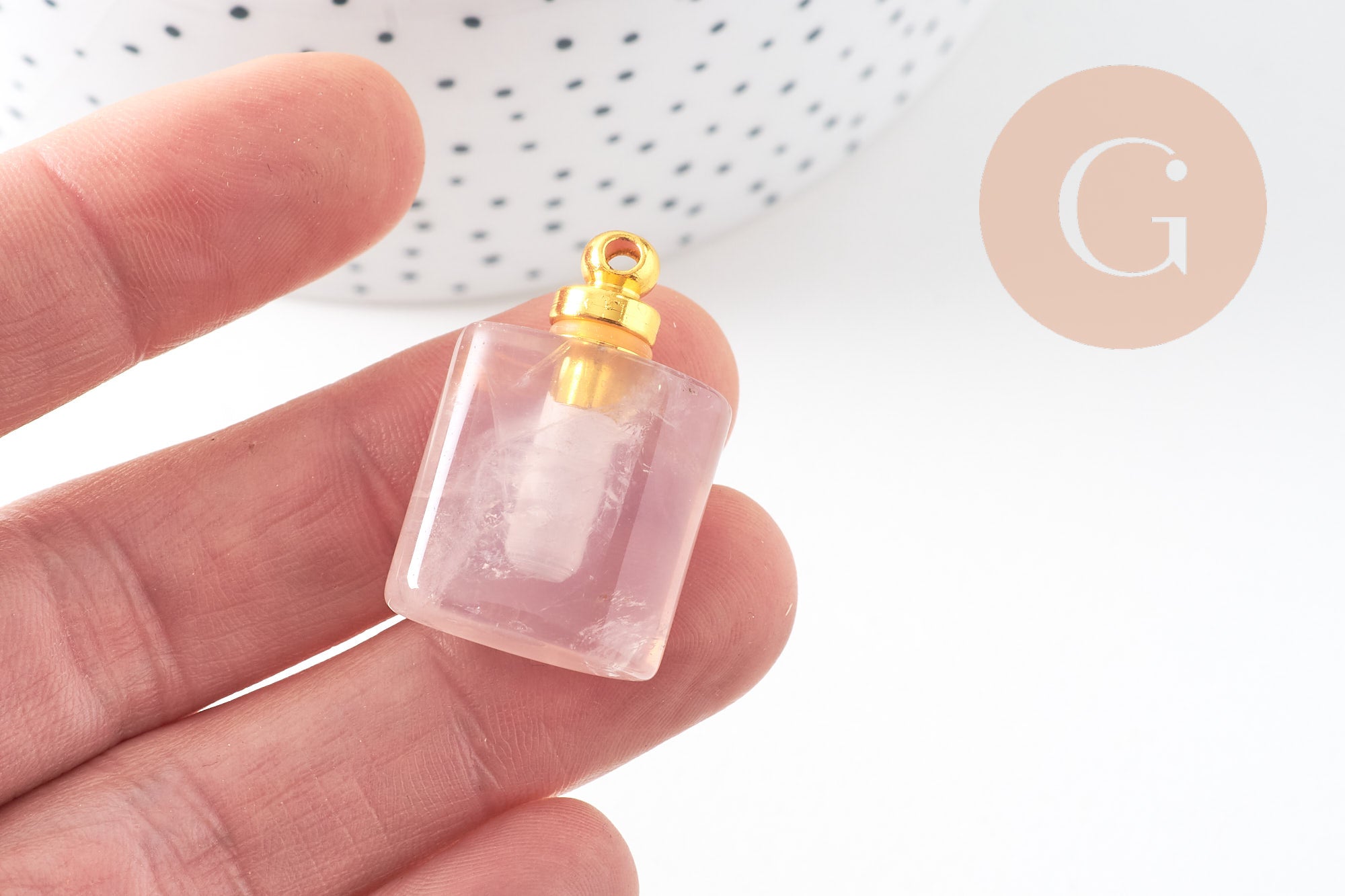 Rose quartz perfume bottle pendant, natural stone pendant, necklace pendant, natural quartz pendant, 33mm