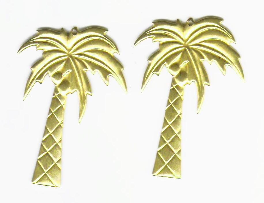 A pendant of a large palm tree in golden brass, ideal for creating a necklace or earrings on the theme of exoticism, the desert, holidays height: 4.2cm (with ring) Please note: as brass is raw, it is subject to oxidation...
