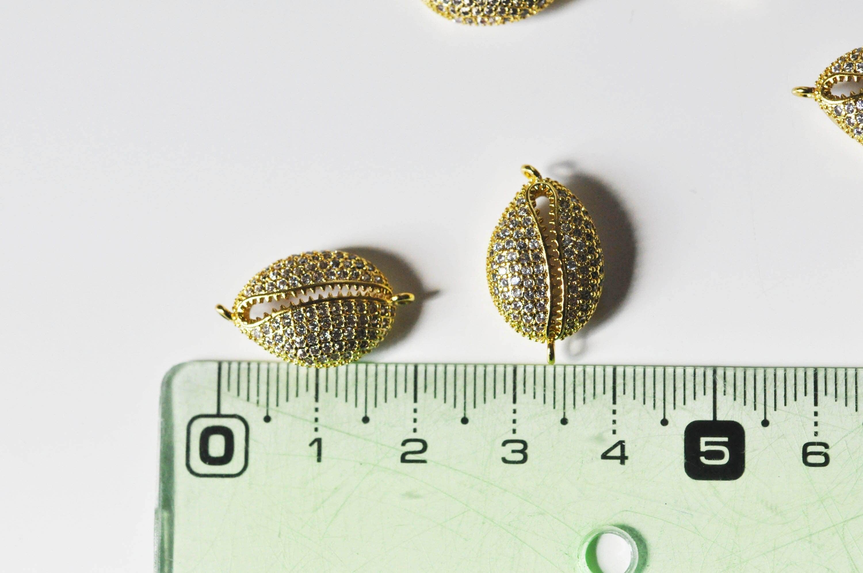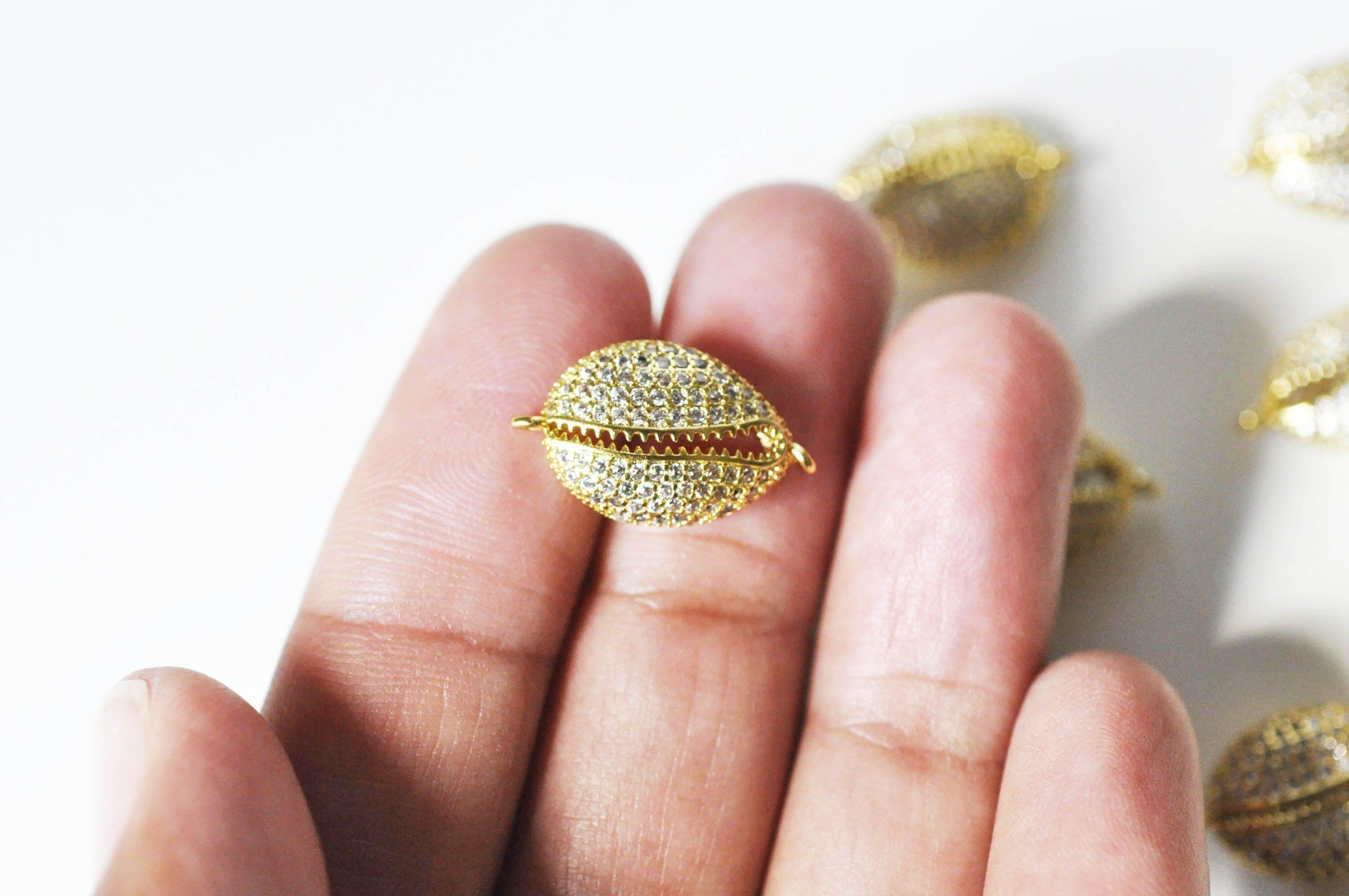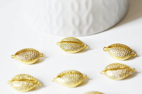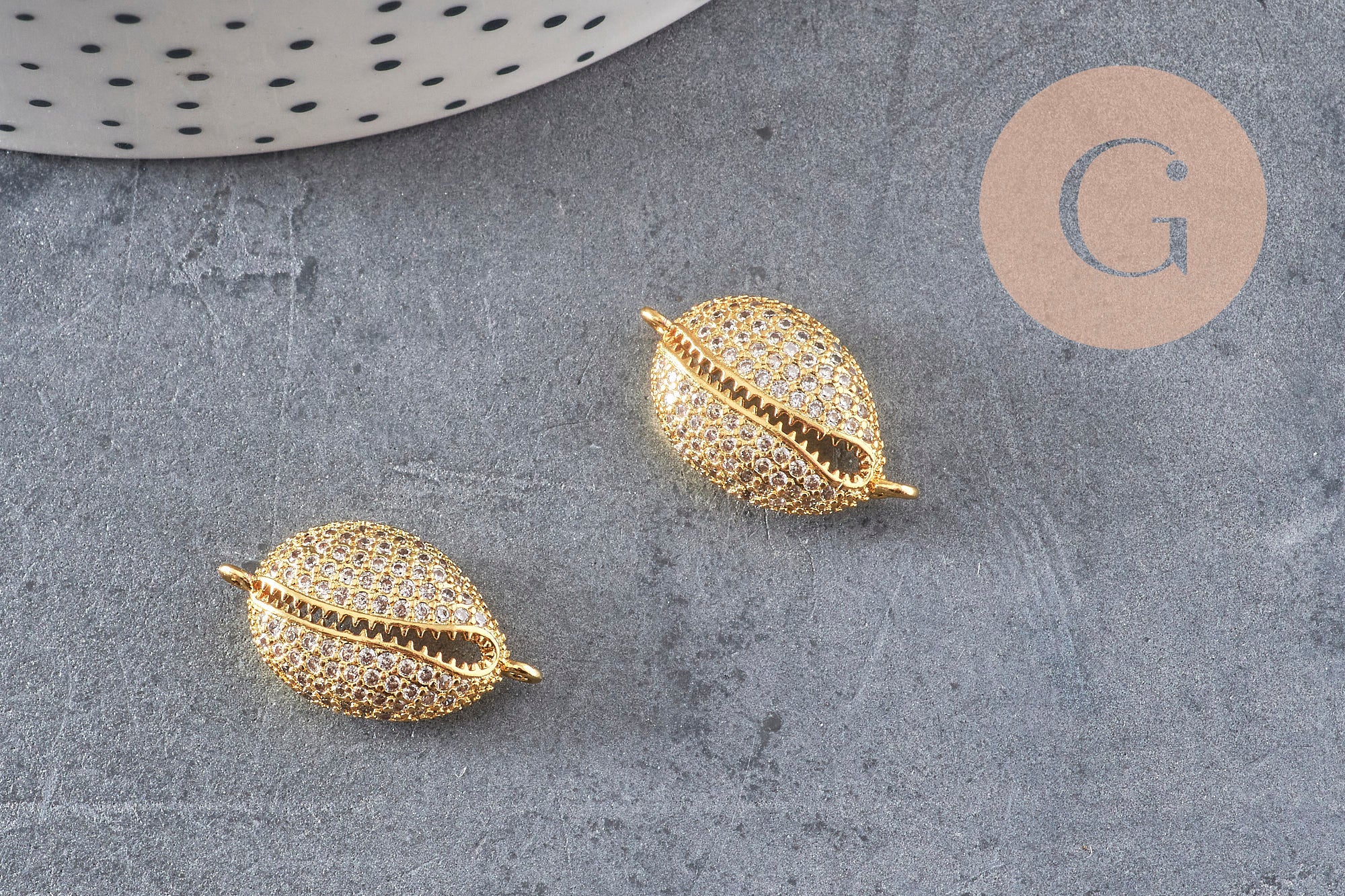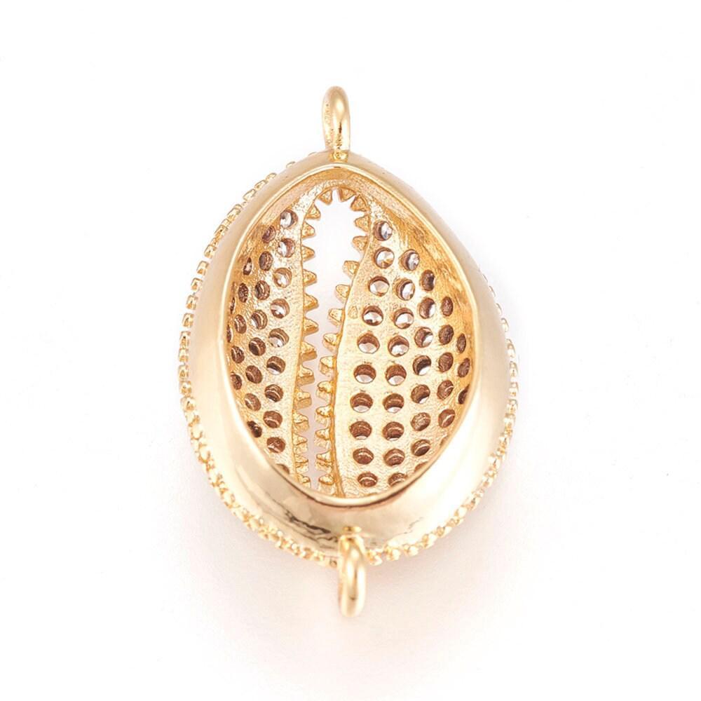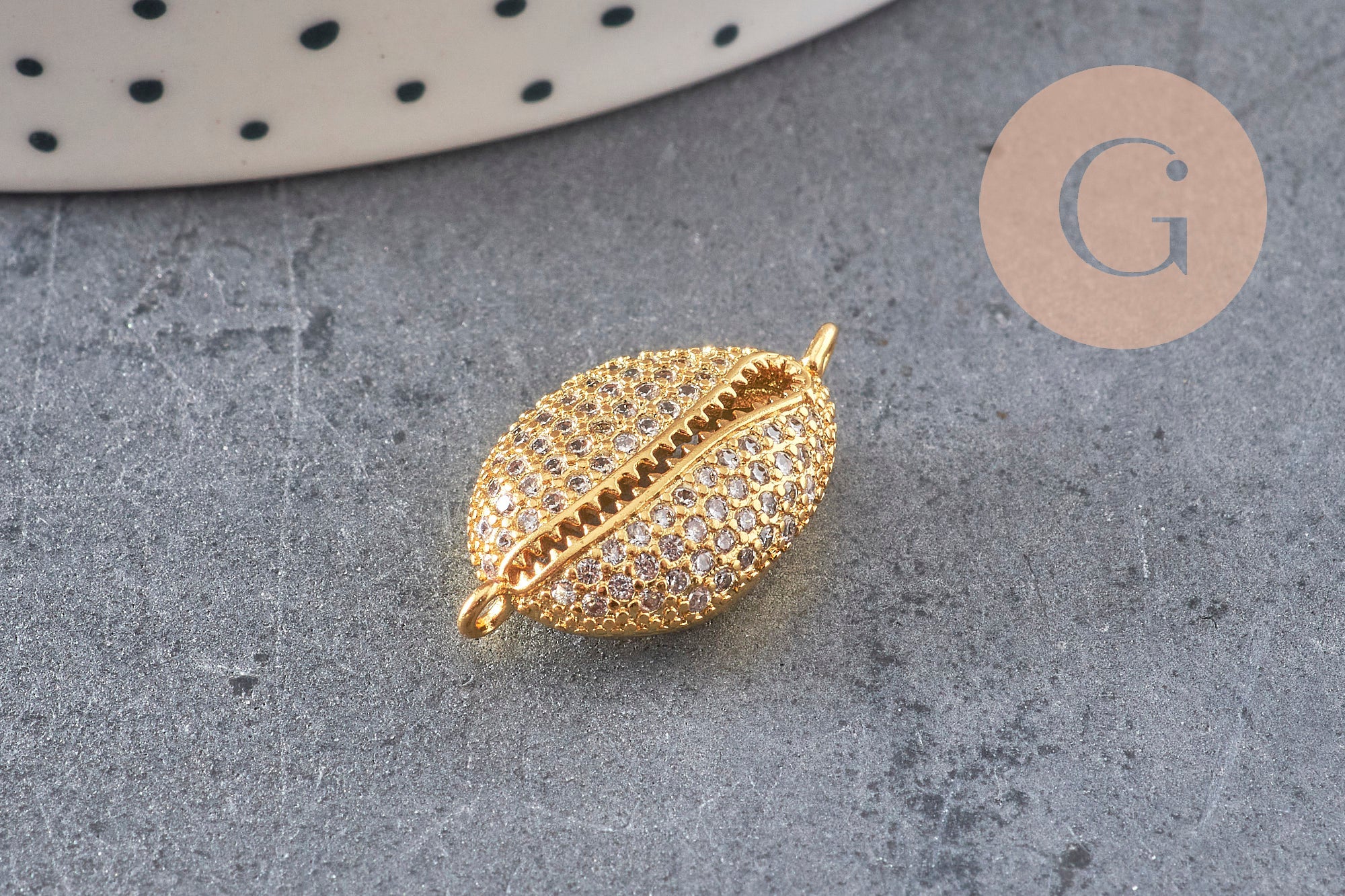 18K gold lairon cowrie pendant with white zircon, shell pendant, nickel-free jewelry creation, gold shell pendant, 21mm, each
