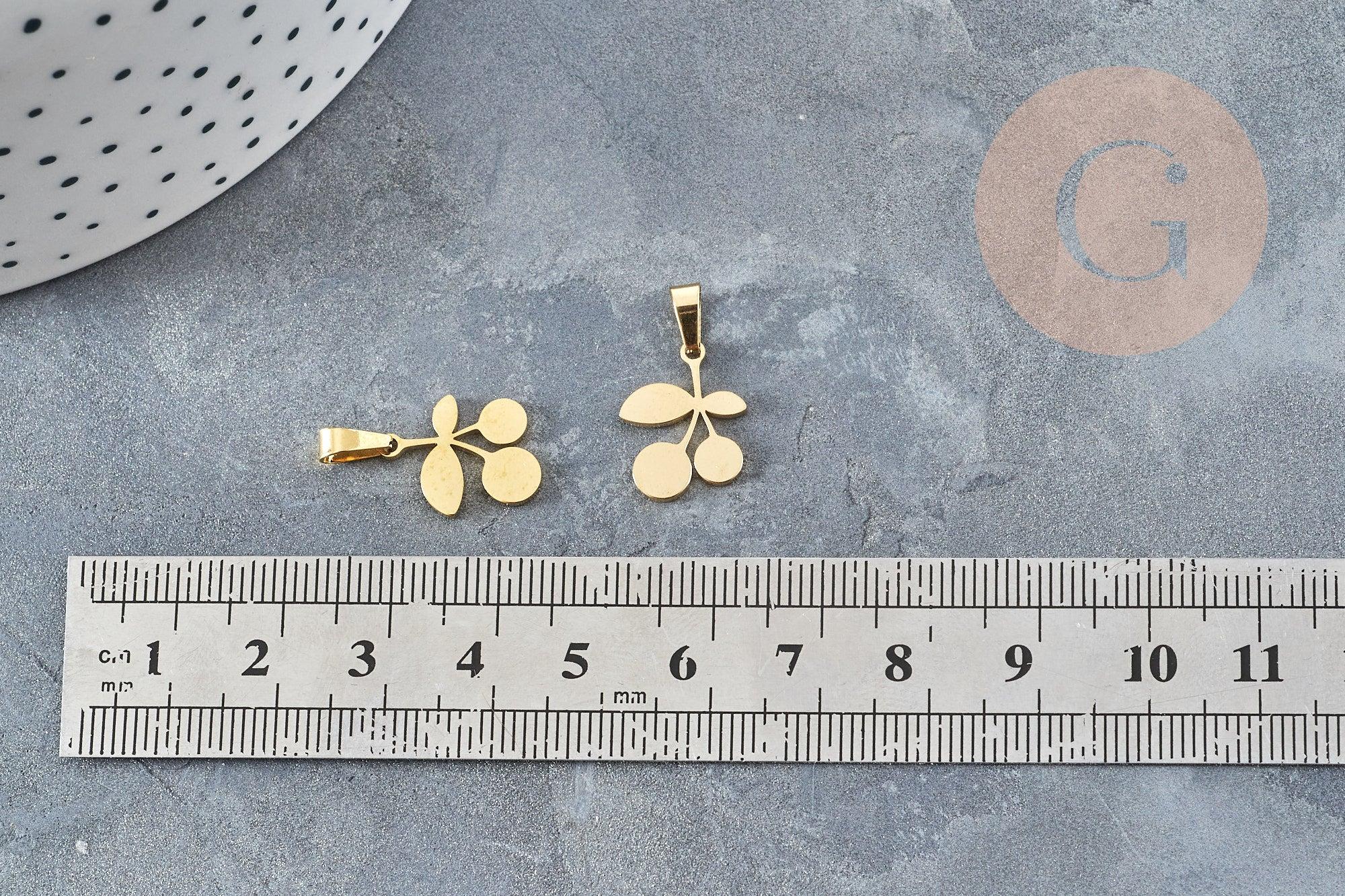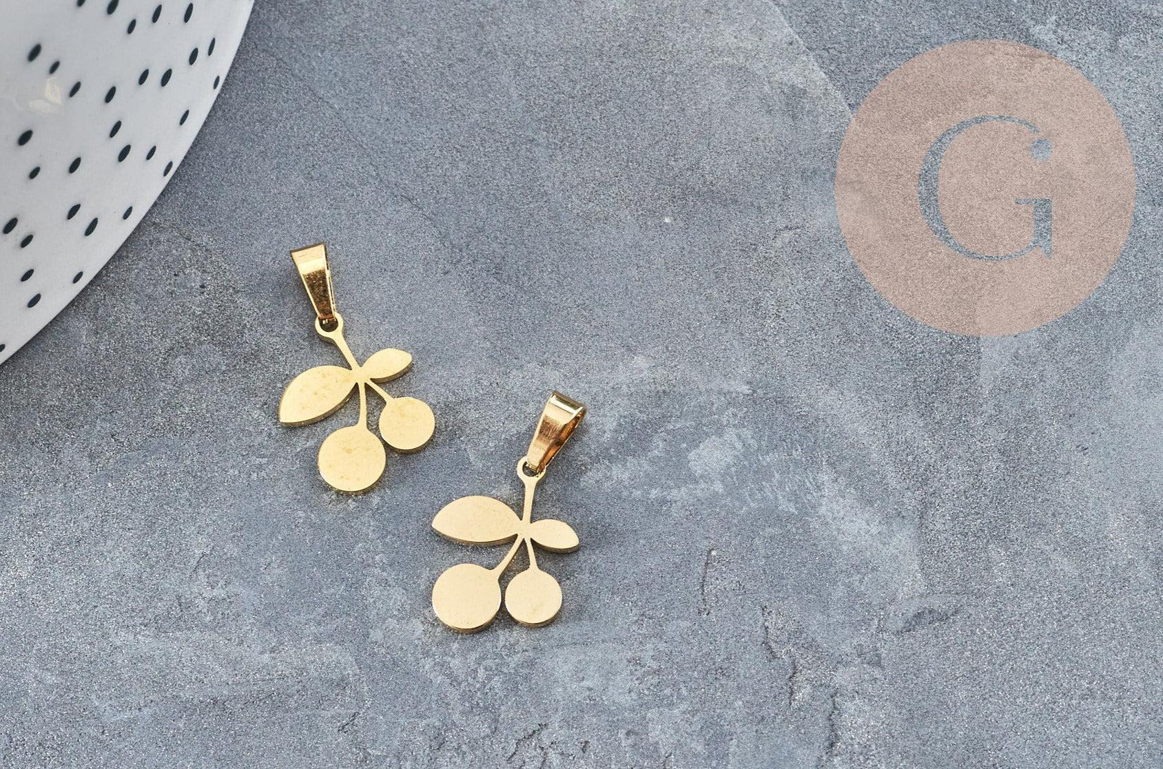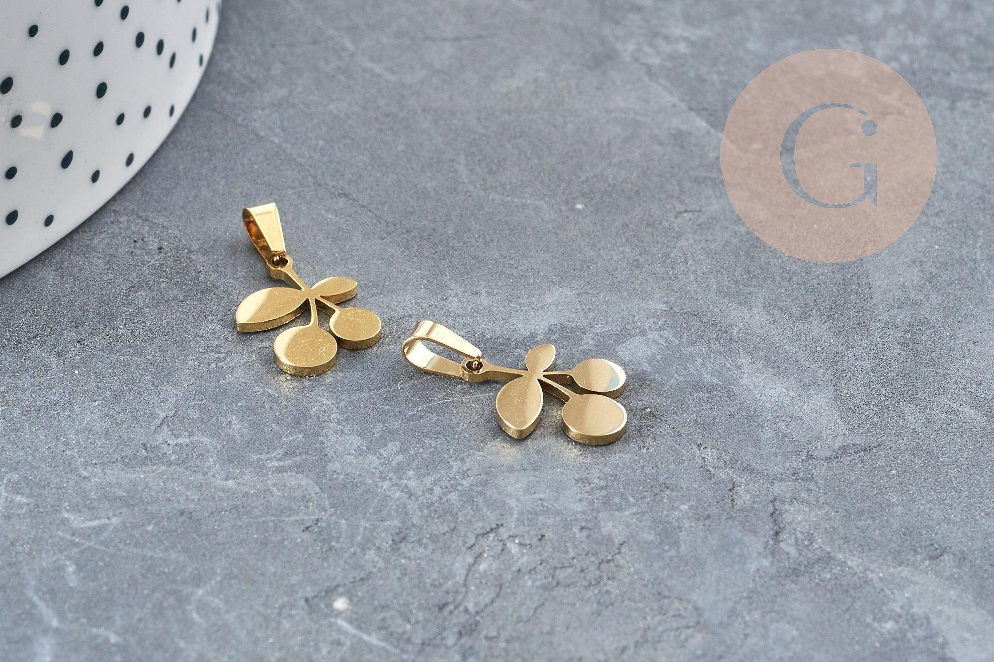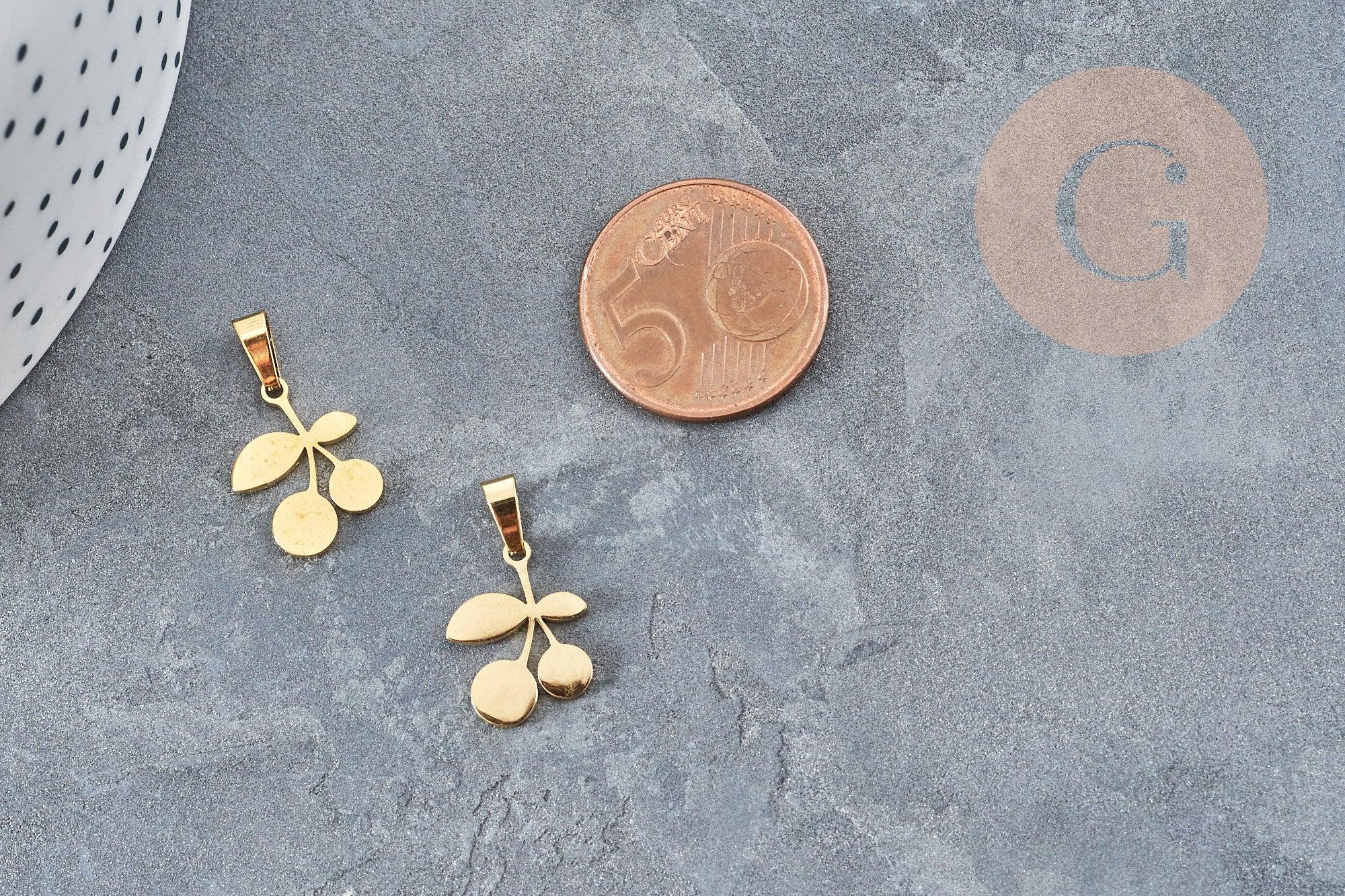 Pendentif cerise acier 304 inoxydable doré 15.5mm, x1 (G3634)