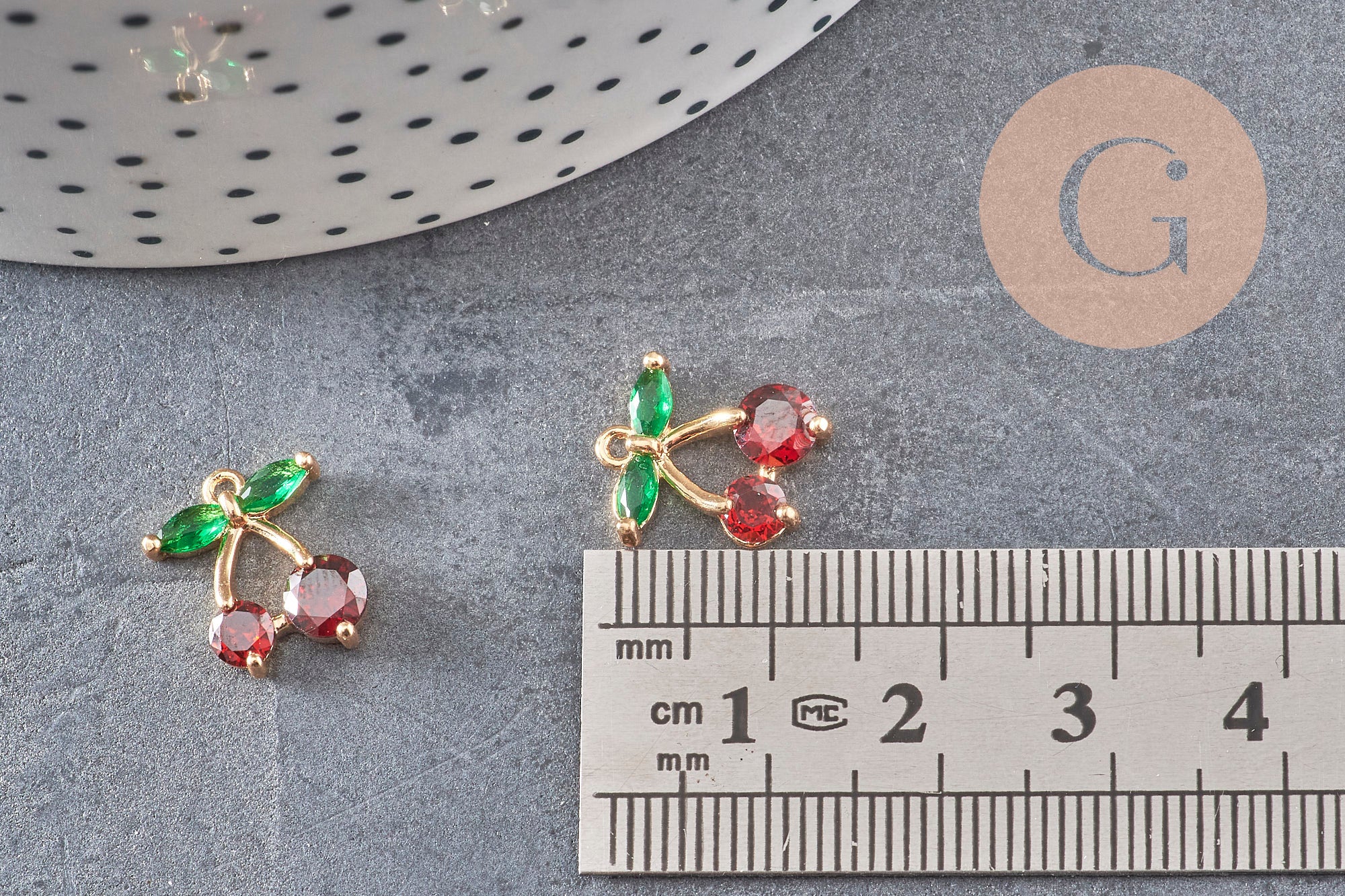a cherry pendant in 18k gold-plated brass decorated with red and green zircon crystals. A pendant love!
