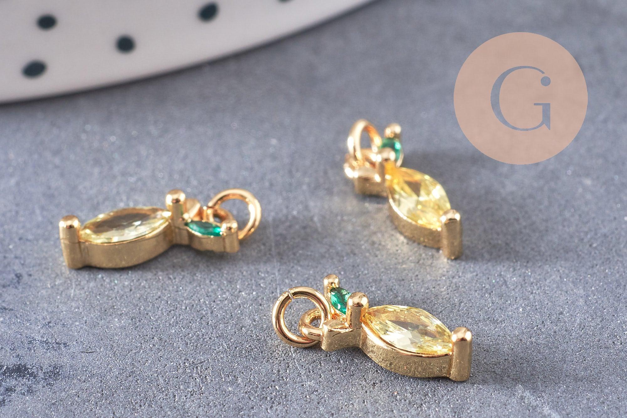 Bring a fruity and vibrant note to your creations with this lemon pendant in 18K gold-plated brass , embellished with sparkling zircons .