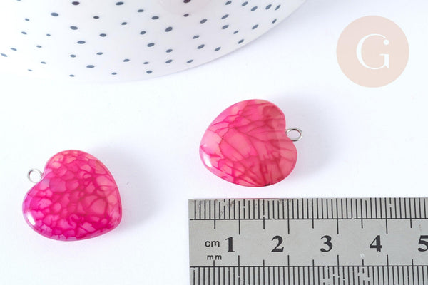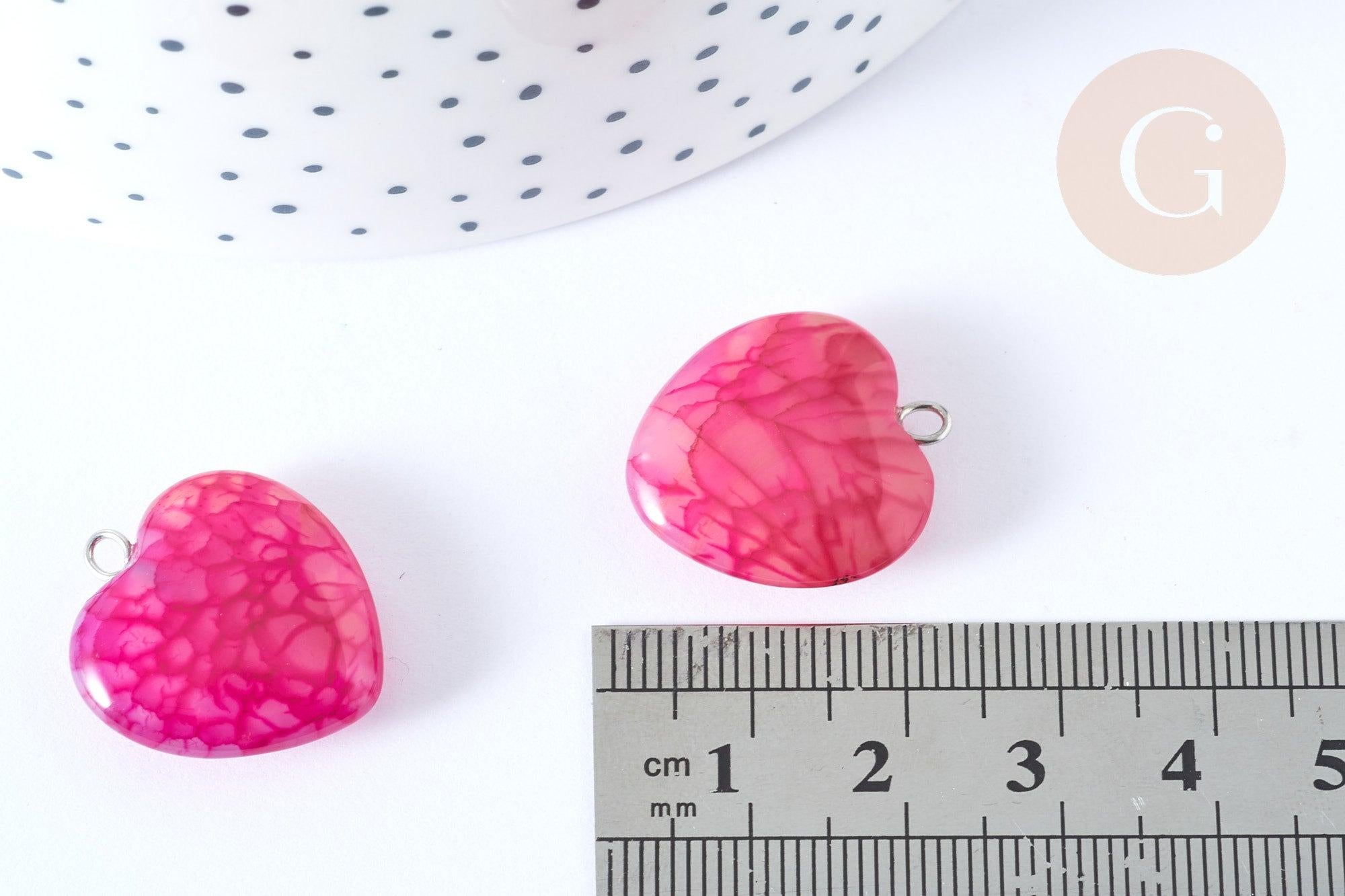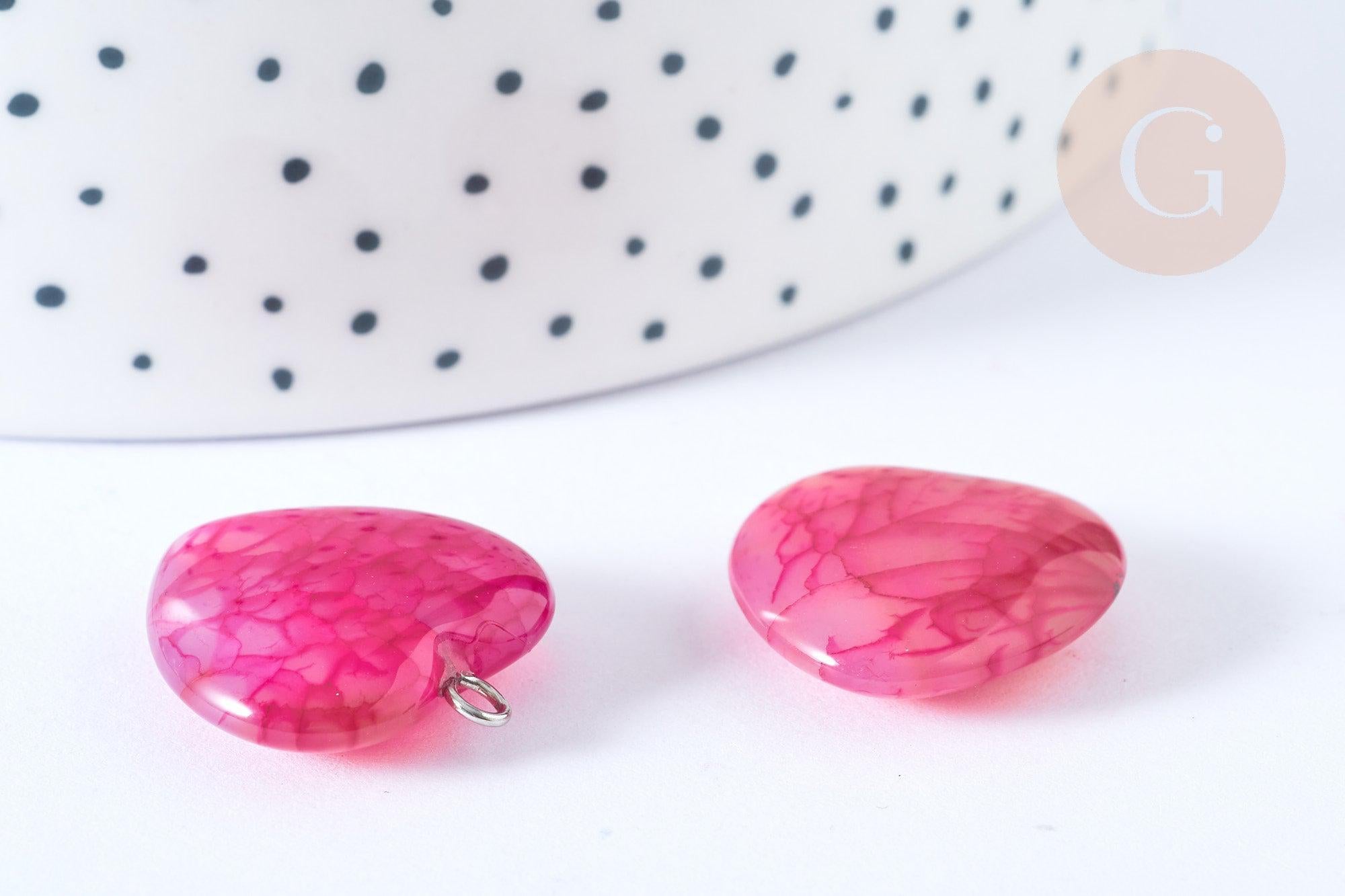 Pendentif cœur agate craquelée brésilienne violet-rose fer argenté 22mm, x1 G7926