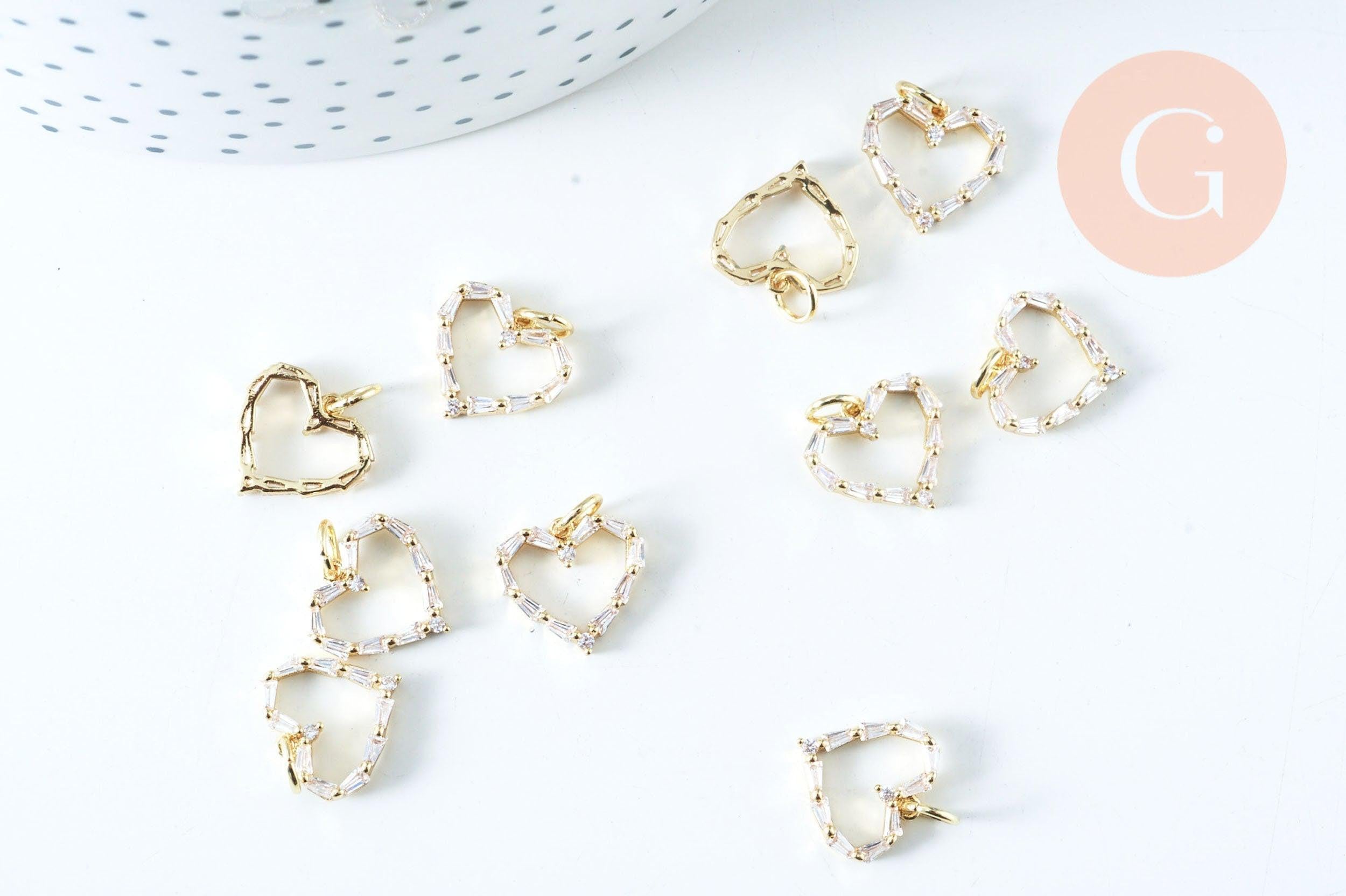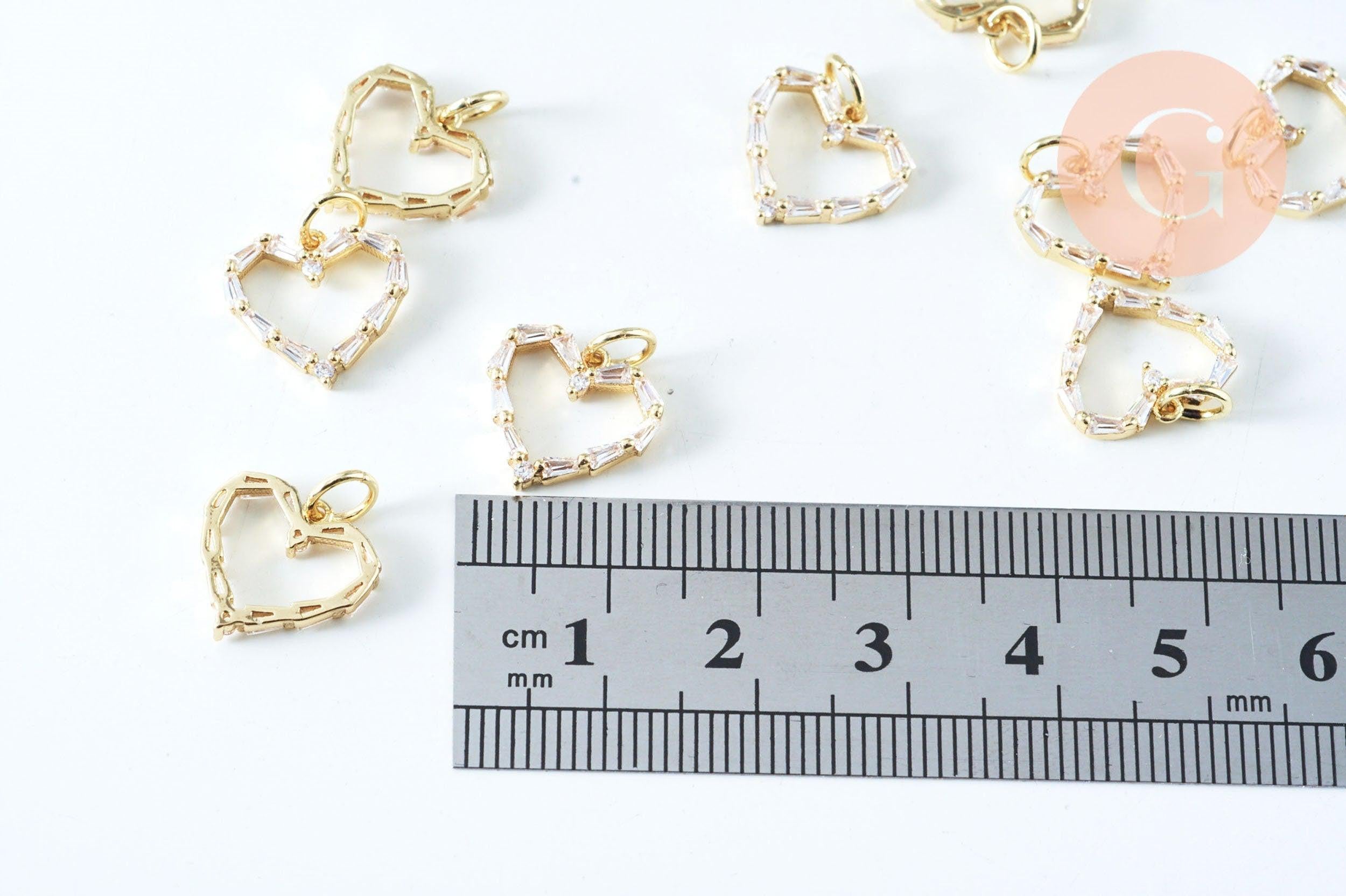 Pendentif coeur laiton doré 18K et cristal zircon 12mm,pendentif laiton amour pour création bijoux, x1 G6182