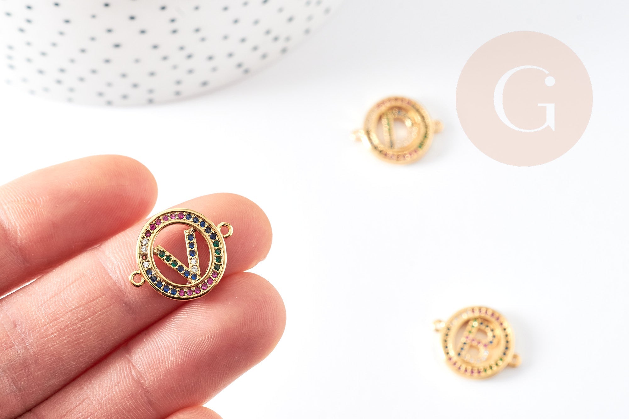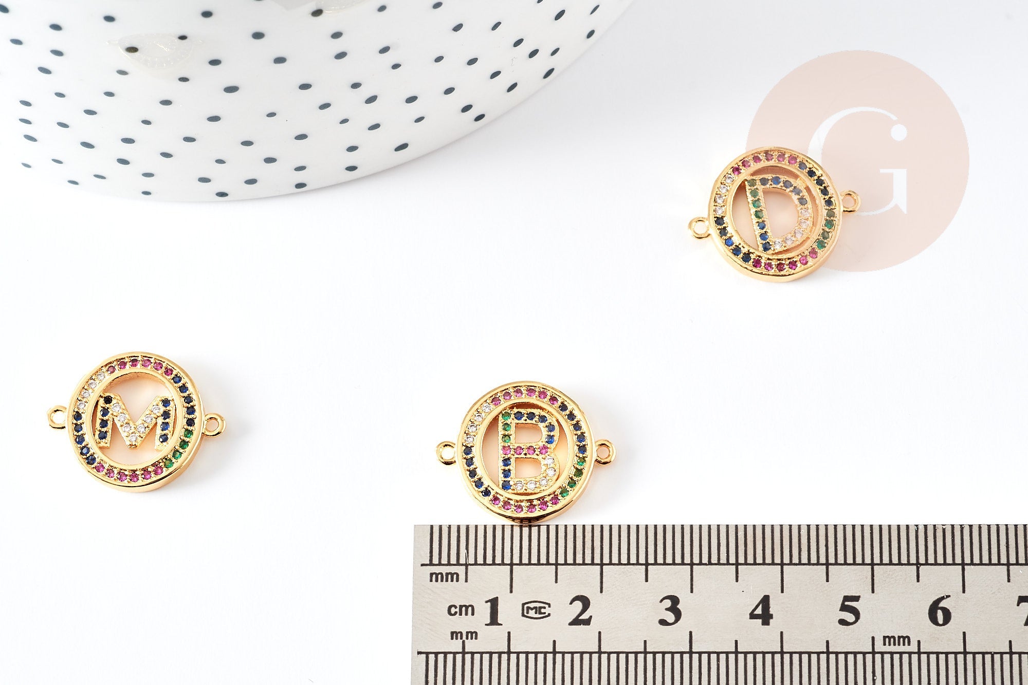 Express your unique style with our letter connector pendant, adorned with colorful crystals and crafted in gold-tone brass. Measuring 20mm, this zircon initial pendant is a dazzling way to add a personal touch to your jewelry.