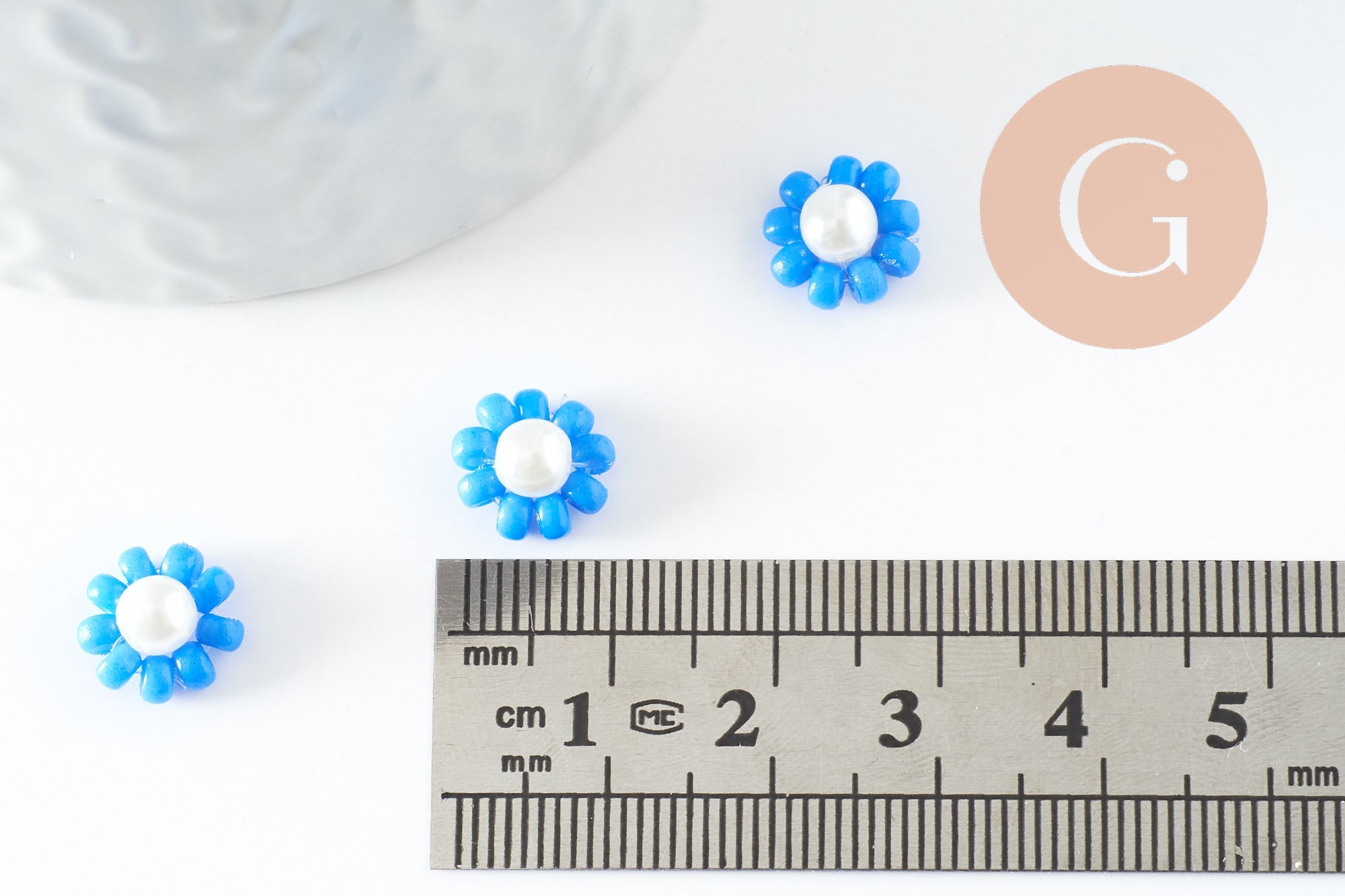 Blue glass seed flower connector pendant, glass pendant for jewelry creation, 10mm, x5 (G4025)