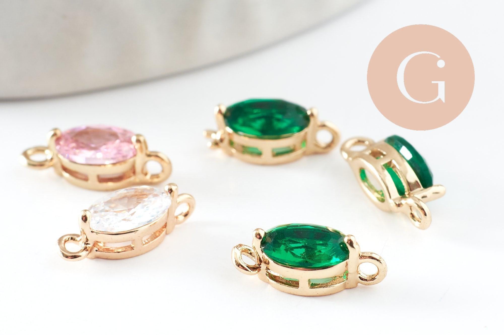 Add a touch of shine and color to your creations with this set of 5 drop-shaped connector pendants , in 24-carat gold plating and adorned with faceted multicolored zircons . Elegant and luminous, these findings are perfect for creating fine and colorful jewelry : earrings, necklaces, bracelets...