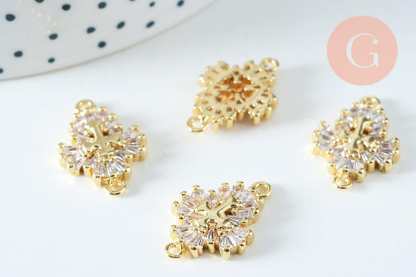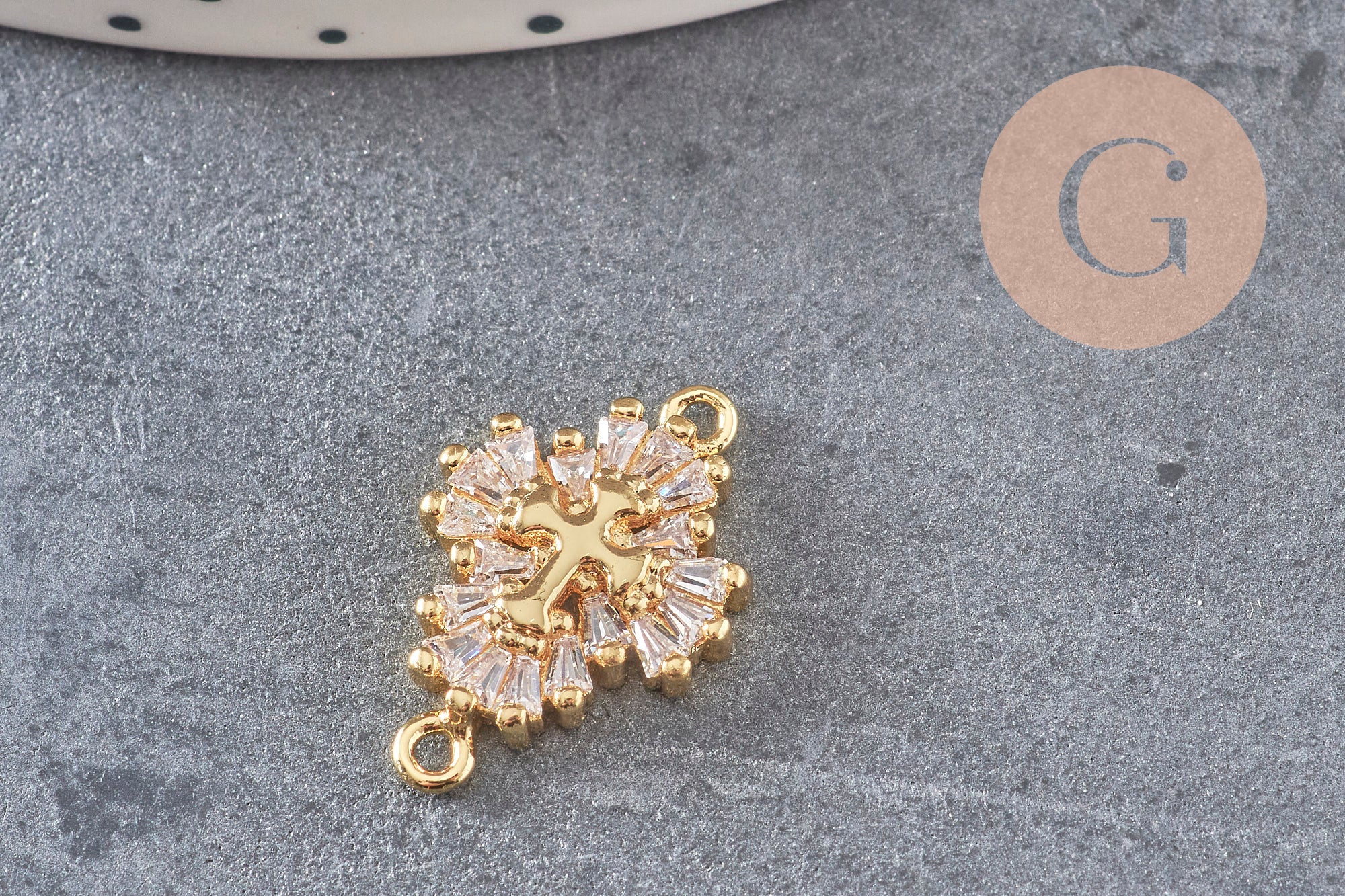 Adopt this ex-voto cross connector pendant in gold-plated brass, decorated with small shiny zircons, to create magnificent necklaces, earrings and bracelets.
