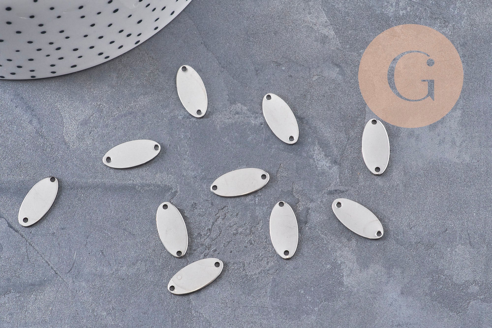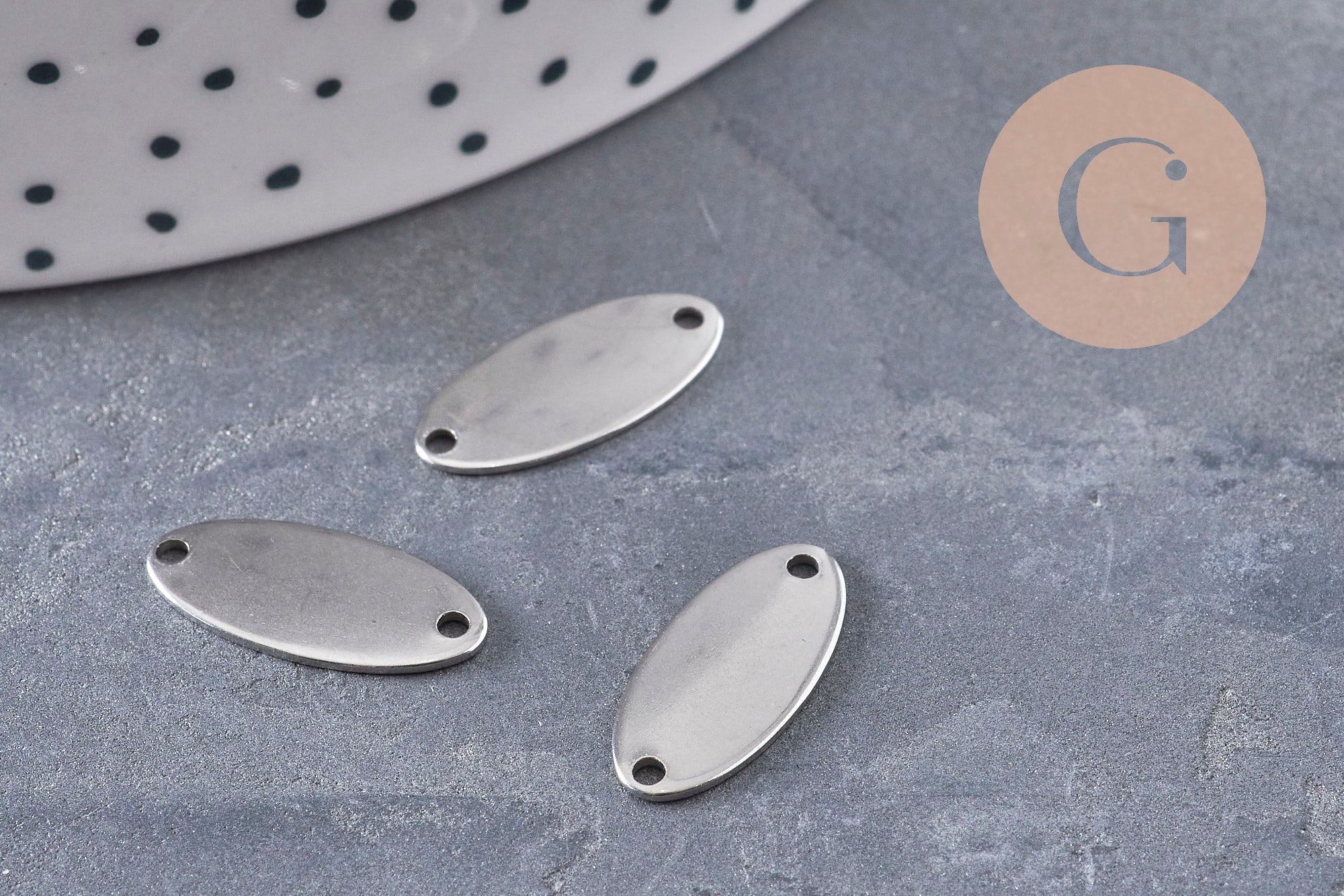 Sobre, moderne et facile à associer, ce pendentif connecteur ovale en acier inoxydable 201 finition platine est une base idéale pour la création de bijoux DIY durables et élégants. Sa forme ovale épurée et sa teinte acier naturel en font un apprêt intemporel, parfait pour des bijoux minimalistes comme pour des compositions plus travaillées.