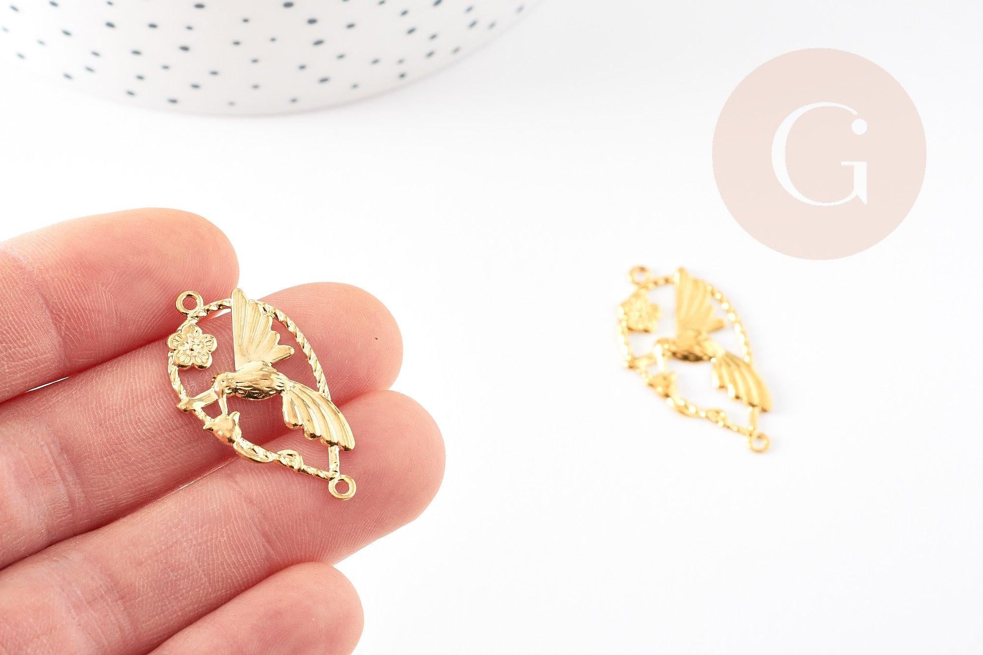 Let yourself be inspired by the grace of this golden hummingbird connector pendant to design jewelry that tells a story.