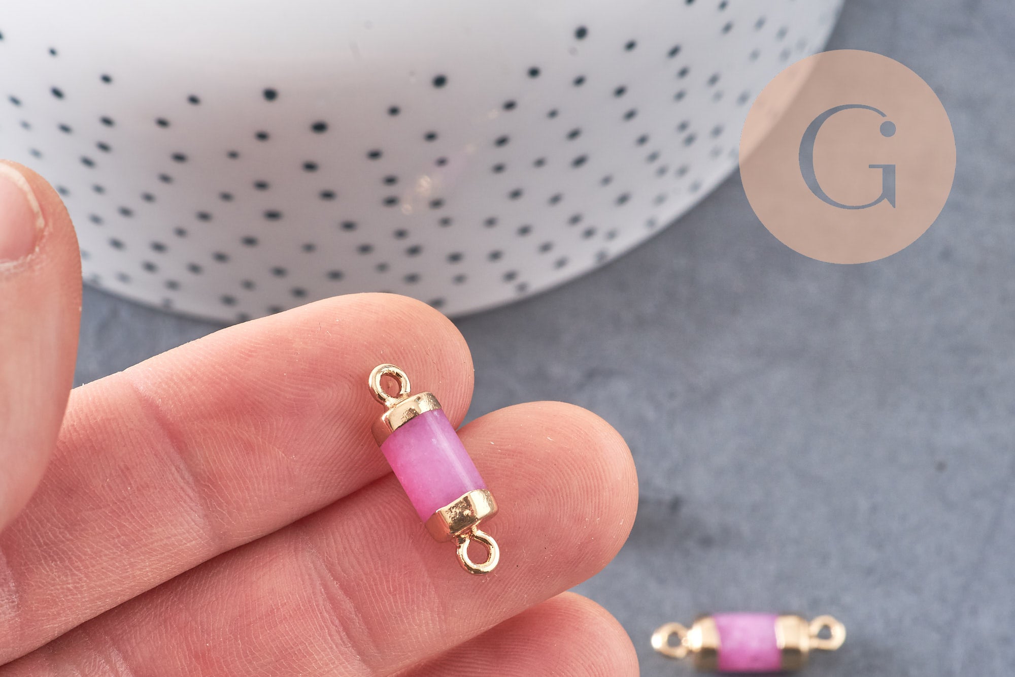 Gold rose jade tube connector pendant, creative supplies, jewelry pendant, pink jasper tube, stone pendant, natural pink jasper, 20mm