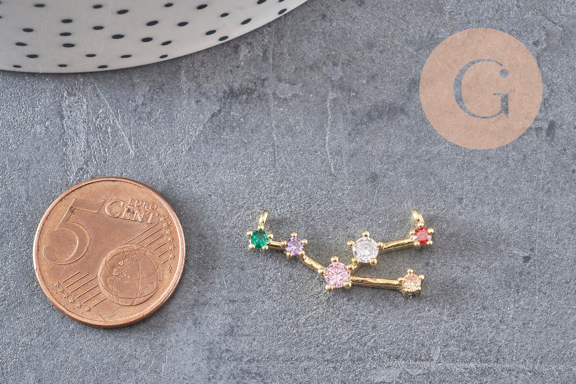 Golden brass zircon constellation pendant, a celestial pendant of the horoscope sign of Taurus, 26.5mm