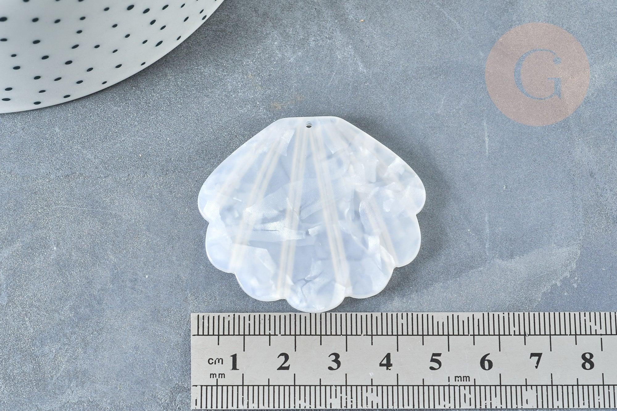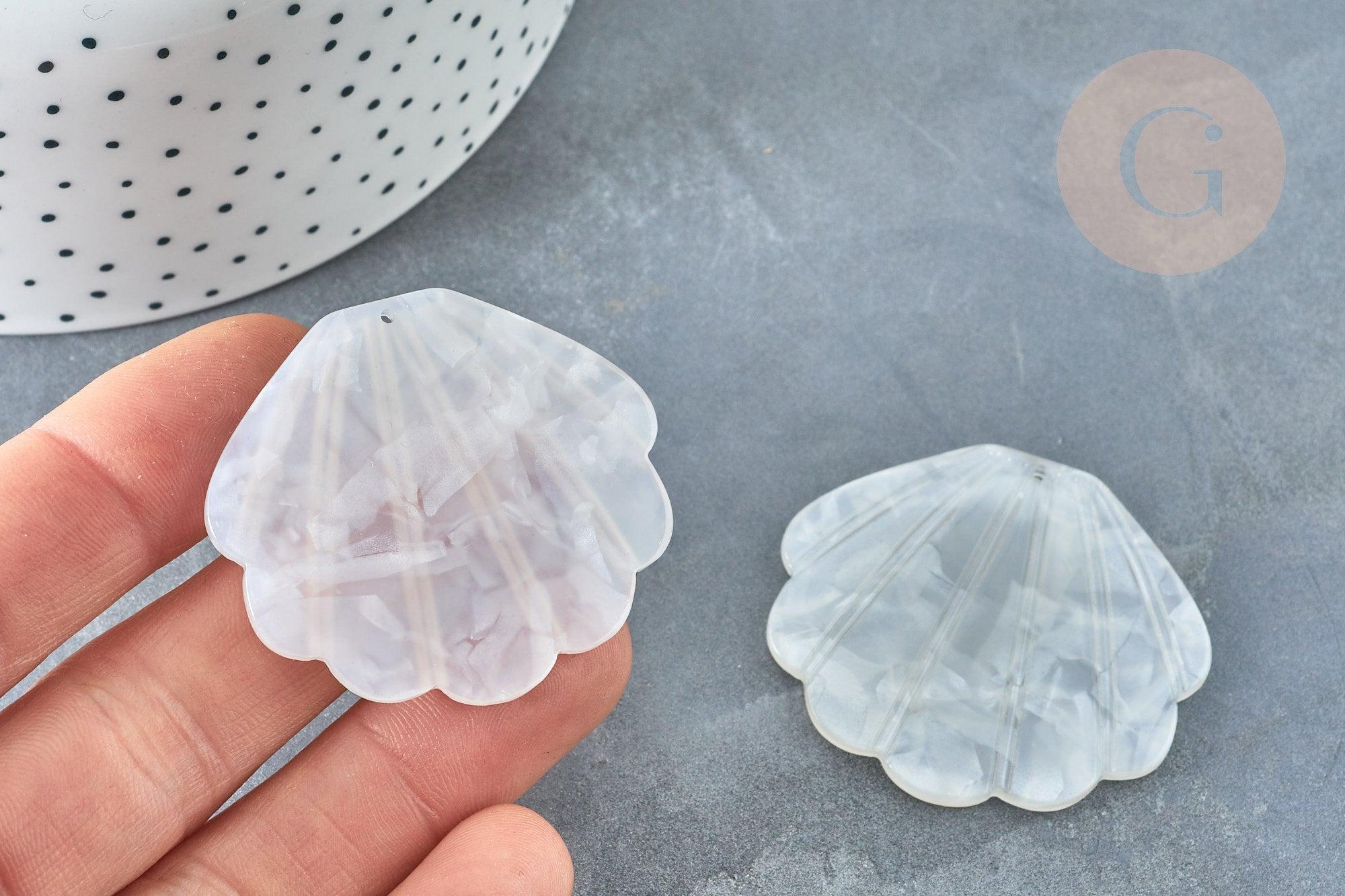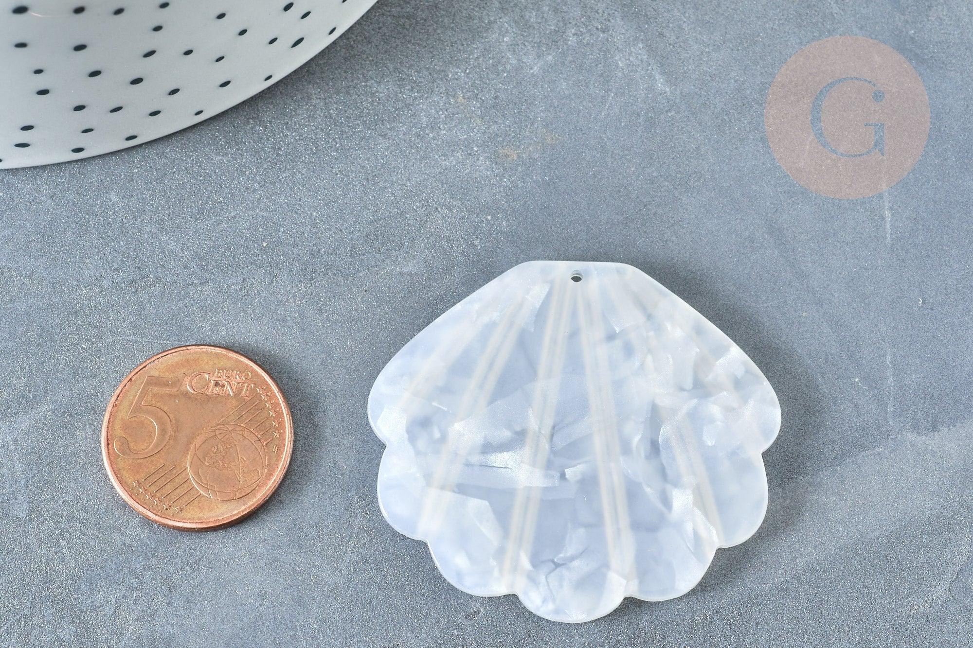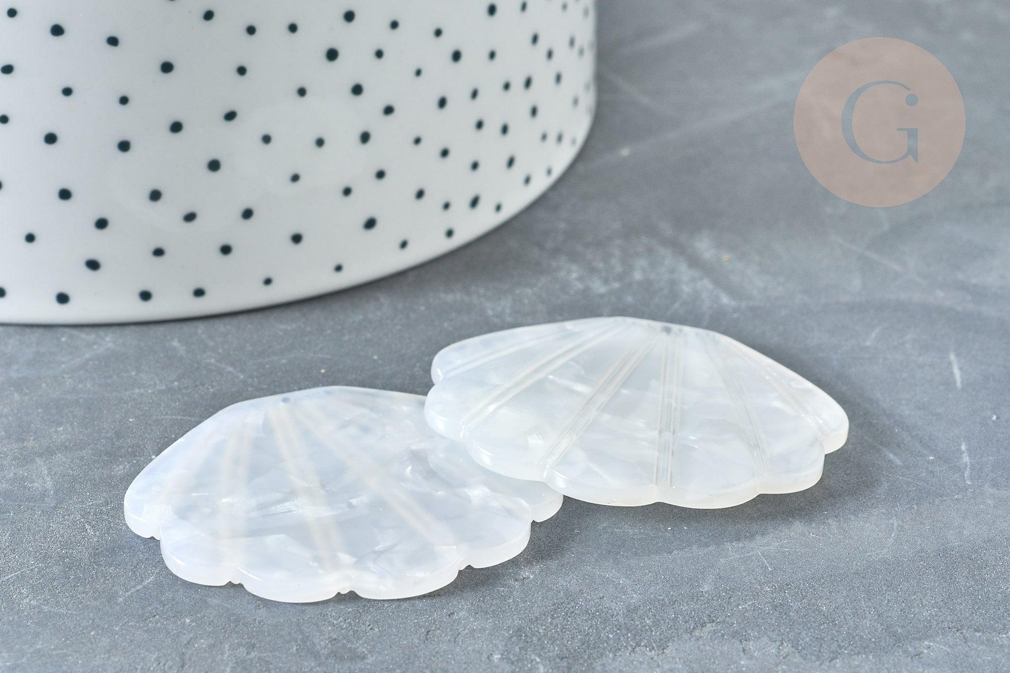 Pendentif coquillage acétate résine blanc nacré 45mm, x1 G8037