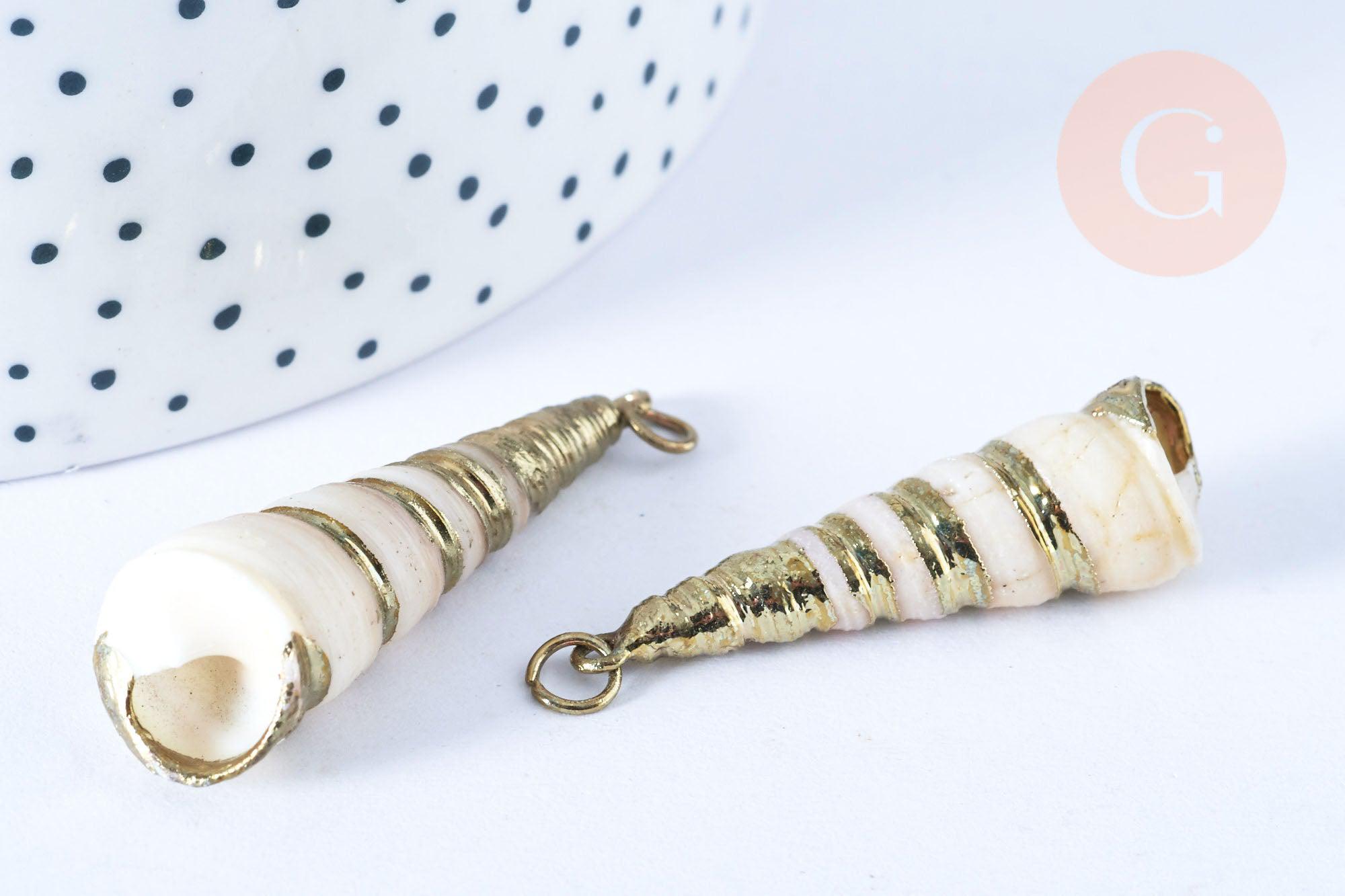 Pendentif coquillage blanc spirale doré 36-67mm, Pendentif coquillage pour création bijoux, x1 G7311