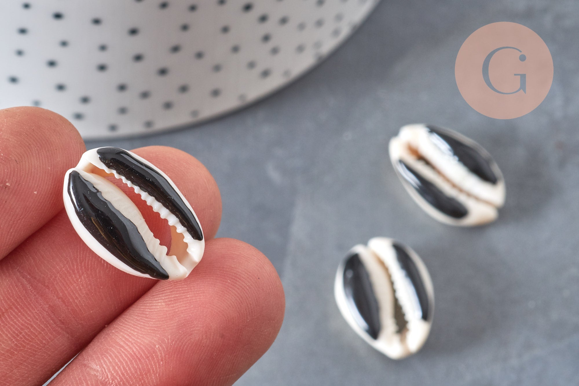 These natural cowrie shell beads can be used to create a variety of jewelry pieces, such as earrings, necklaces, bracelets, etc. Their black resin decor will bring a touch of originality and sobriety to all your creations.