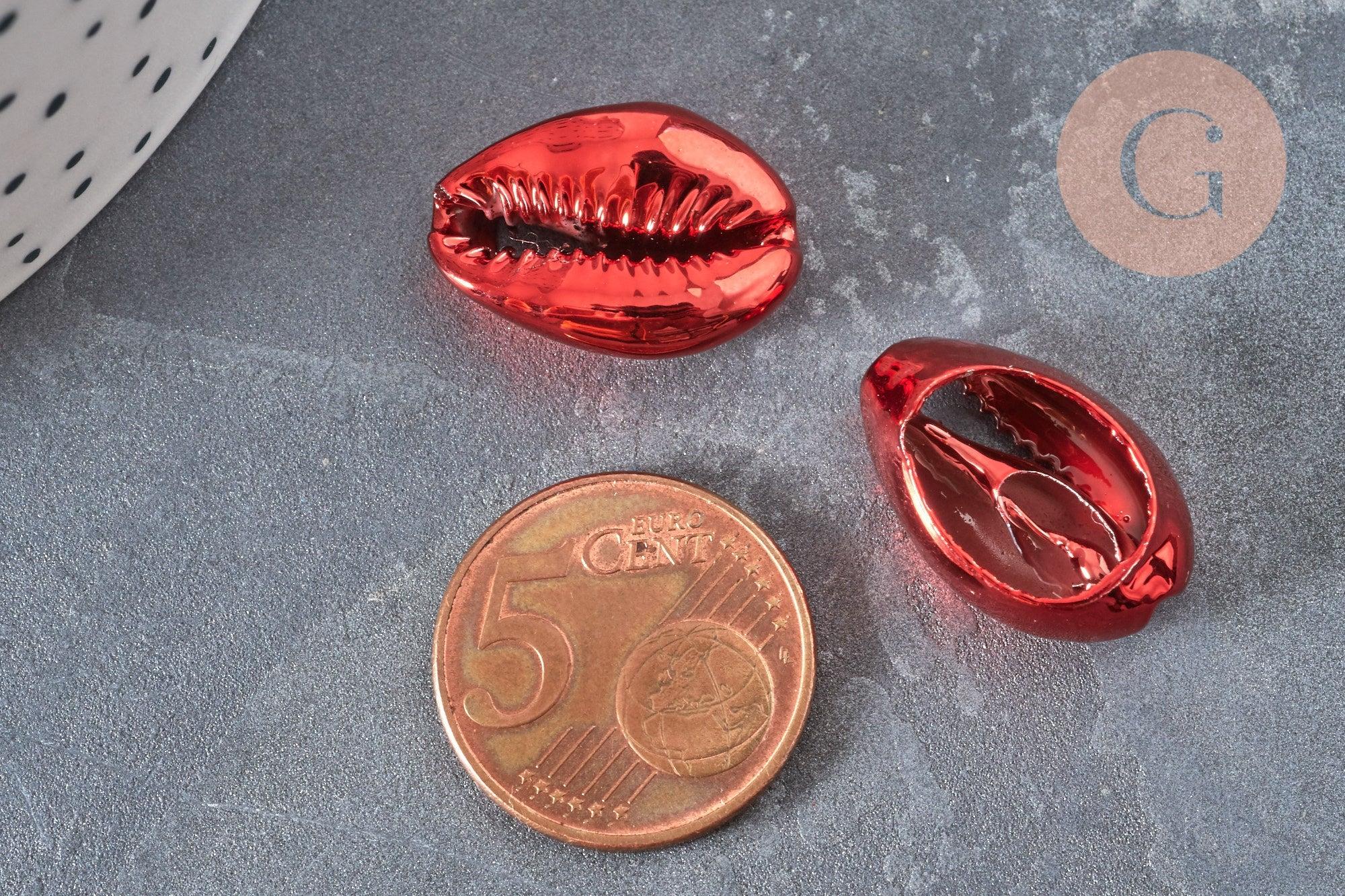 Red cowrie shell pendant, creative supplies, natural shell, metallic cowrie, jewelry creation, shell jewelry, shell, 20mm, 5