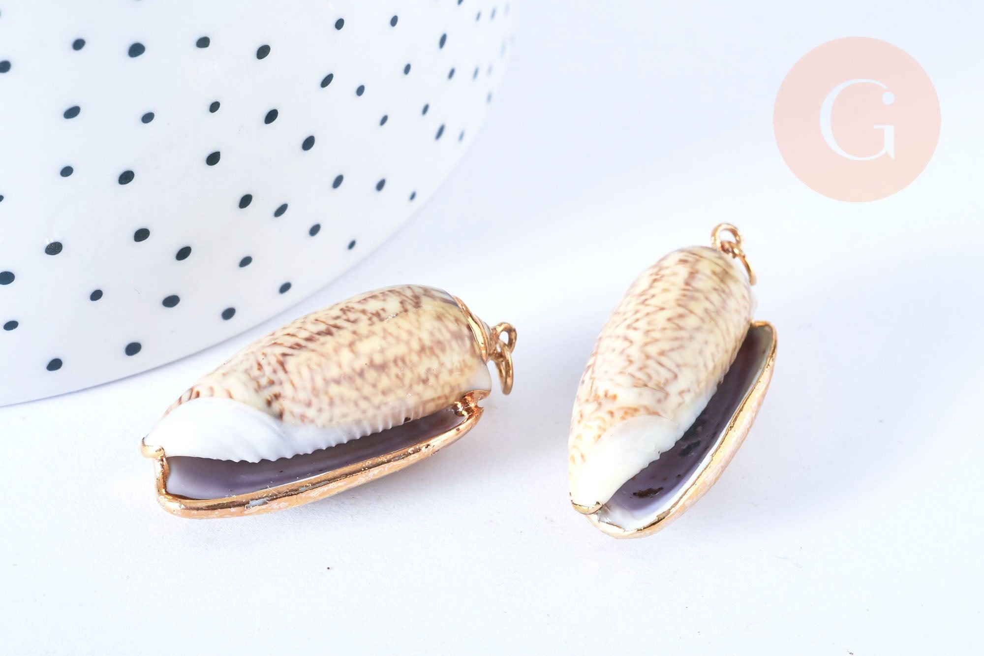EP-Pendentif coquillage naturel spirale beige doré 31-36.5mm, pendentif création bijoux coquillage, x1 G7162