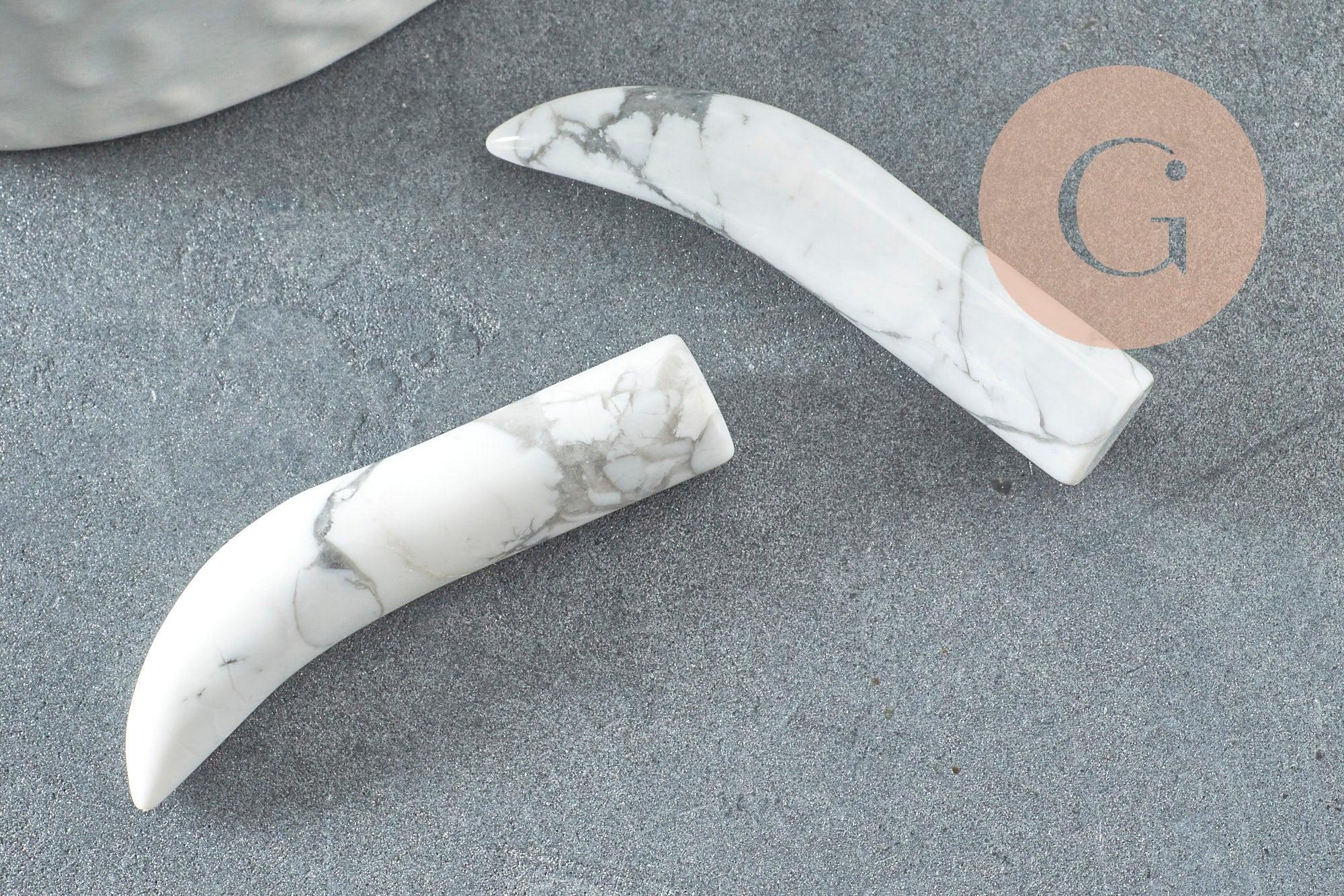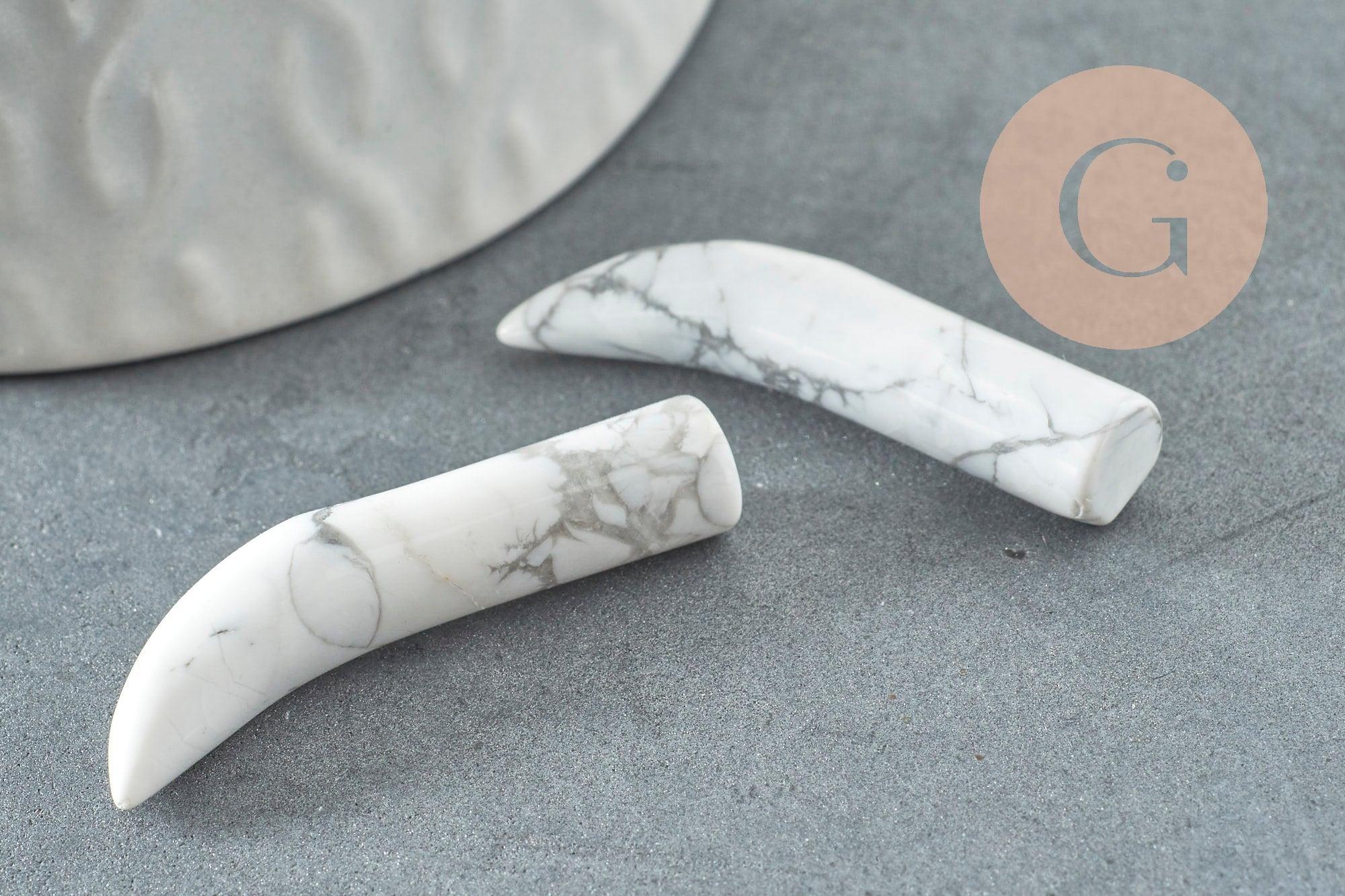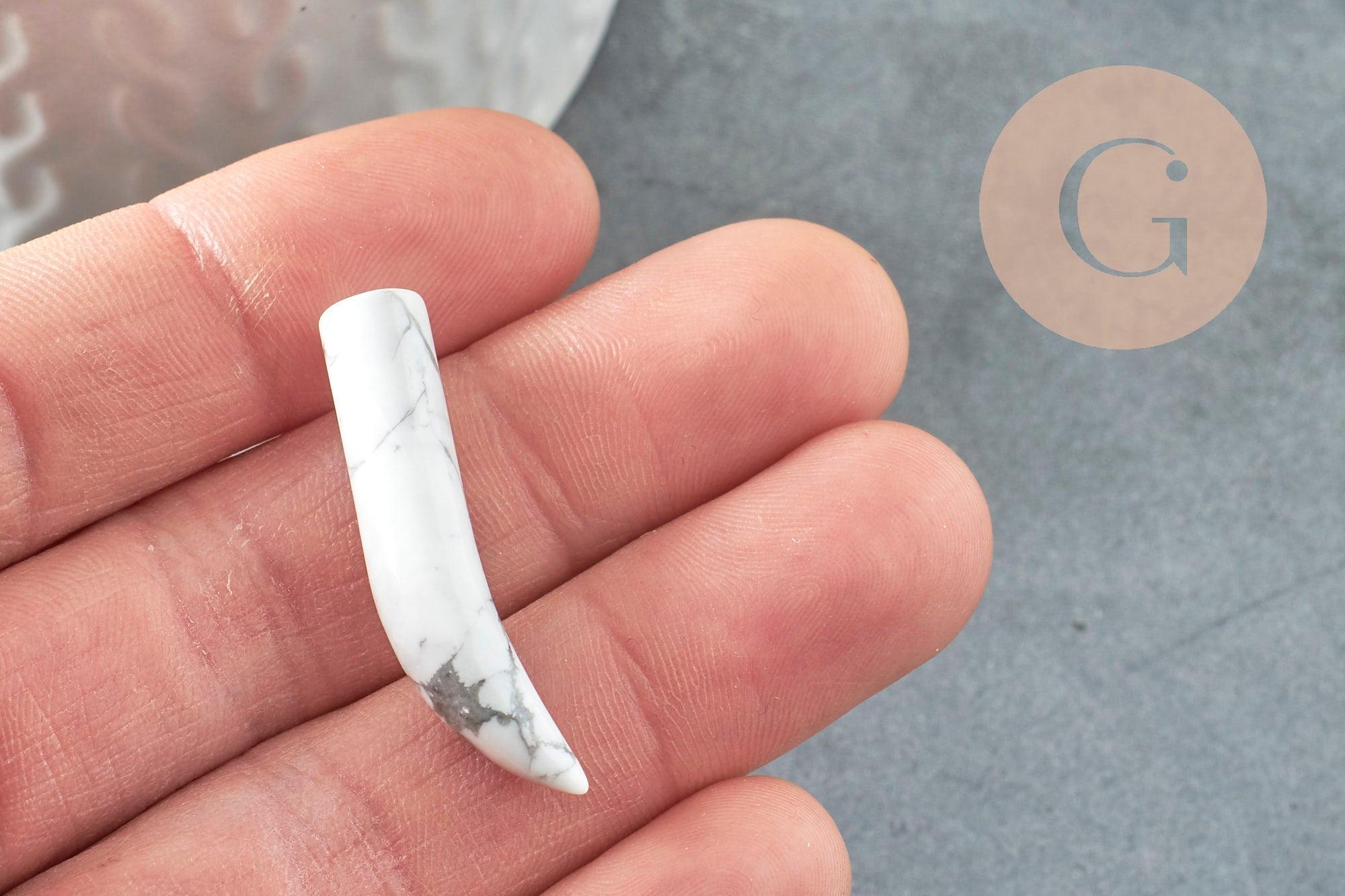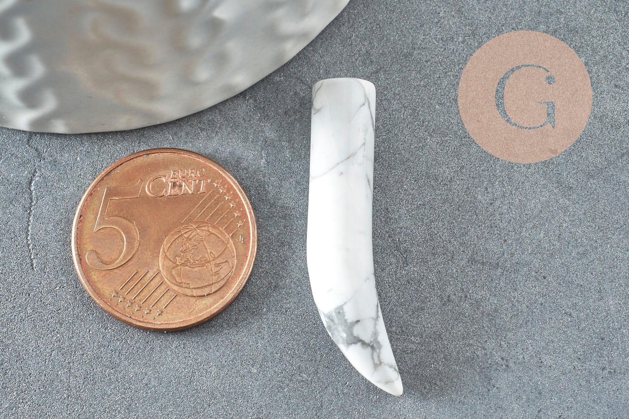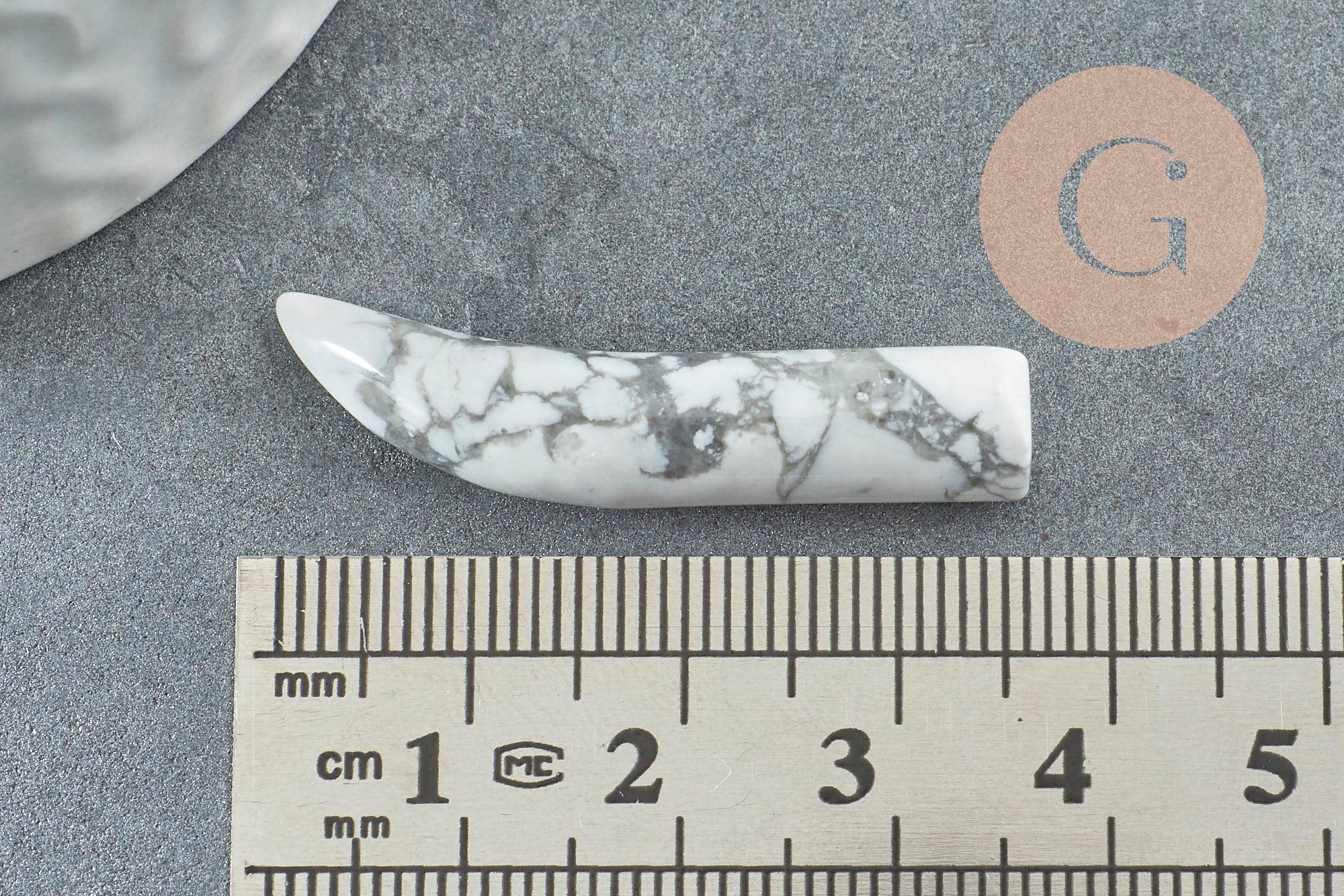Howlite horn pendant, jewelry creation, jewelry pendant, stone pendant, natural stone, natural howlite, undrilled stone, 38mm