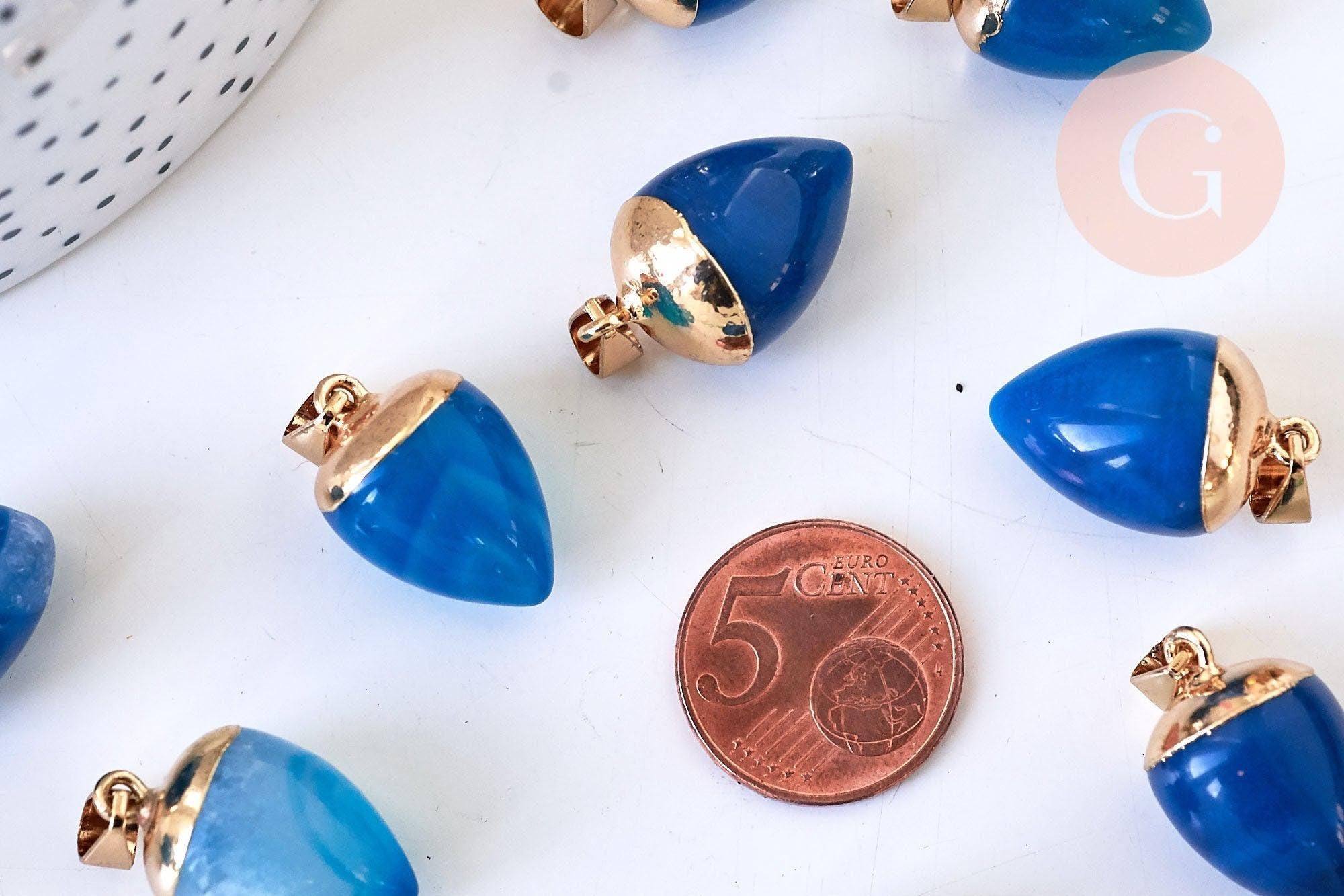Fall for this drop pendant in blue-tinted agate with its golden support.