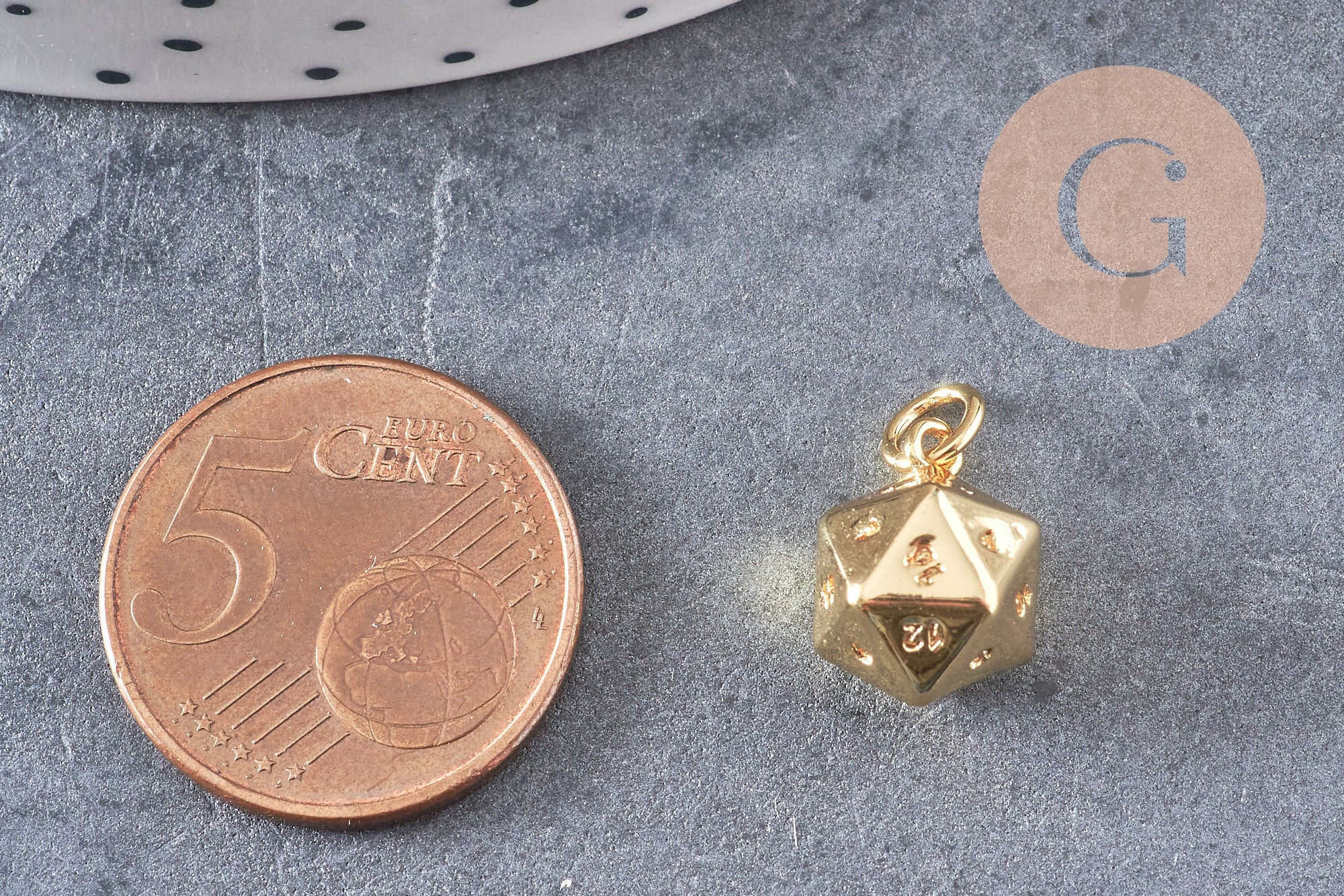18K gold 20-sided dice pendant, gold game pendant, lucky charm, gold brass, Game pendant, 13.5mm, each