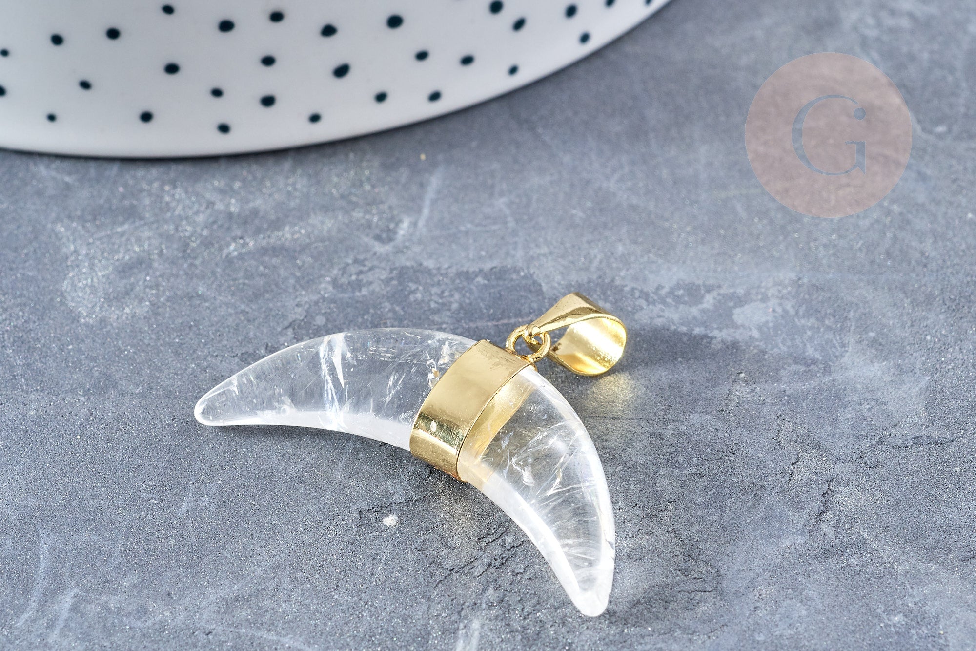 The rock crystal crescent moon pendant is a true natural gem that will allow you to personalize your jewelry creations . Mounted on a premium gold-plated brass base, this pendant is elegant and refined. Rock crystal is a powerful stone,...