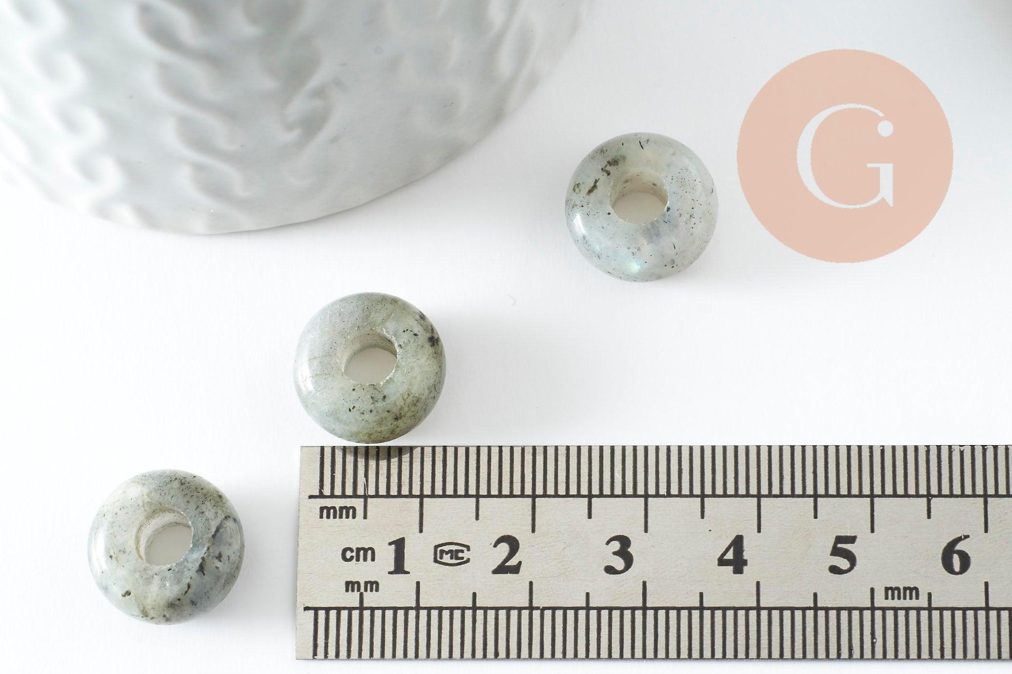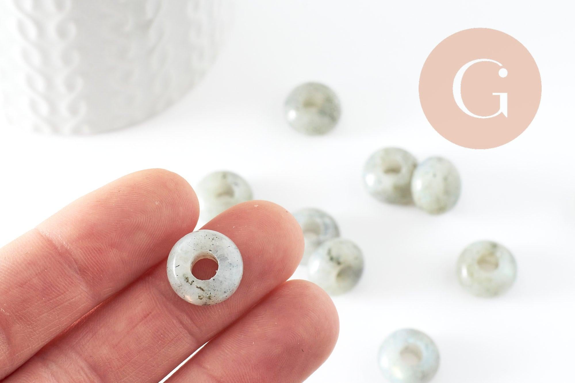 Pendentif donut labradorite naturelle 14mm pour création de bijou en pierre, pendentif pierre cercle, x2 (G5927)