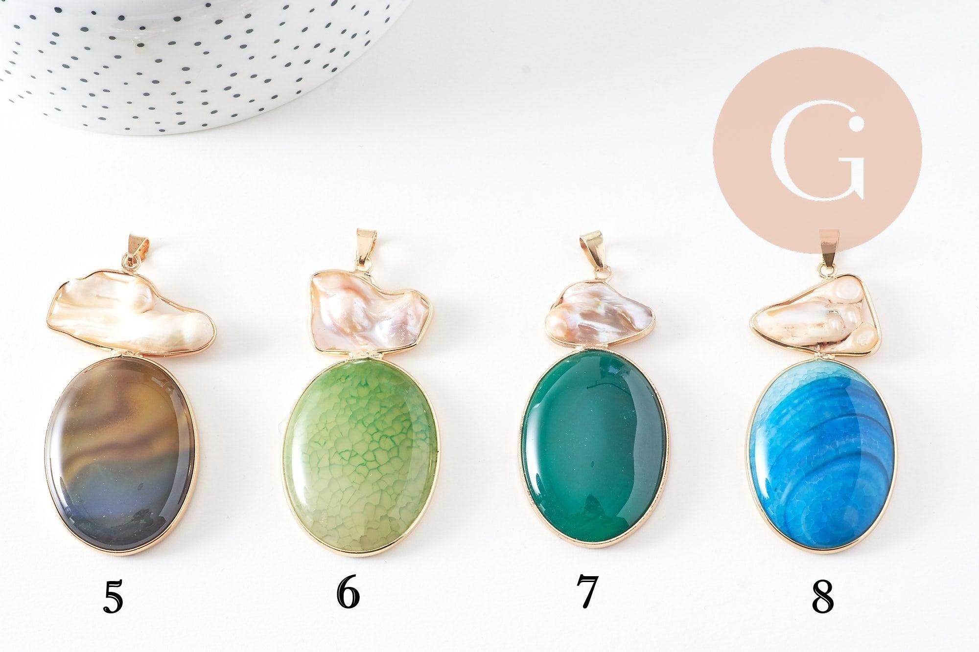 Enhance your creations with this oval pendant in colored natural agate , enhanced with a mother-of-pearl bead for a touch of elegance. Each piece is unique , with variations in color and pattern specific to natural stones.