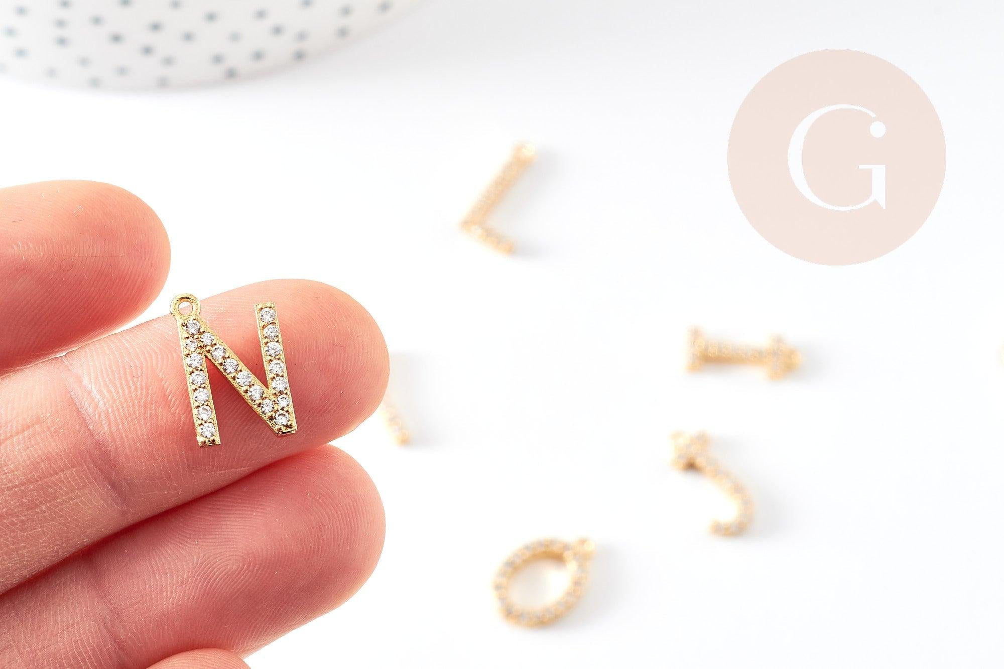 Personalize your jewelry with elegance thanks to our white crystal and gold-plated brass letter pendant . With a size of 15mm, this refined pendant, referenced G2728, features a letter set with sparkling zircons, offering exceptional brilliance and finesse. Ideal for representing a first name initial, it adds a personal and sophisticated touch to any type of jewelry.
