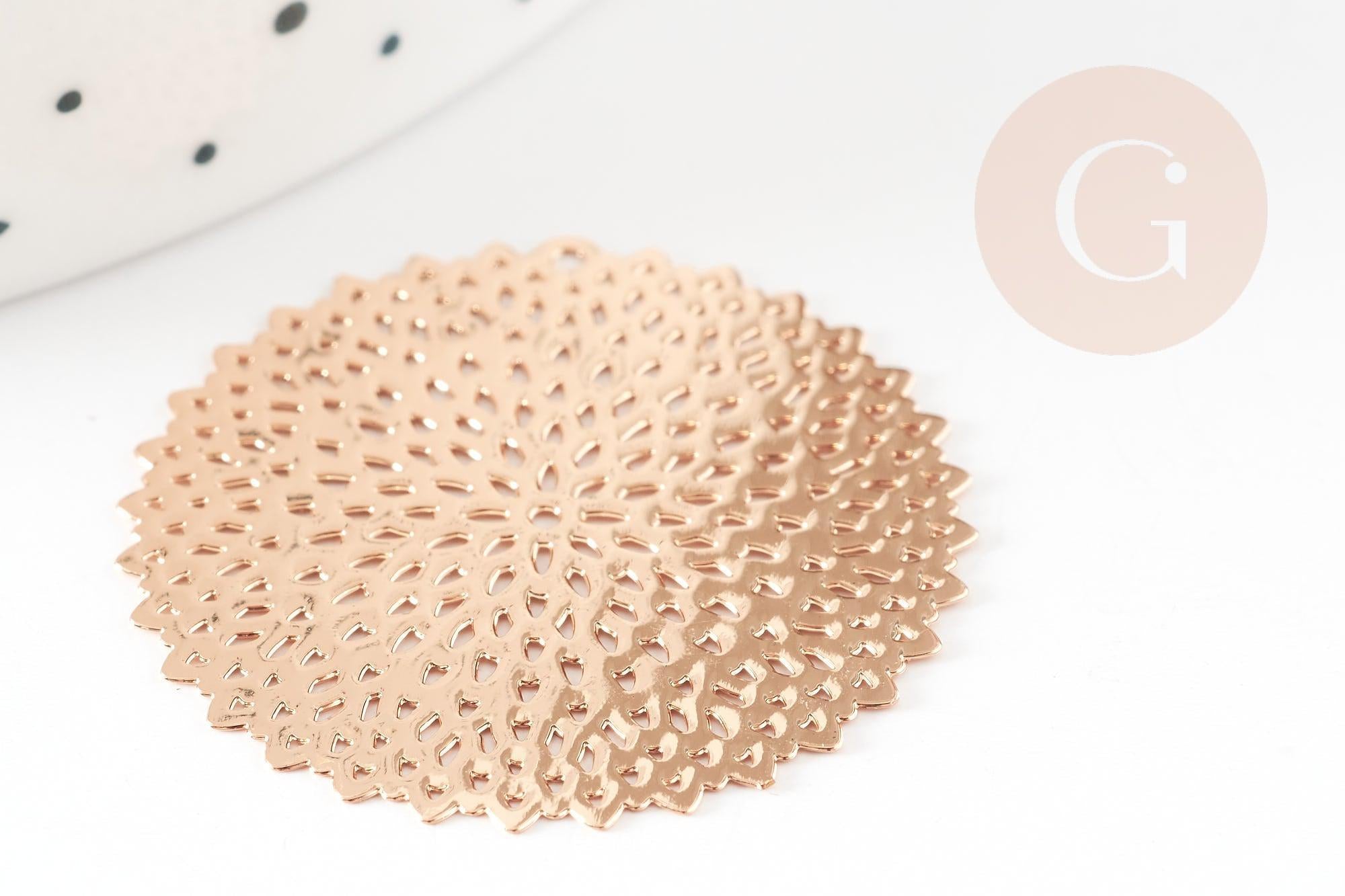 This round openwork rosette pendant is perfect for creating costume jewelry with a bohemian chic look, with a pop look depending on the stones and pearls you choose.