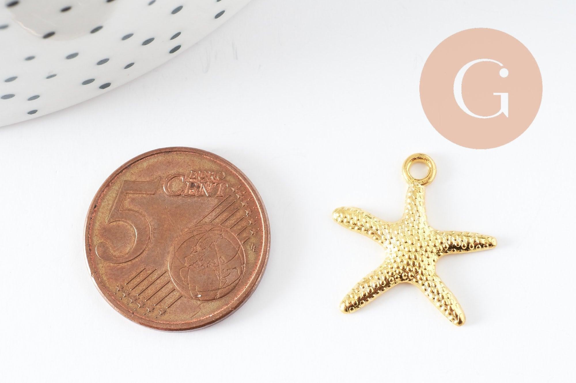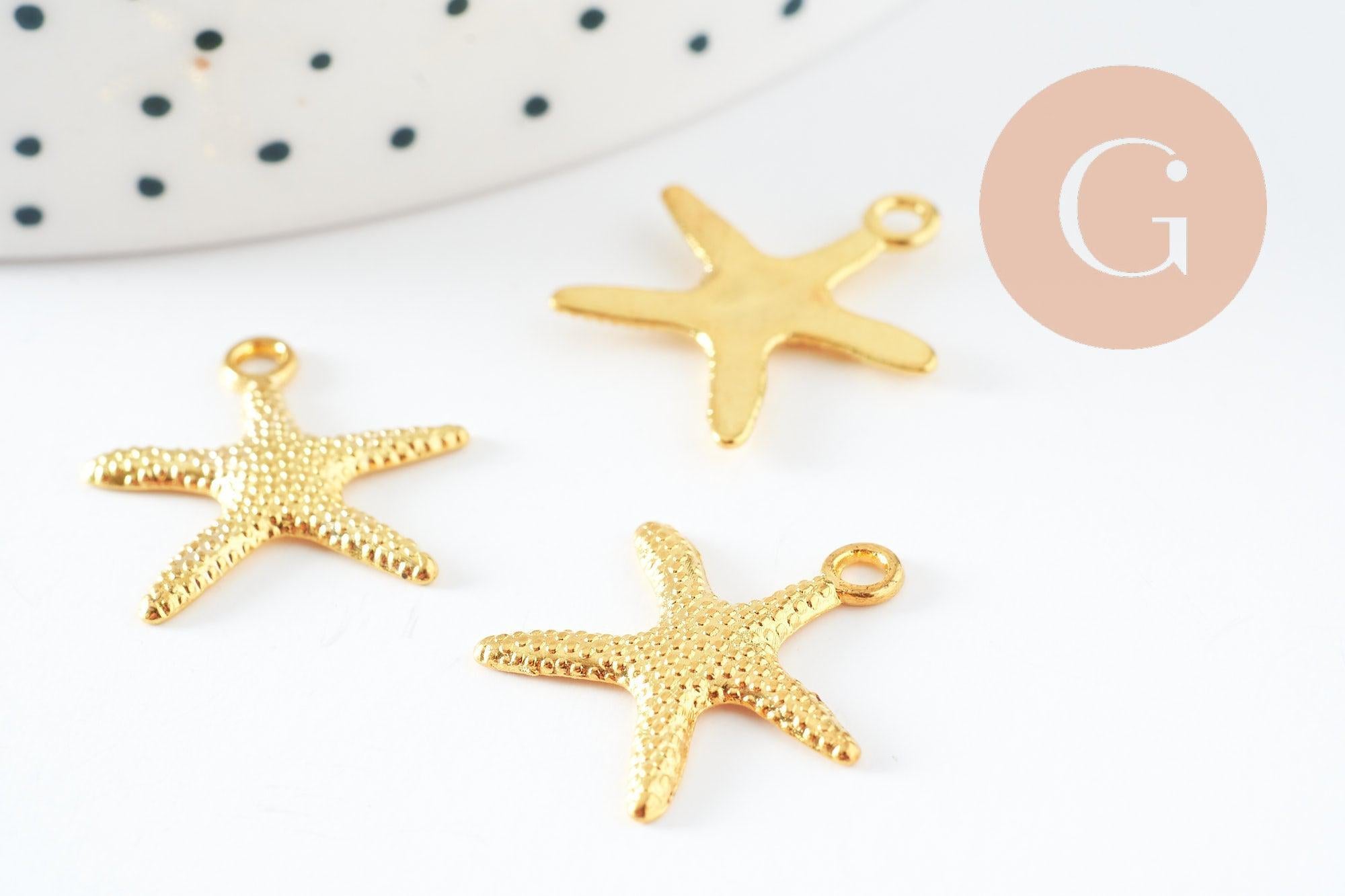 Golden starfish pendant, creative supplies, necklace pendant, marine pendant, jewelry creation, golden brass pendant, 19mm, 10