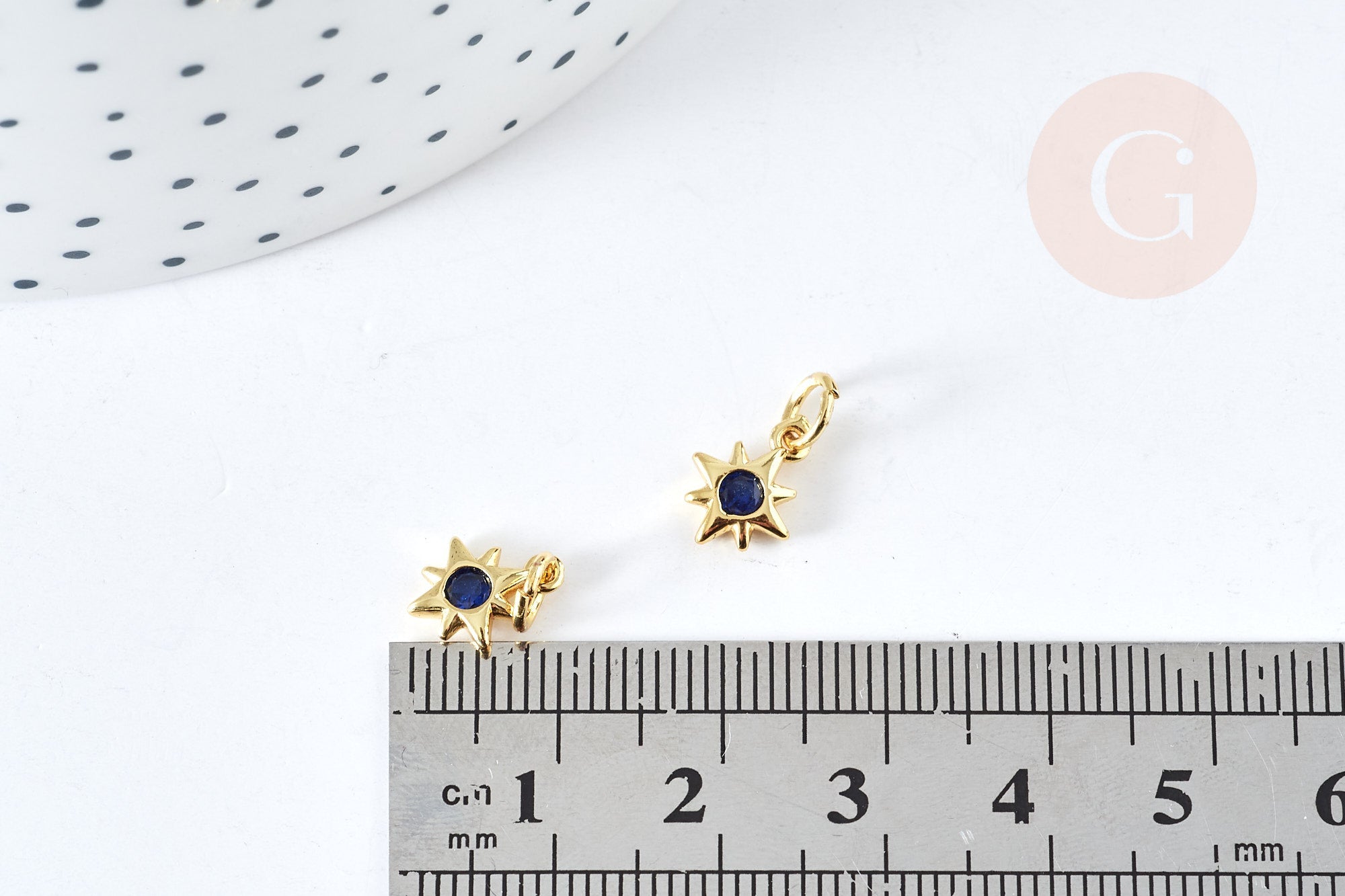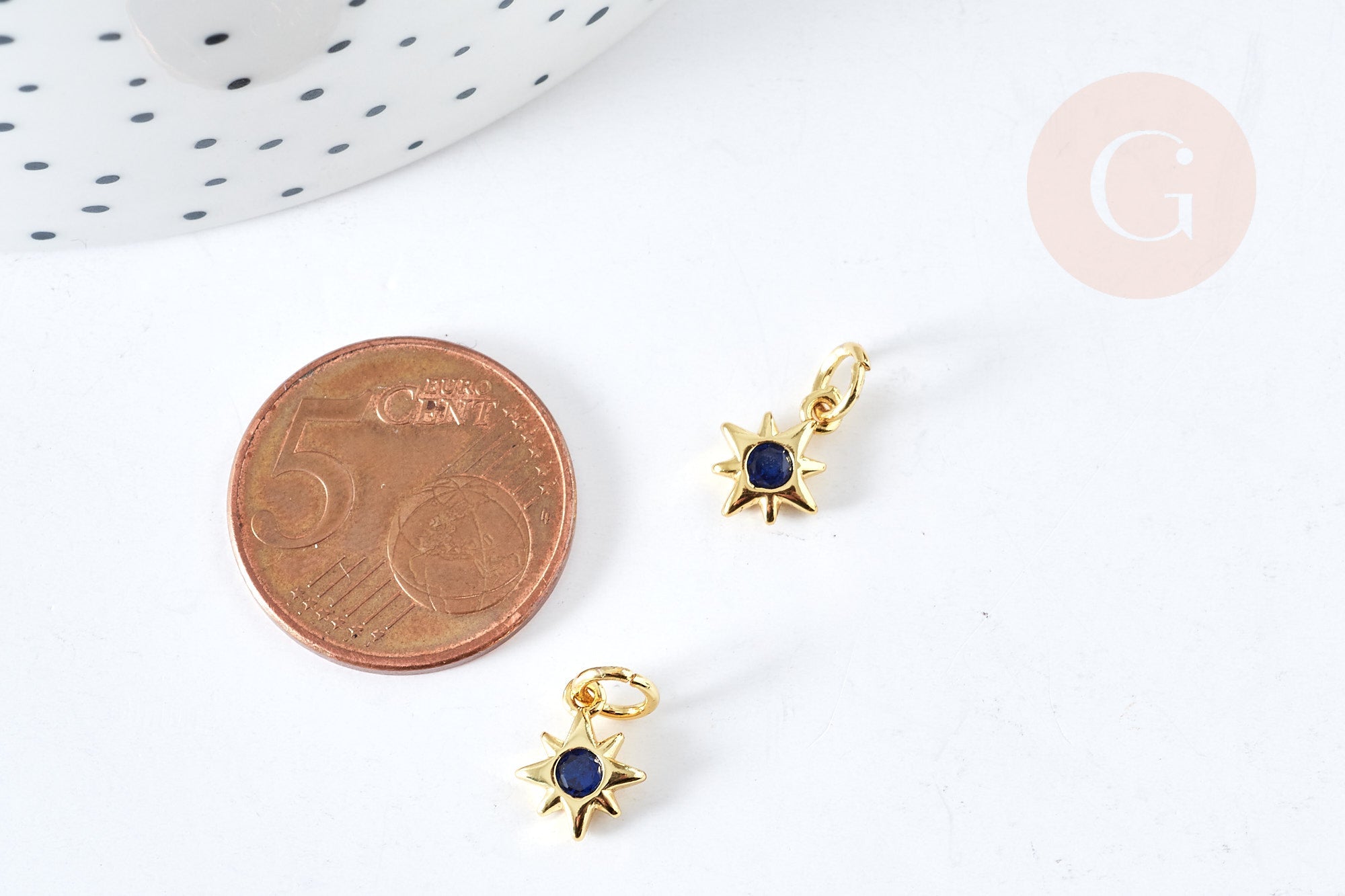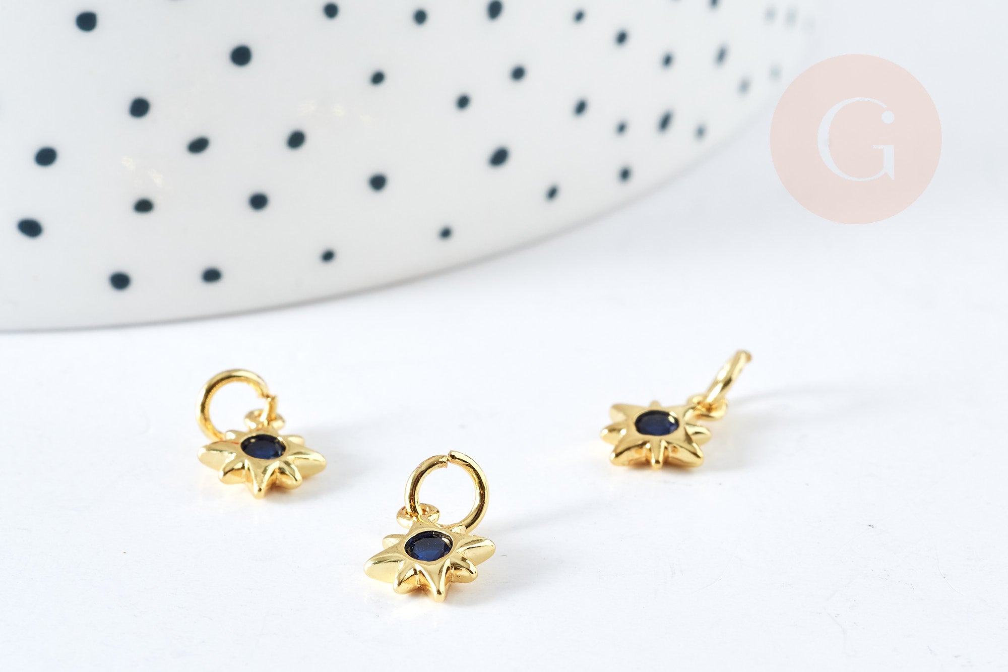 In 18K gold-plated brass and decorated in the center with a blue zircon crystal, this star pendant is a quality piece of jewelry that will add a touch of sparkle to any jewelry creation .