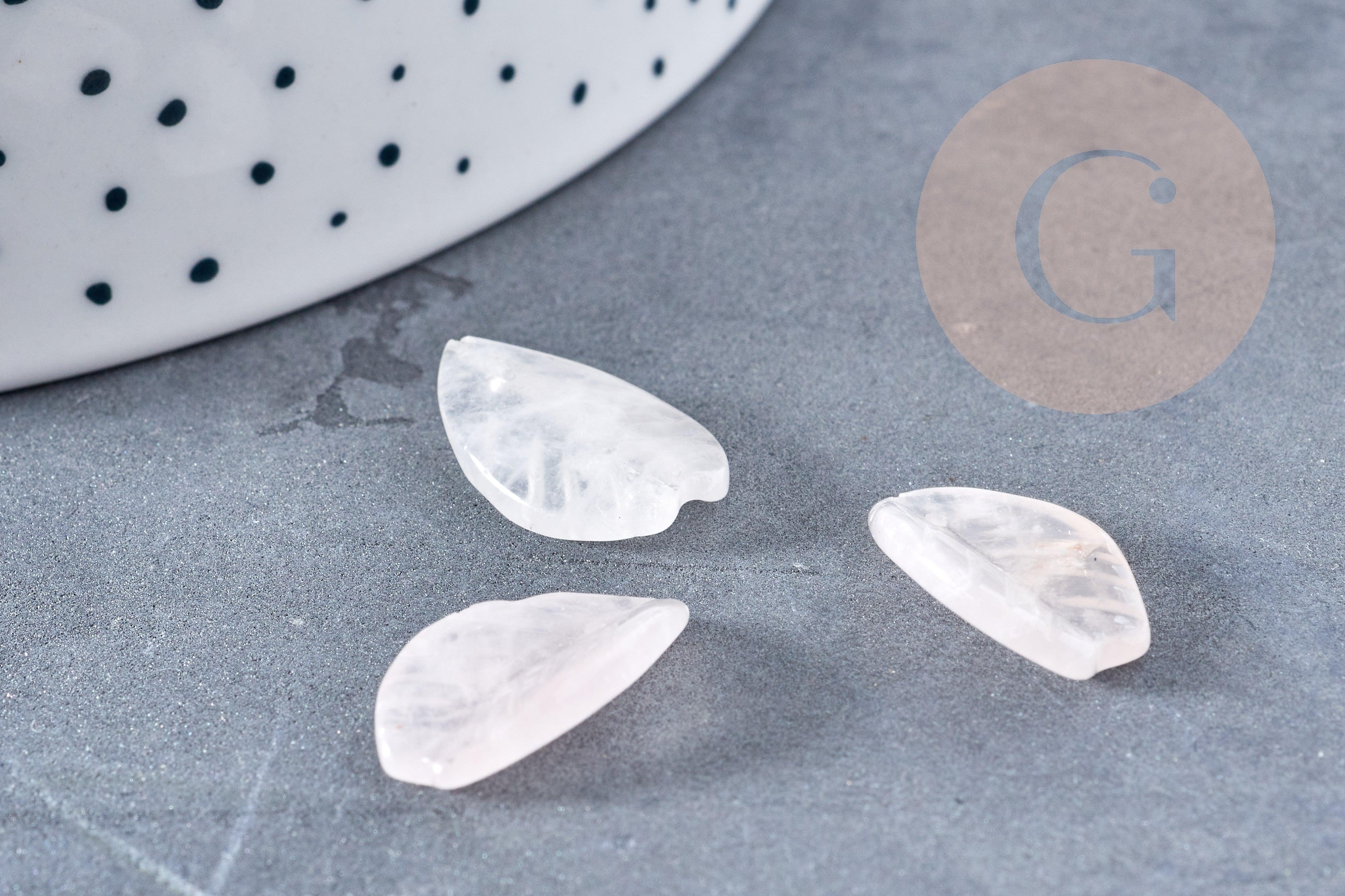 The natural rose quartz leaf pendant is a unique jewelry creation element. Each pendant is made from natural rose quartz in a leaf shape. Sold individually, this pendant is perfect for creating original and elegant jewelry