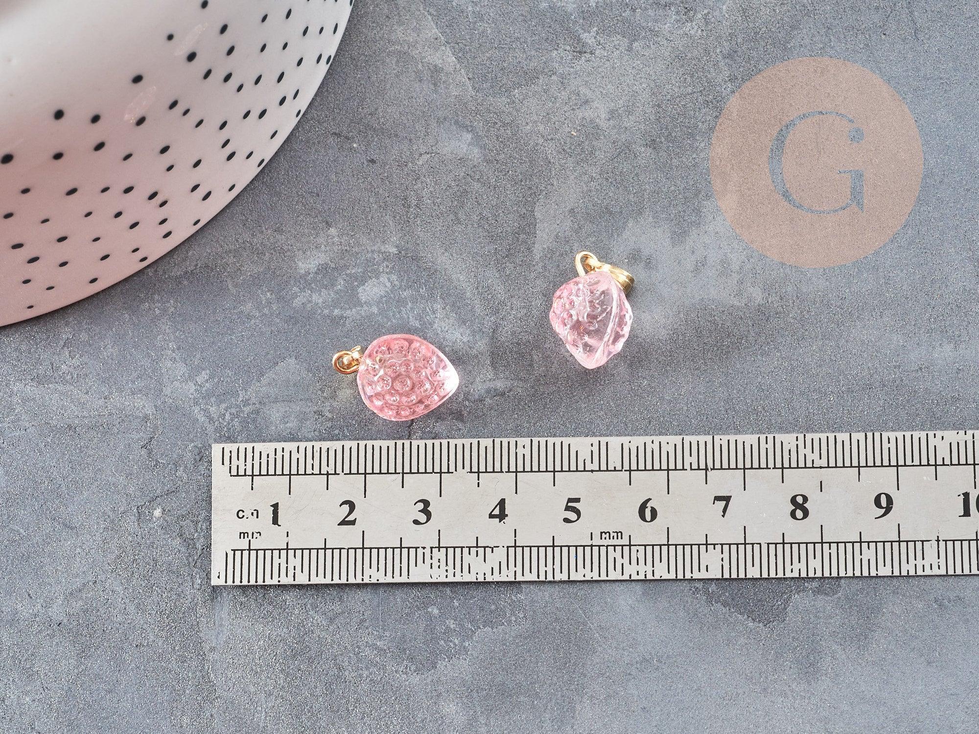 Fall for this delicious strawberry pendant in pink glass. This hangs with a gilded iron bail.