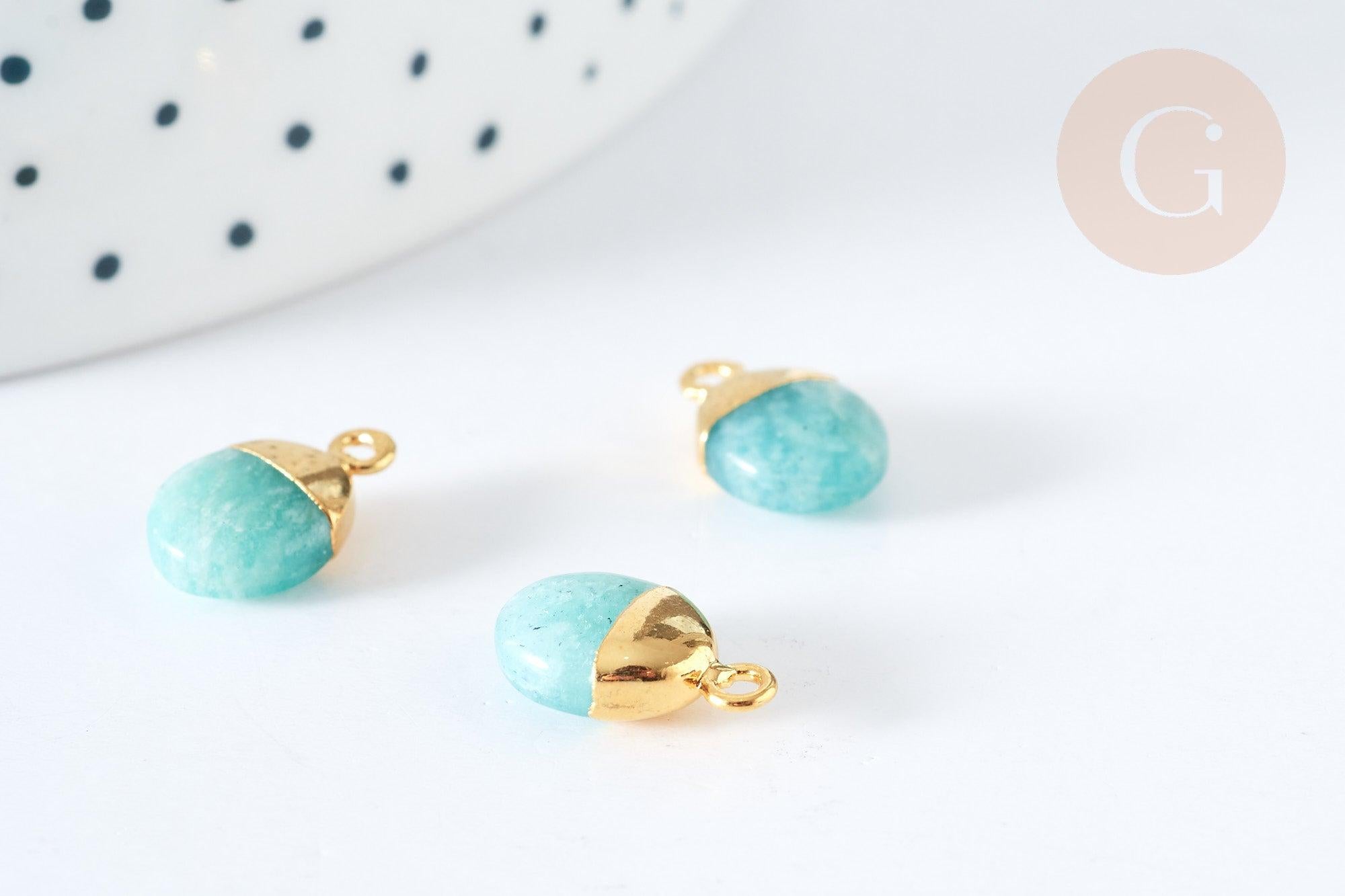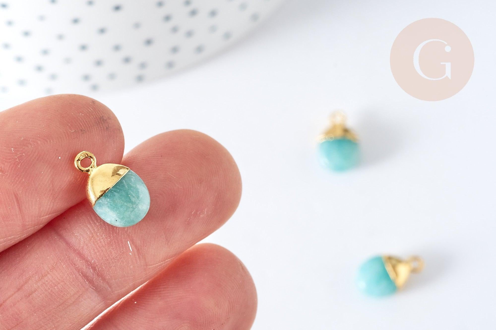 Pendentif goutte amazonite naturelle argent 925 doré 18K 20mm, x1 (G7720)