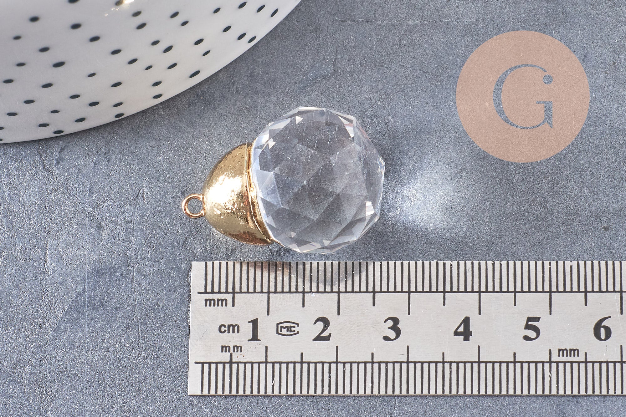 Pendentif goutte doré cristal transparent facettes,pendentif cristal, pendentif doré,création bijoux,30mm, x1 G4651