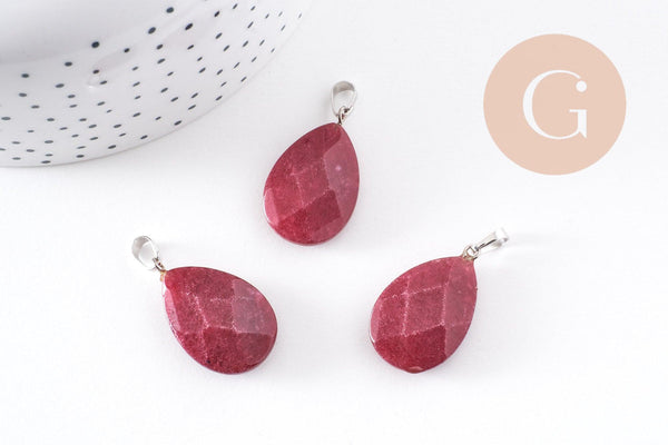This beautiful deep burgundy colored natural jade pendant is cut into a teardrop shape and delicately faceted to reflect light brilliantly.