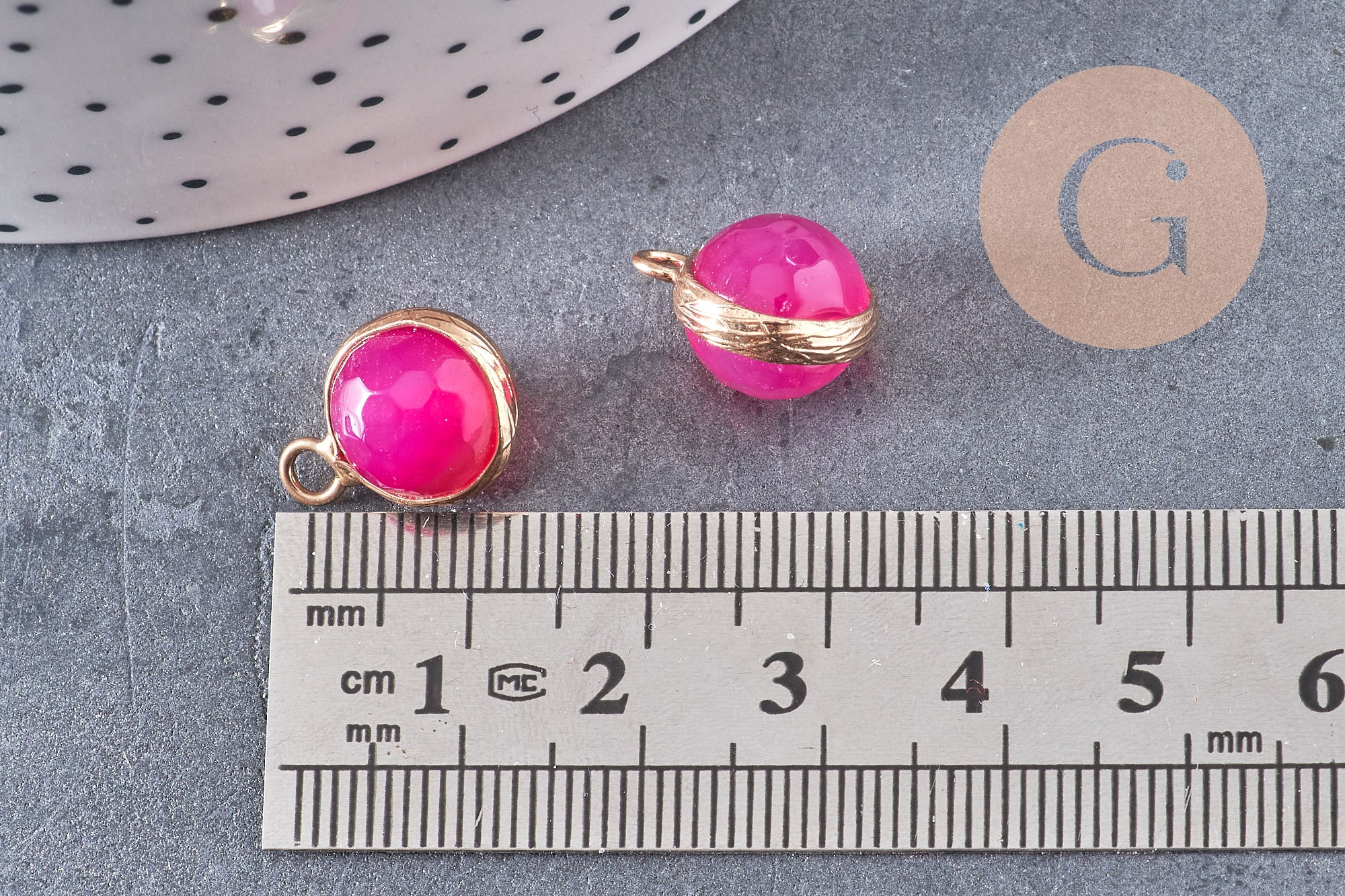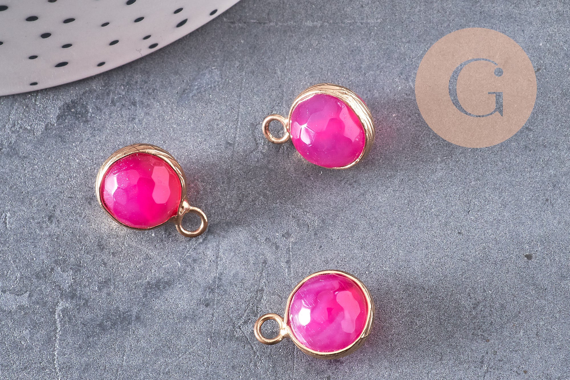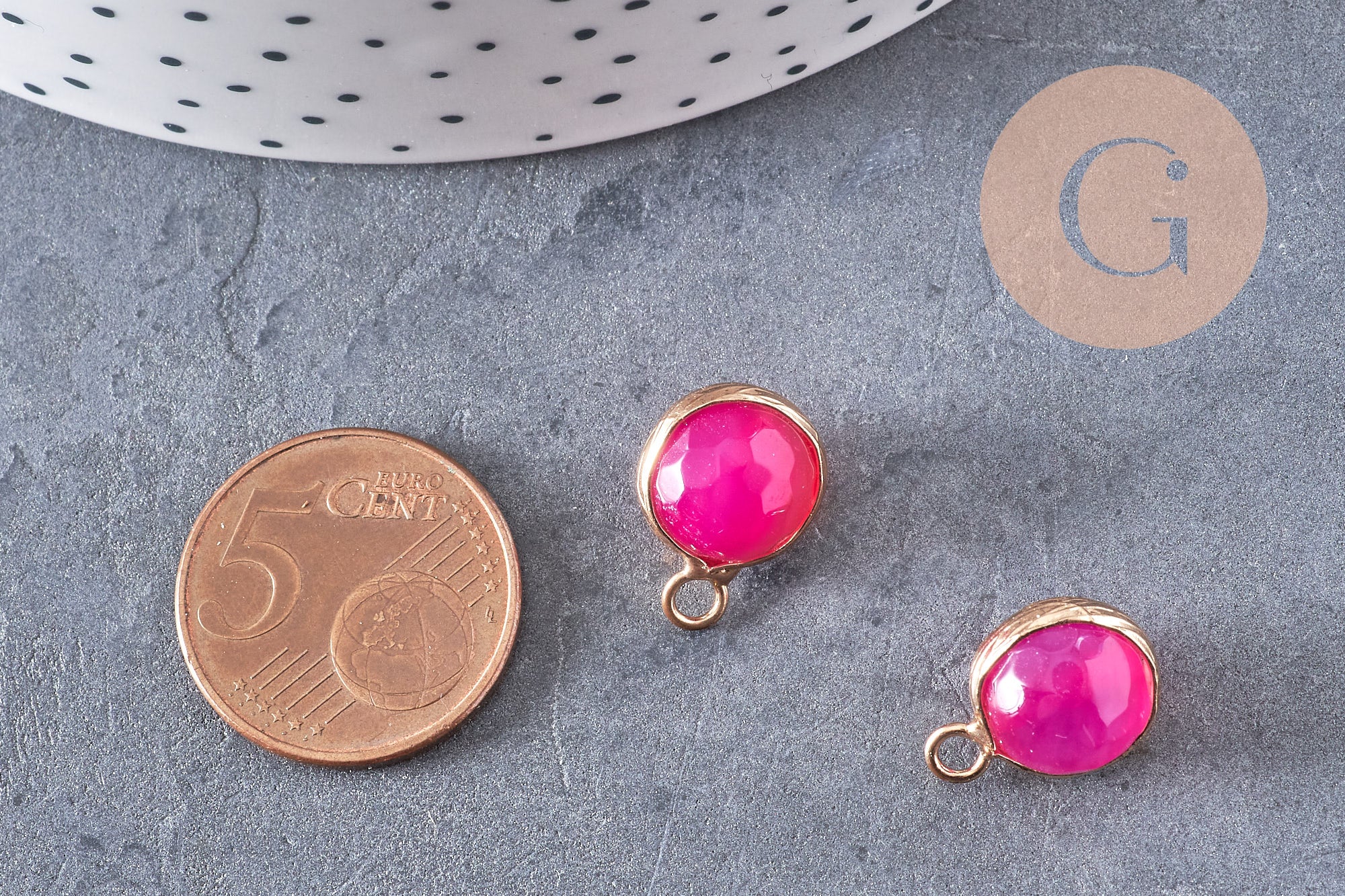 Fall for this very discreet little pendant in natural jade tinted in fuchsia pink with its golden iron support.