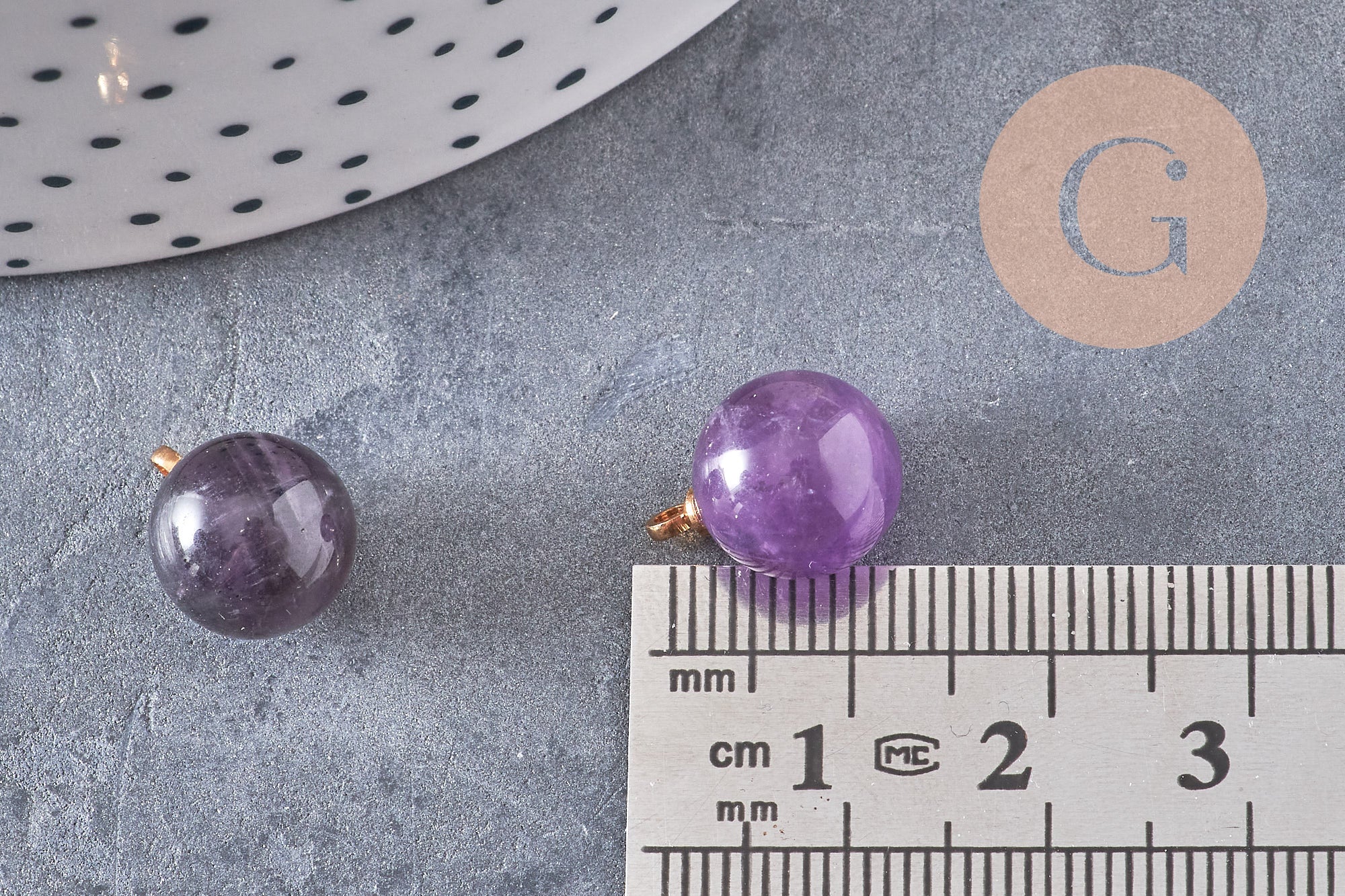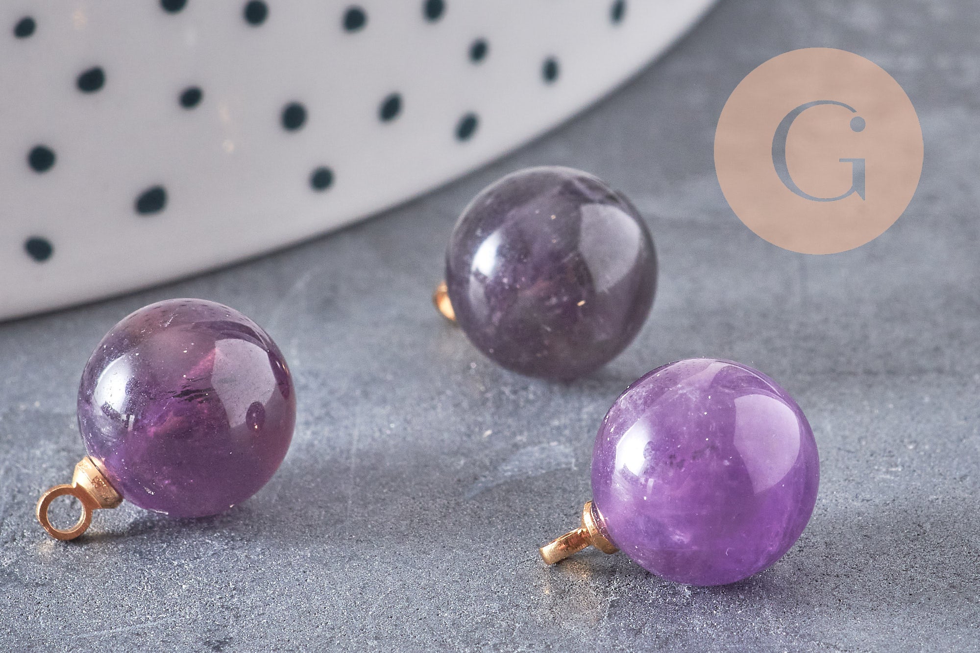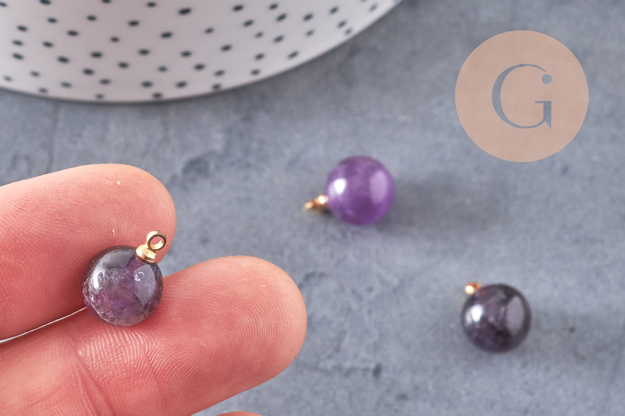 Round purple amethyst drop pendant, gold support, natural stone jewelry creation, natural stone pendant, 14mm, unit