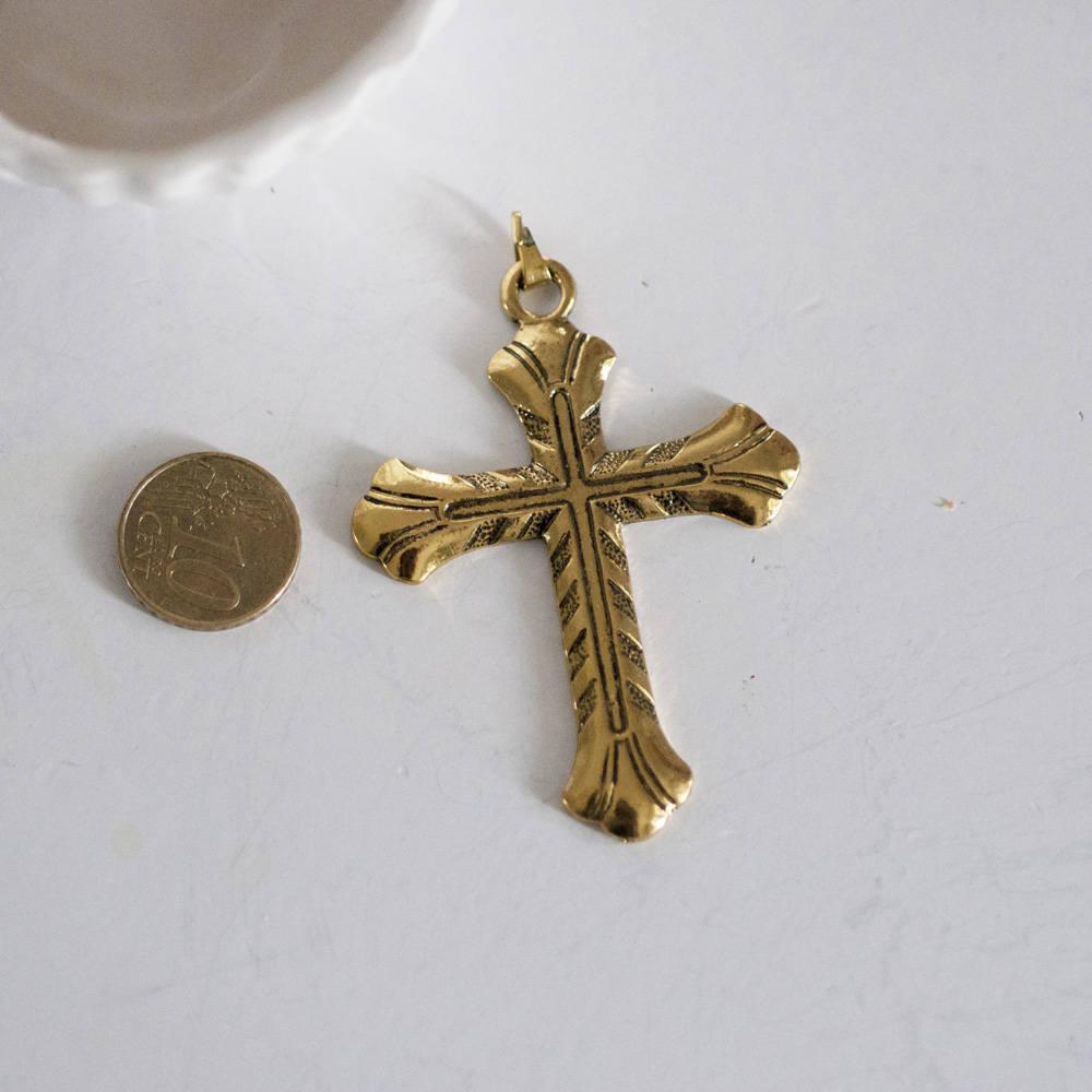 Large gold metal cross pendant, creative supplies, gold pendant, gold cross, jewelry making, 7.5cm A large gold metal cross pendant Dimensions: Length: 75mm Width: 50mm Thickness: 2m Ring: 8x3mm Guaranteed unleaded Other gold metal charms are available in the vintage...
