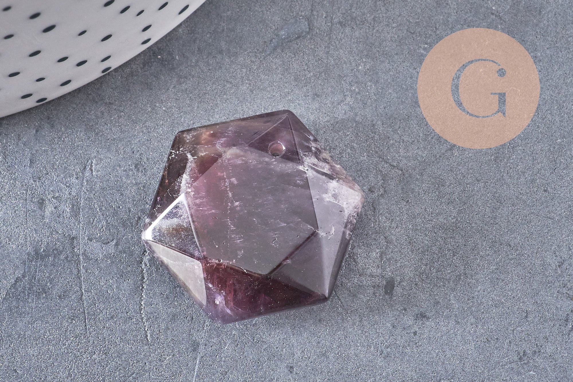 A hexagonal shaped amethyst pendant